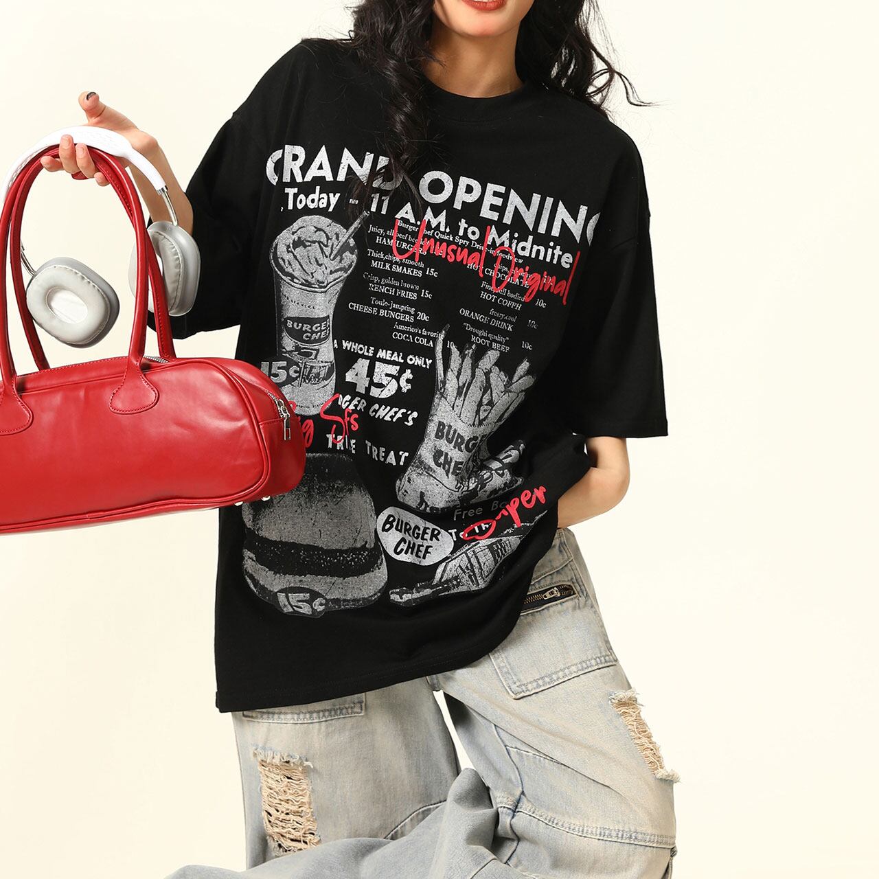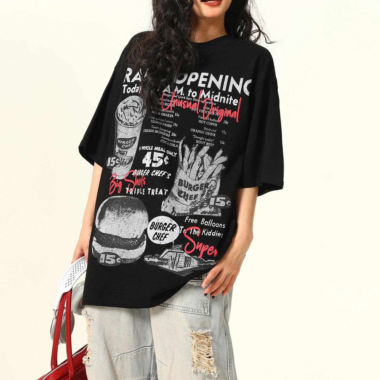 バーガープリントアメリカンレトロTシャツ 2col R00254