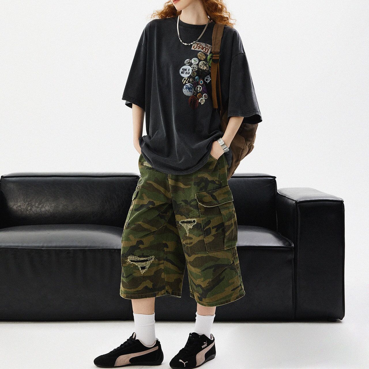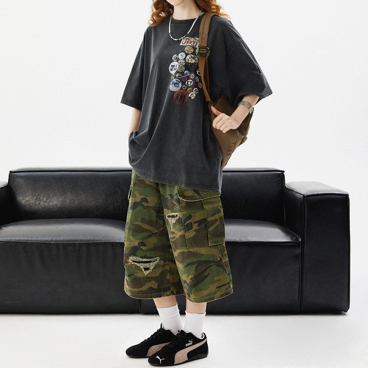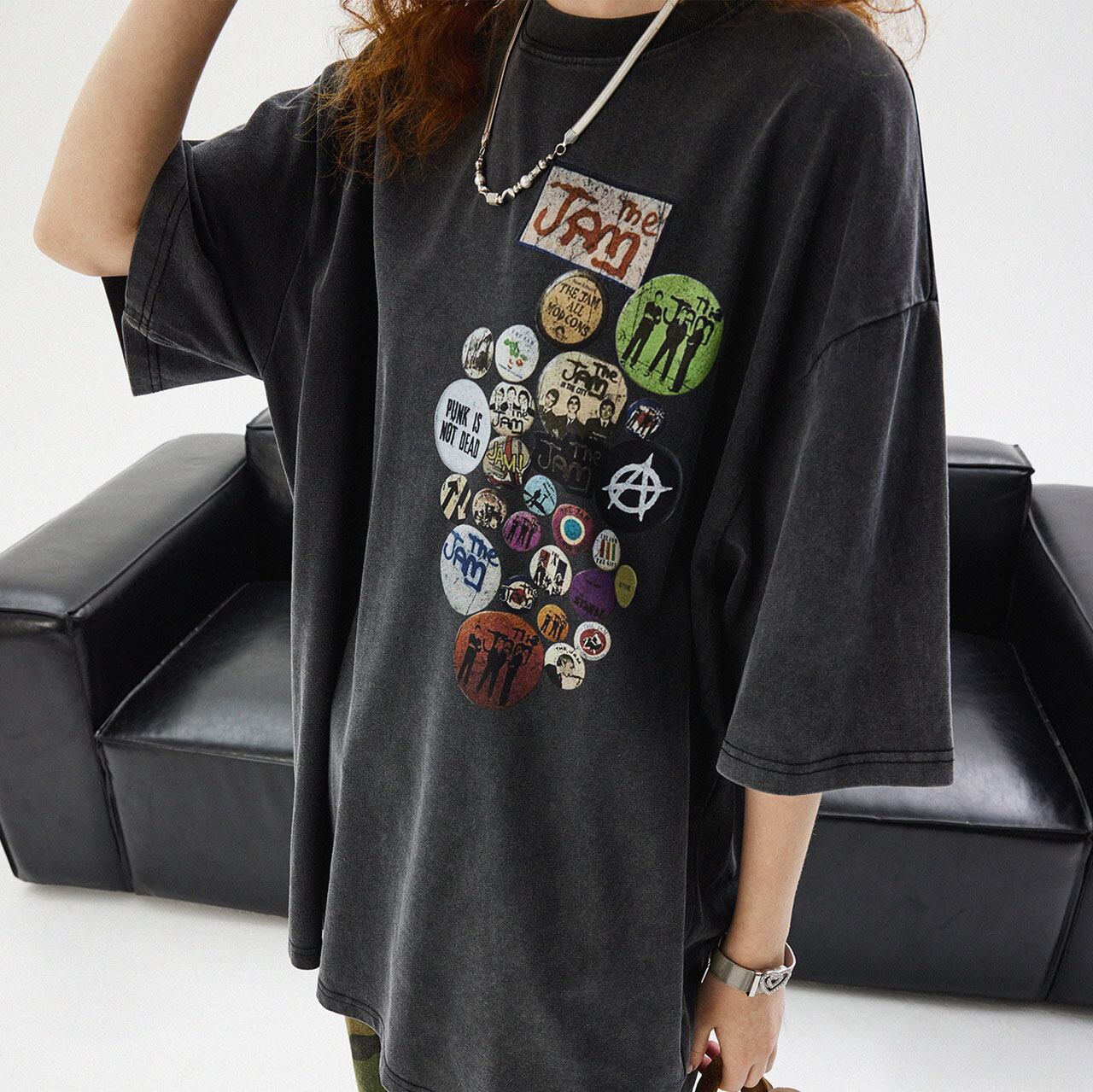 缶バッジプリントデザインビッグシルエットTシャツ R00274