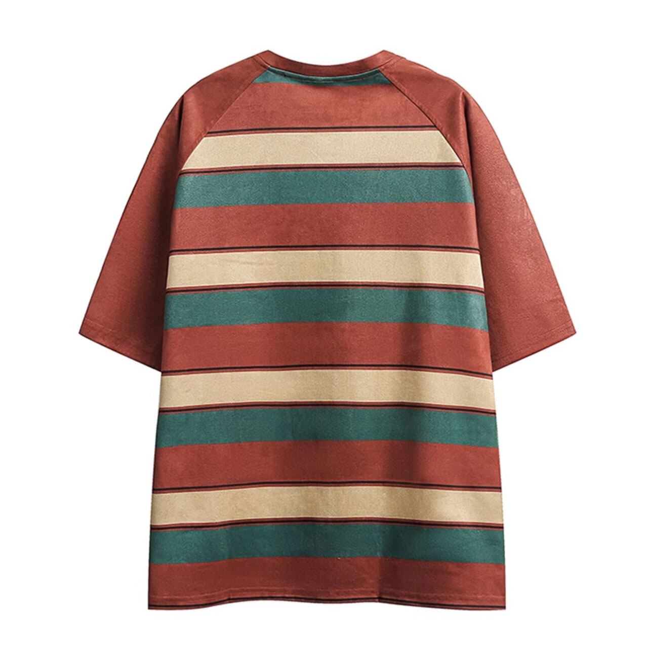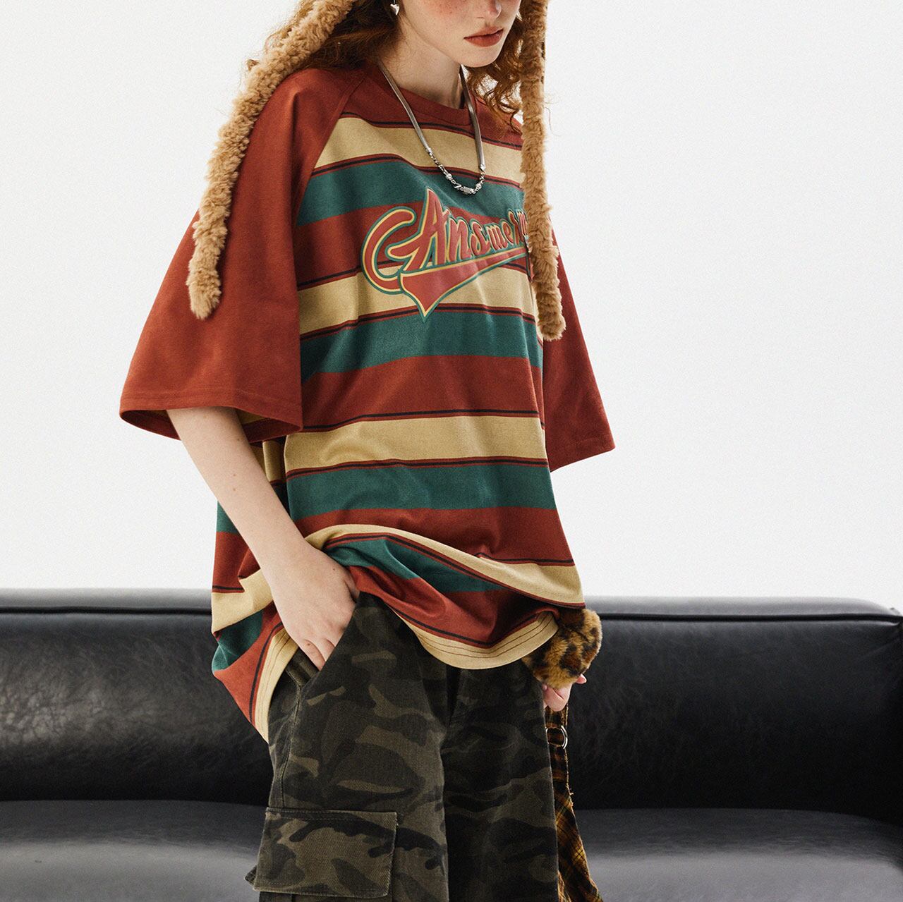 フェイクスウェード風マルチボーダーカラーロゴT R00315