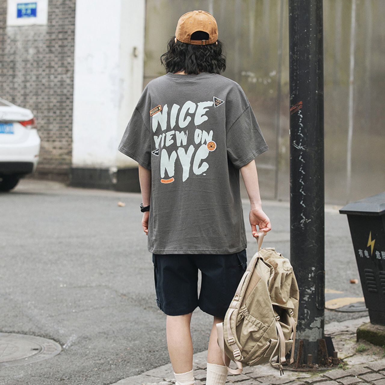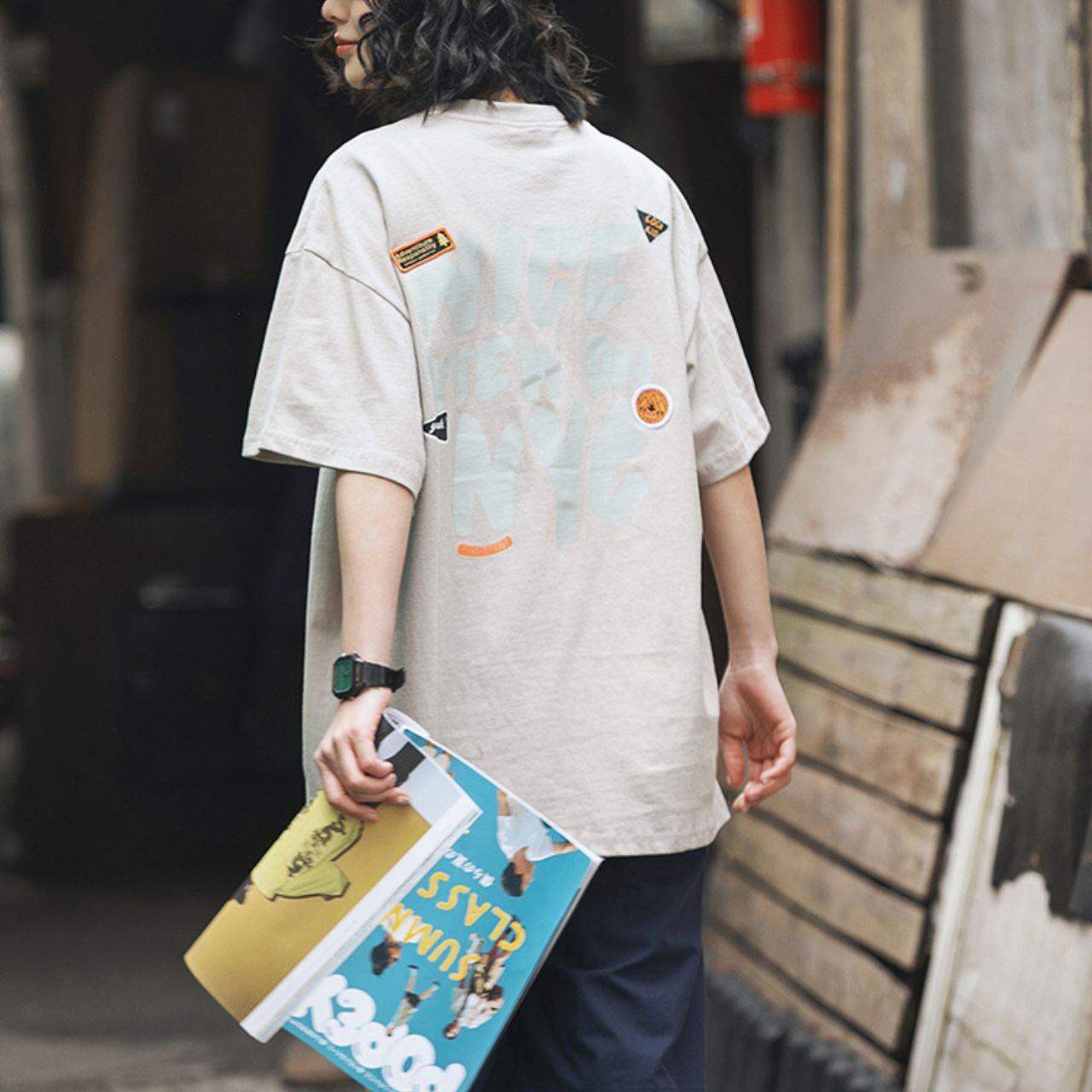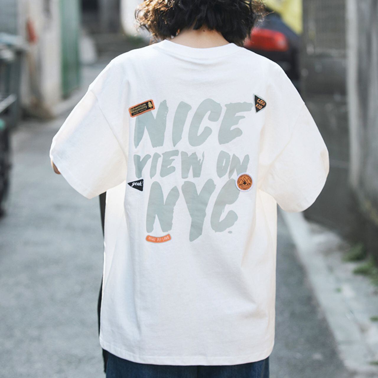 NYCバックプリントグラフィックTシャツ 4col R00363