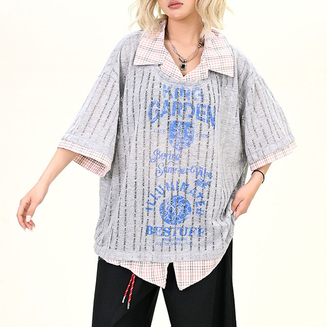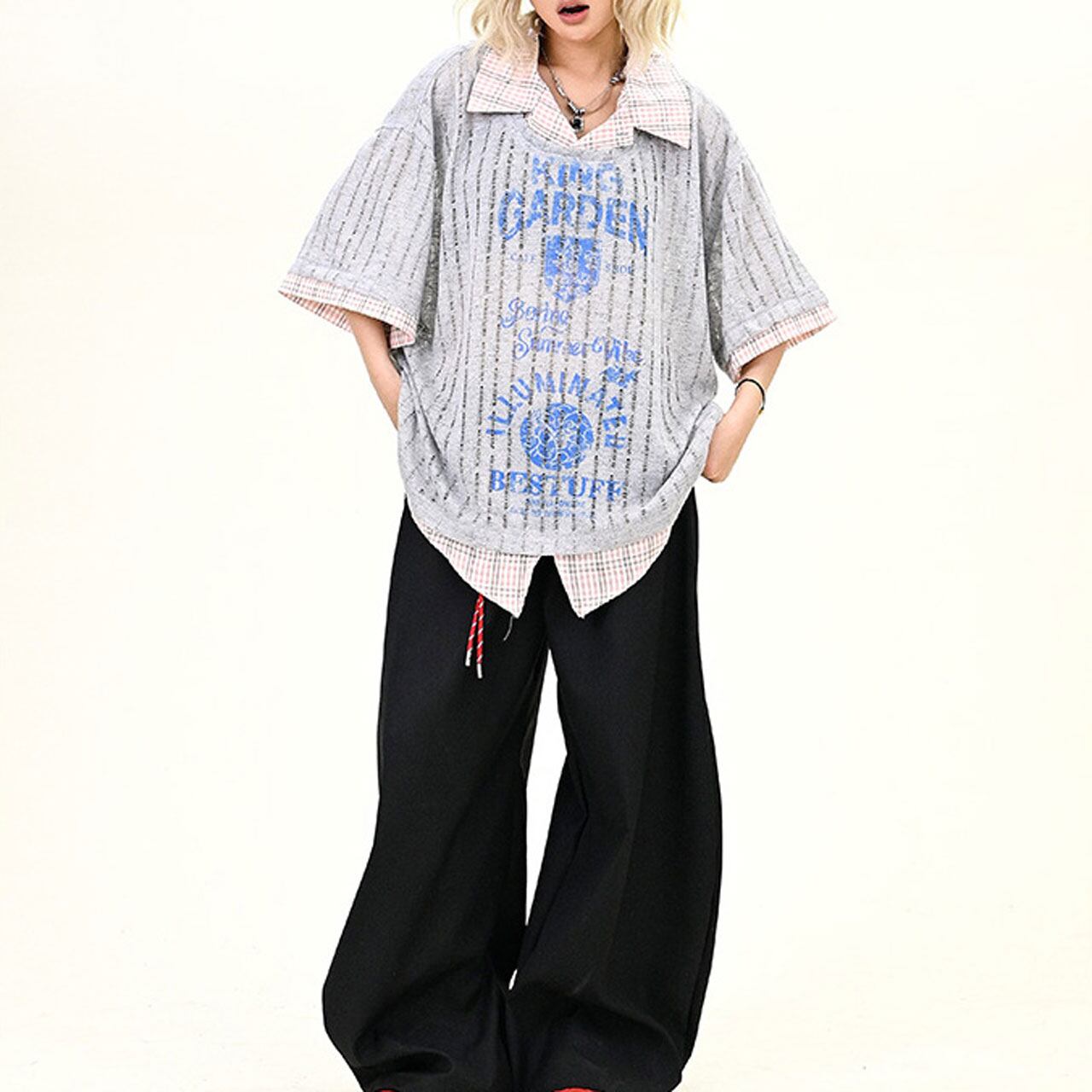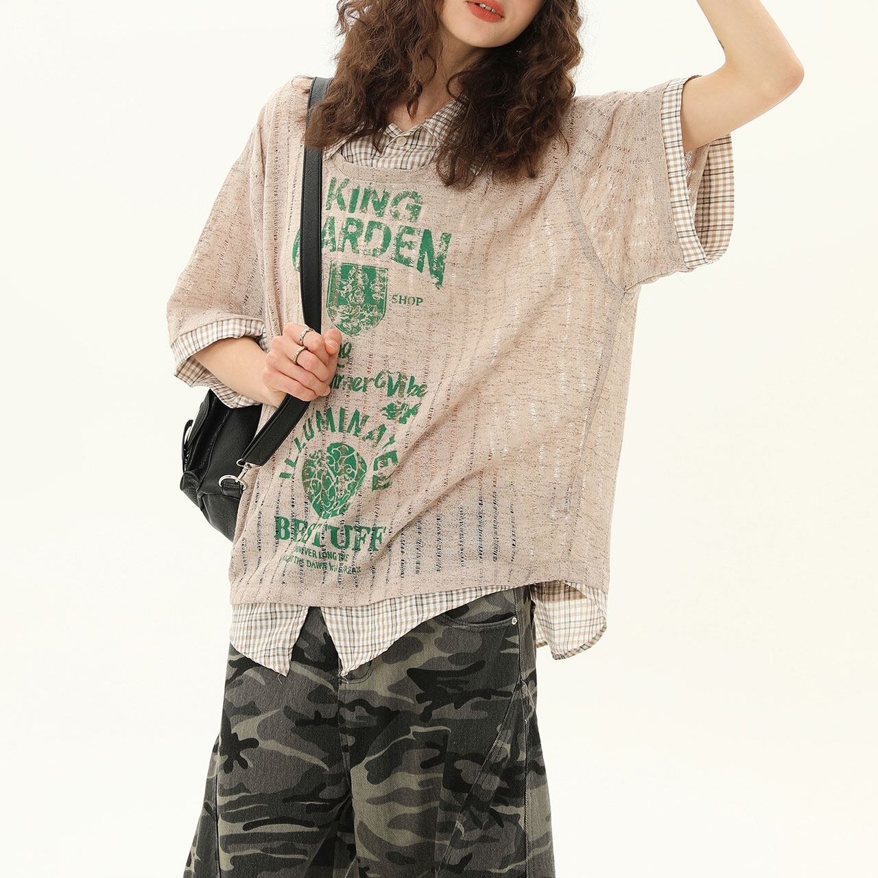 フェイクレイヤードヴィンテージロゴシアーニットTシャツ 2col R00329