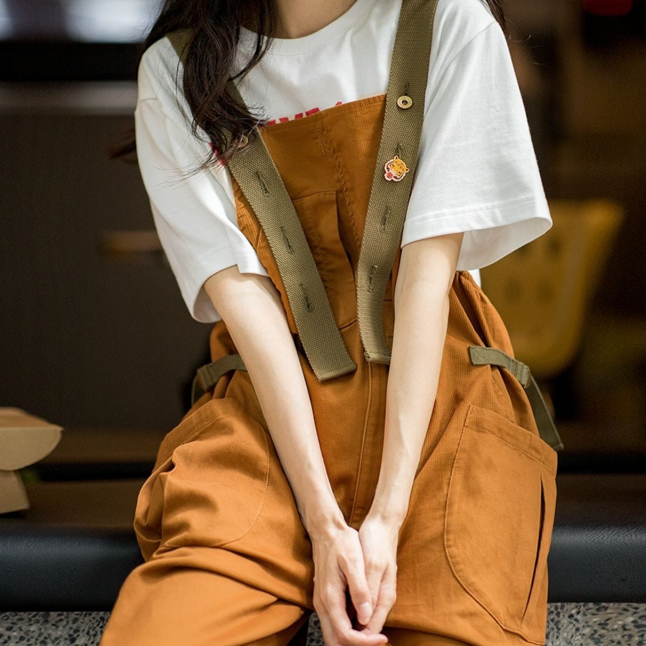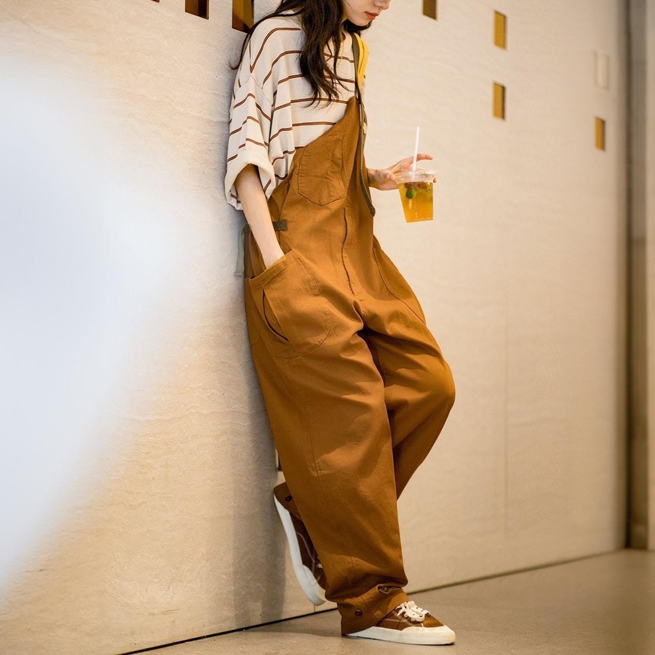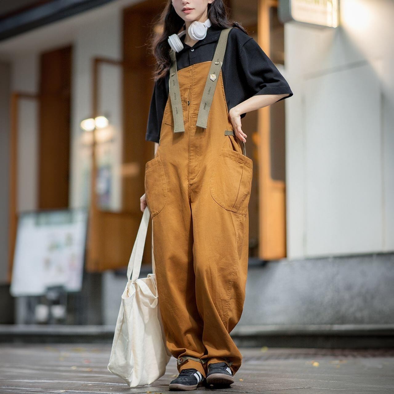 ワーク感のあるデザインが目を引く、存在感たっぷりのオーバーオール。