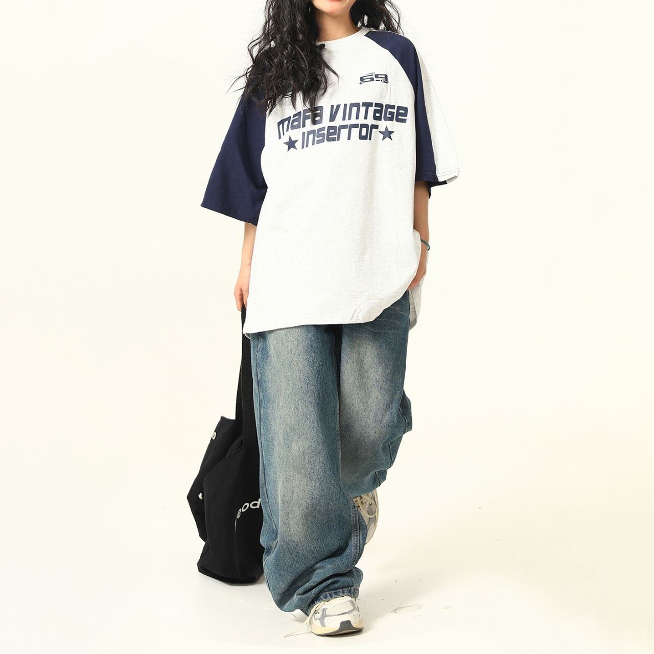 バイカラーレトロロゴラグランTシャツ 2col R00510