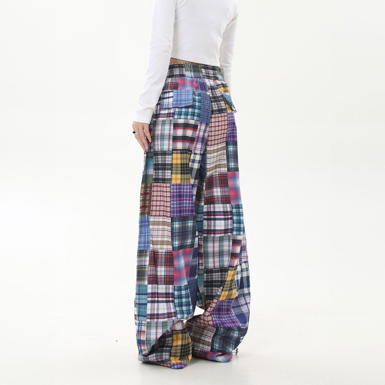 チェックパッチワークプリントルーズパンツ R00538