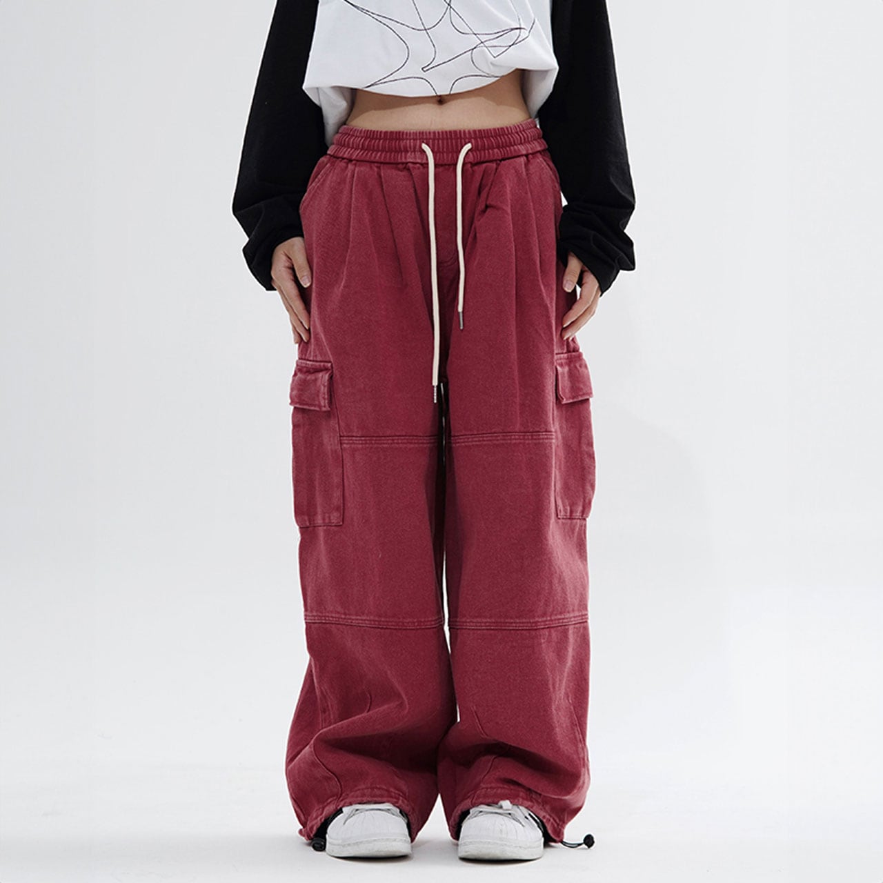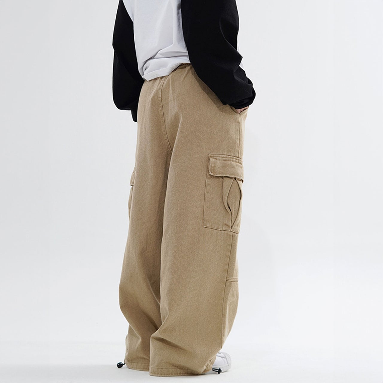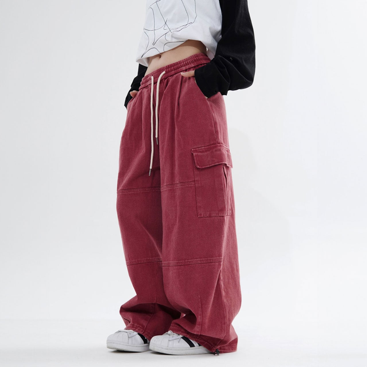 ゆったりシルエットとカーゴポケットがポイントのデザインパンツ。