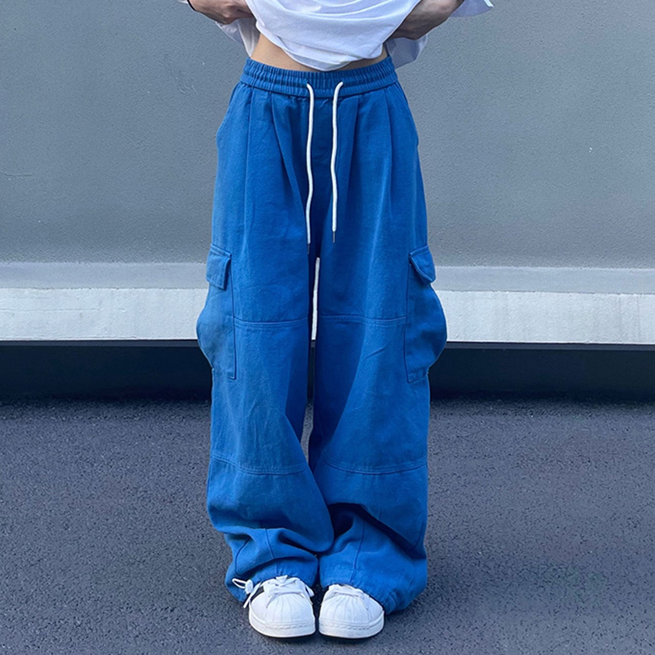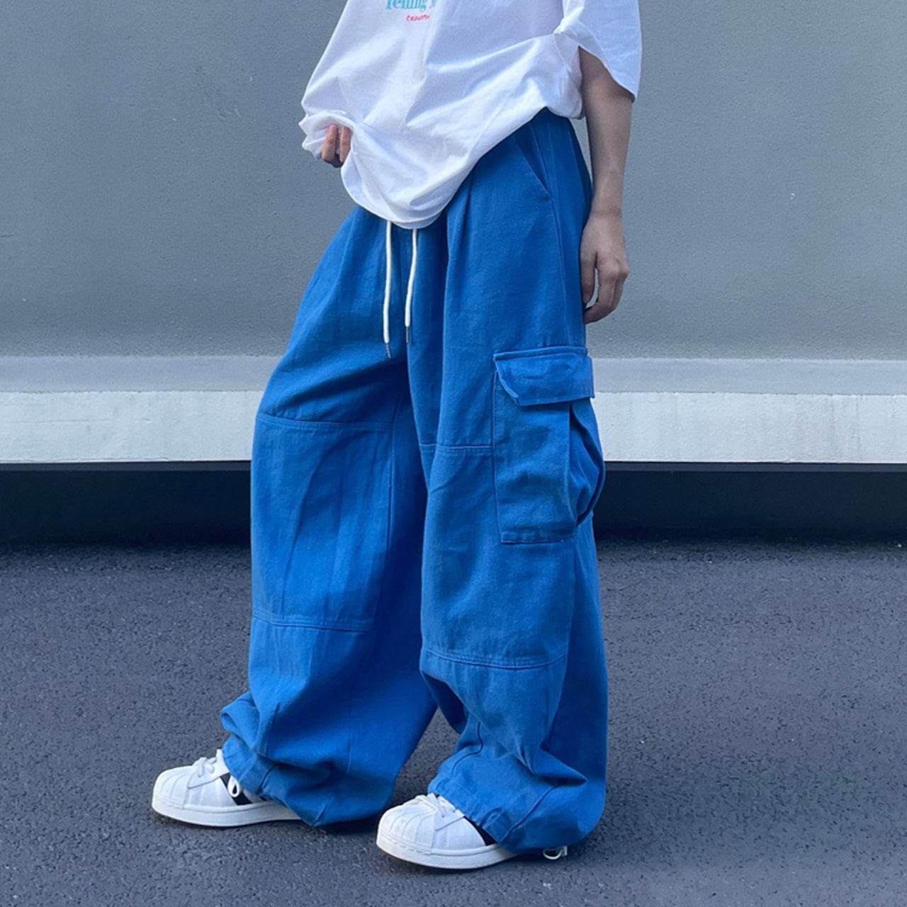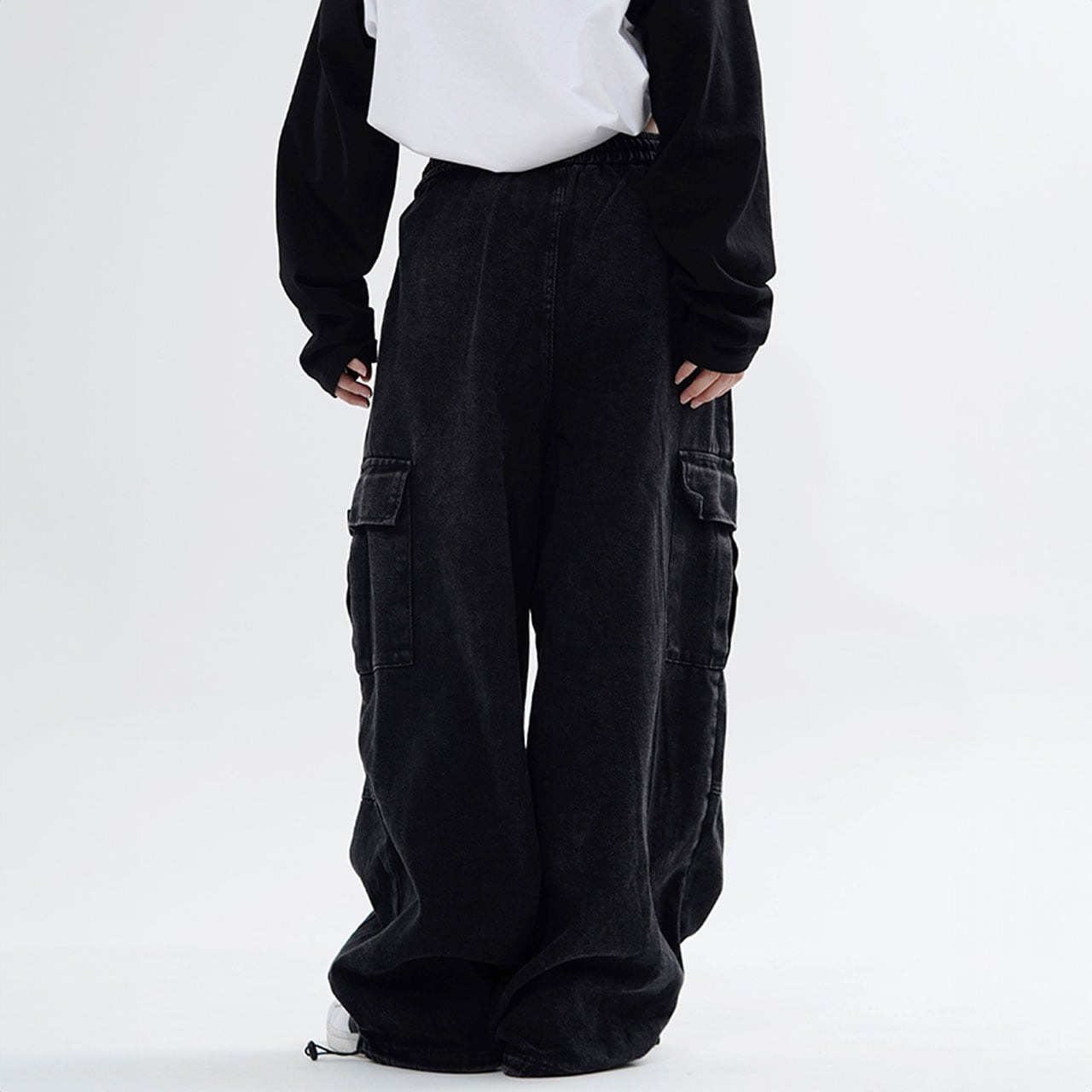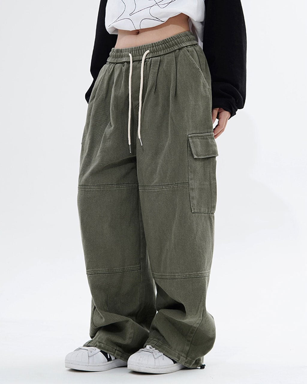 ゆったりシルエットとカーゴポケットがポイントのデザインパンツ。