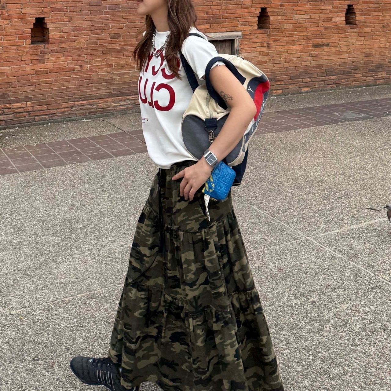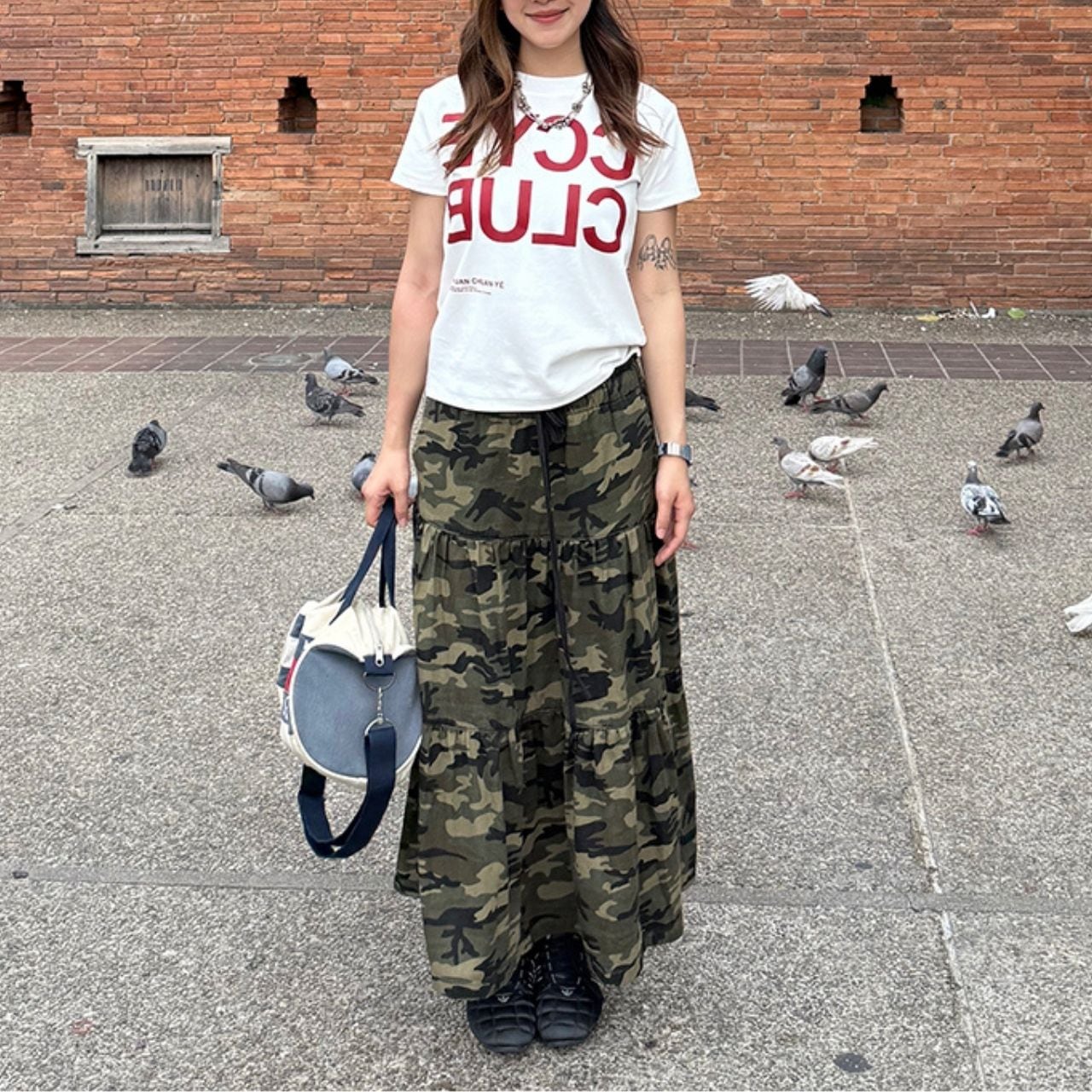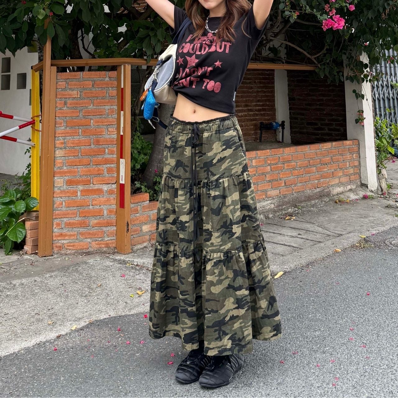 カモフラティアードギャザーAラインスカート R00613