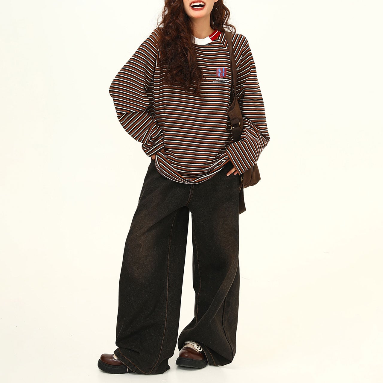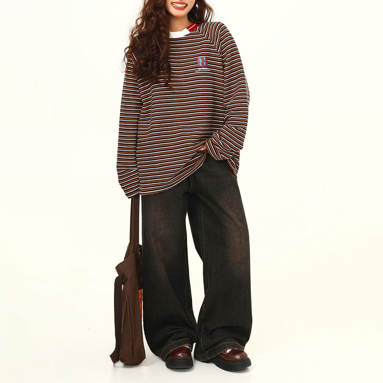 ネオンボーダーラインルーズロングTシャツ 2col R00698