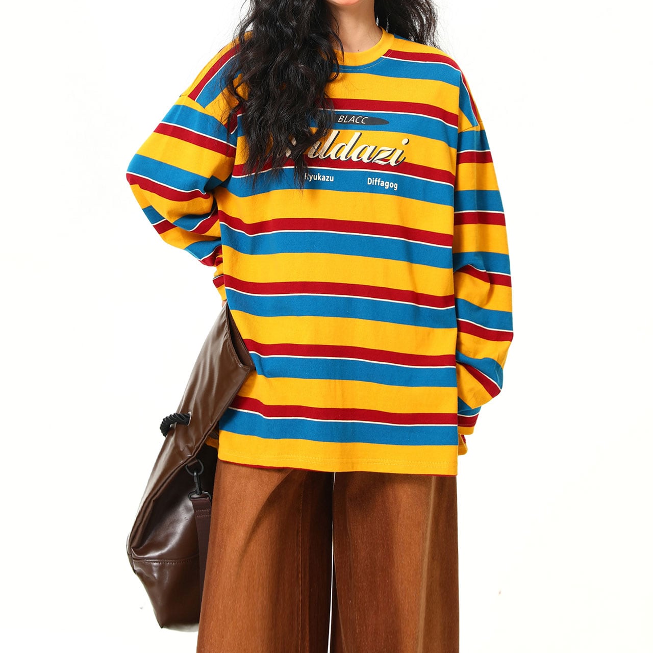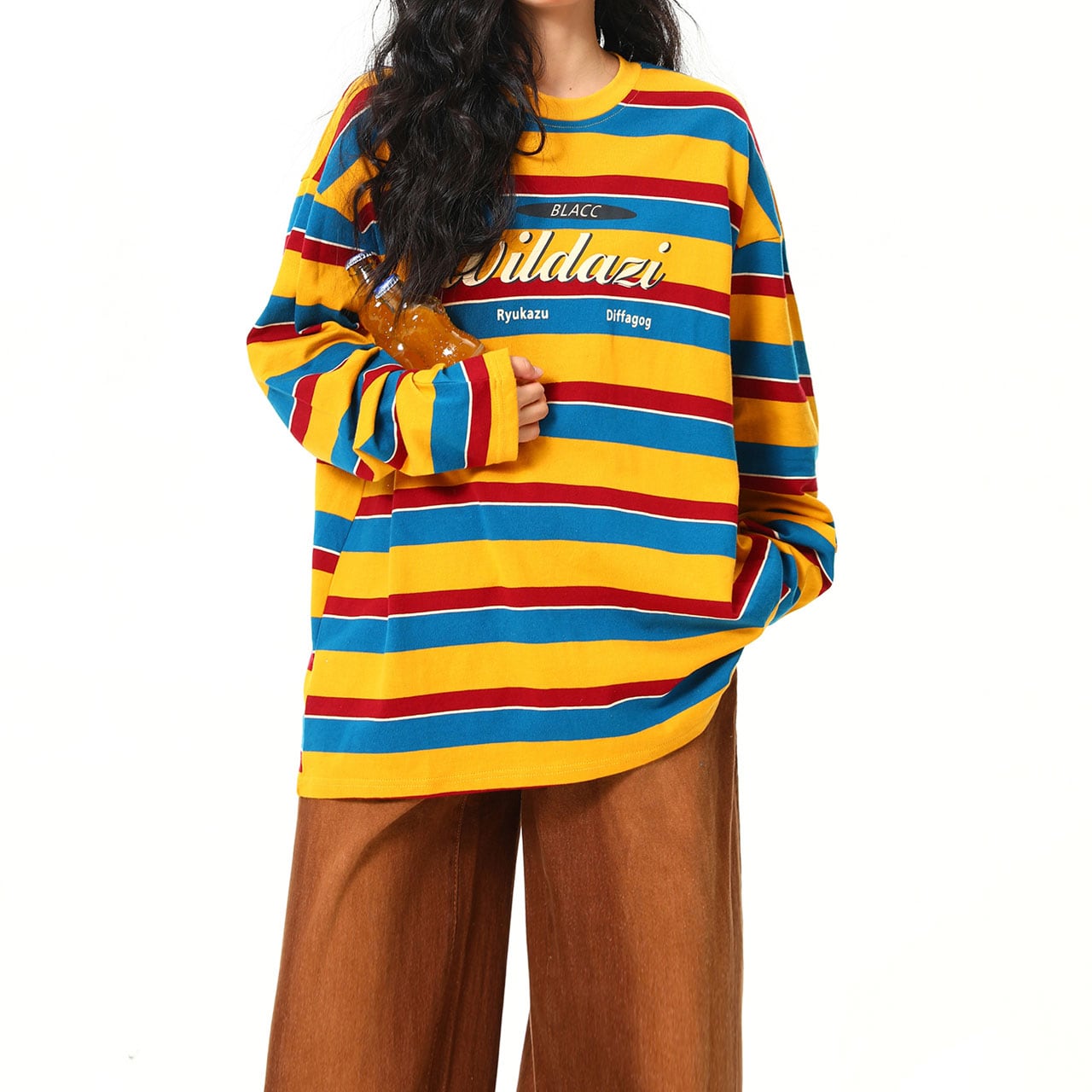 マルチボーダー柄ロゴプリントロングスリーブ R00697