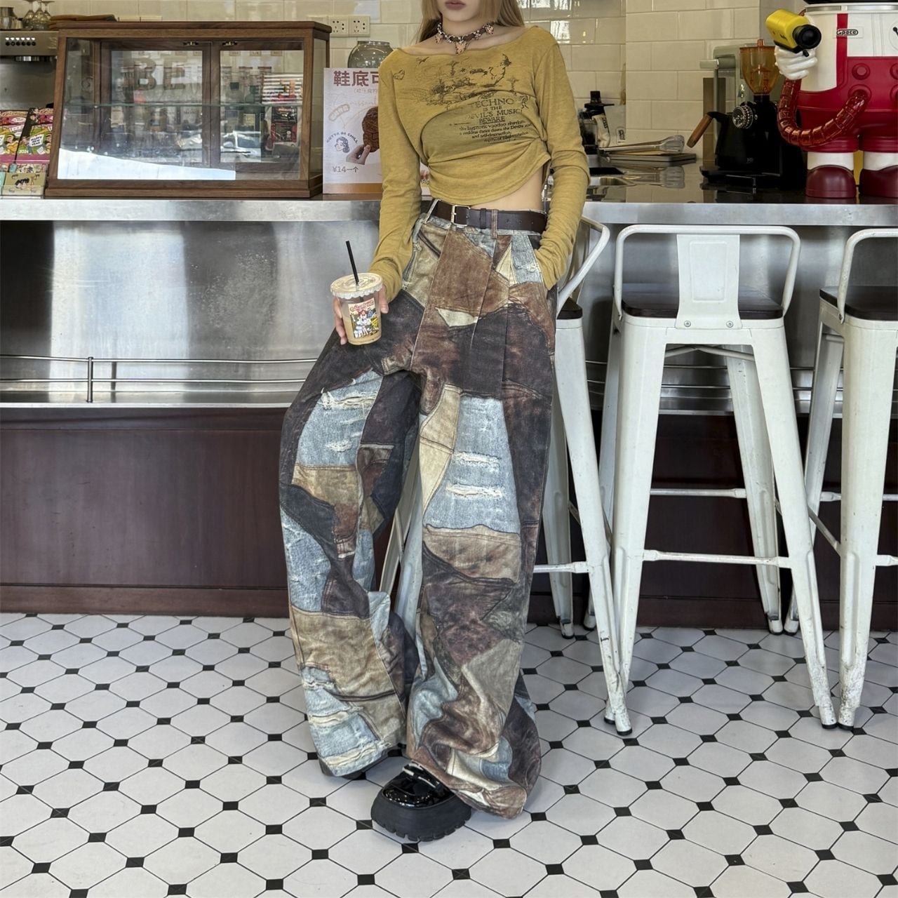 アートグラフィックパッチプリントワイドパンツ R00726