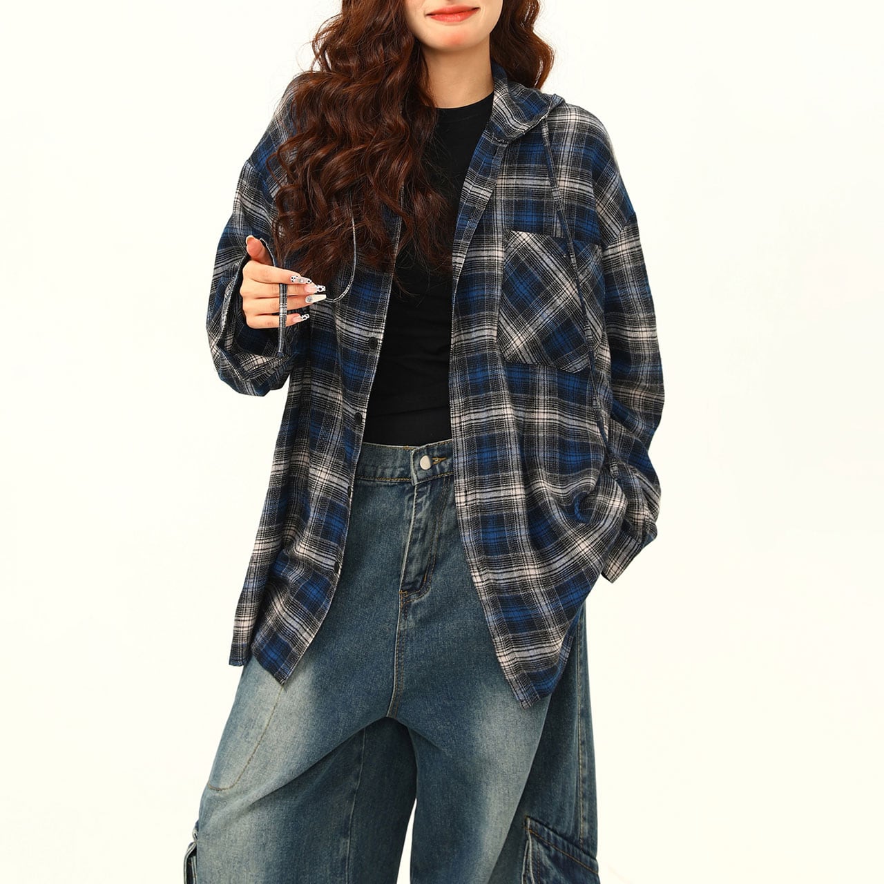 ヴィンテージチェックオーバーフーディシャツ R00732