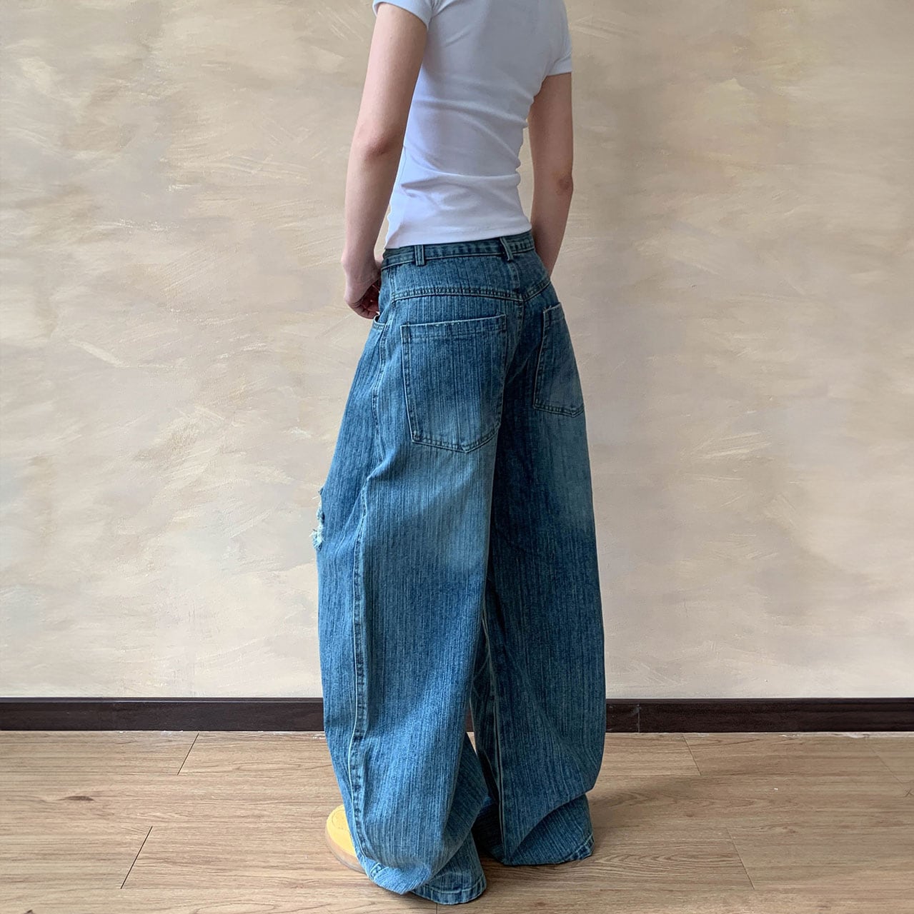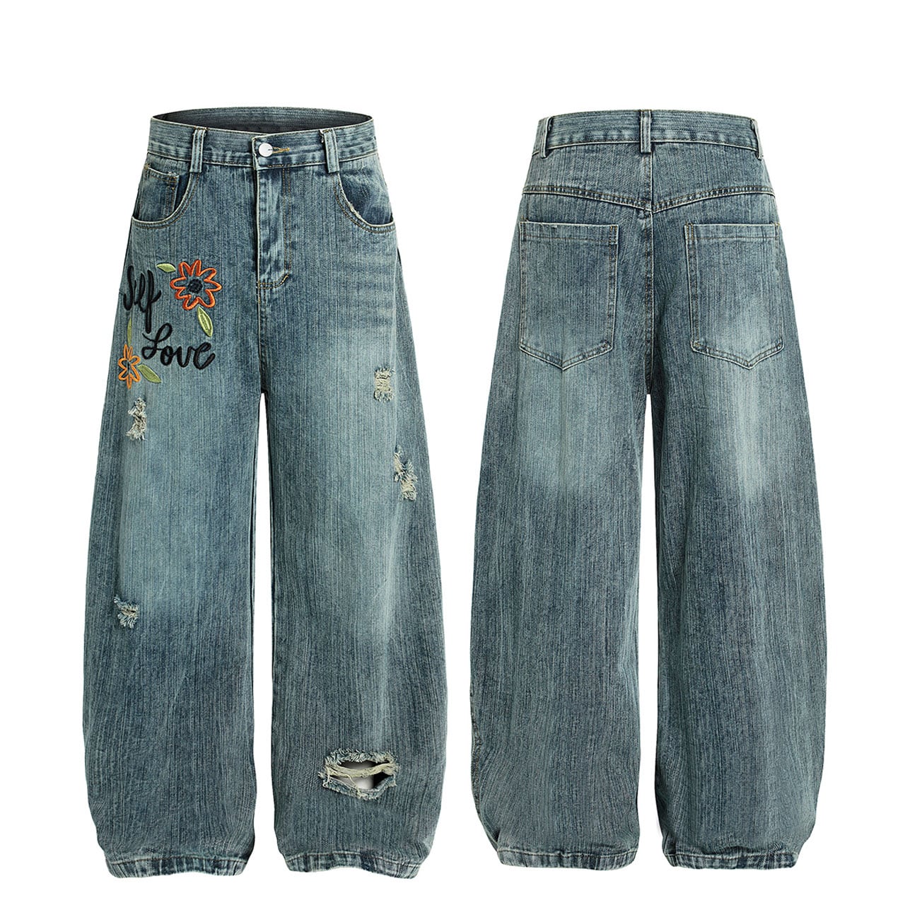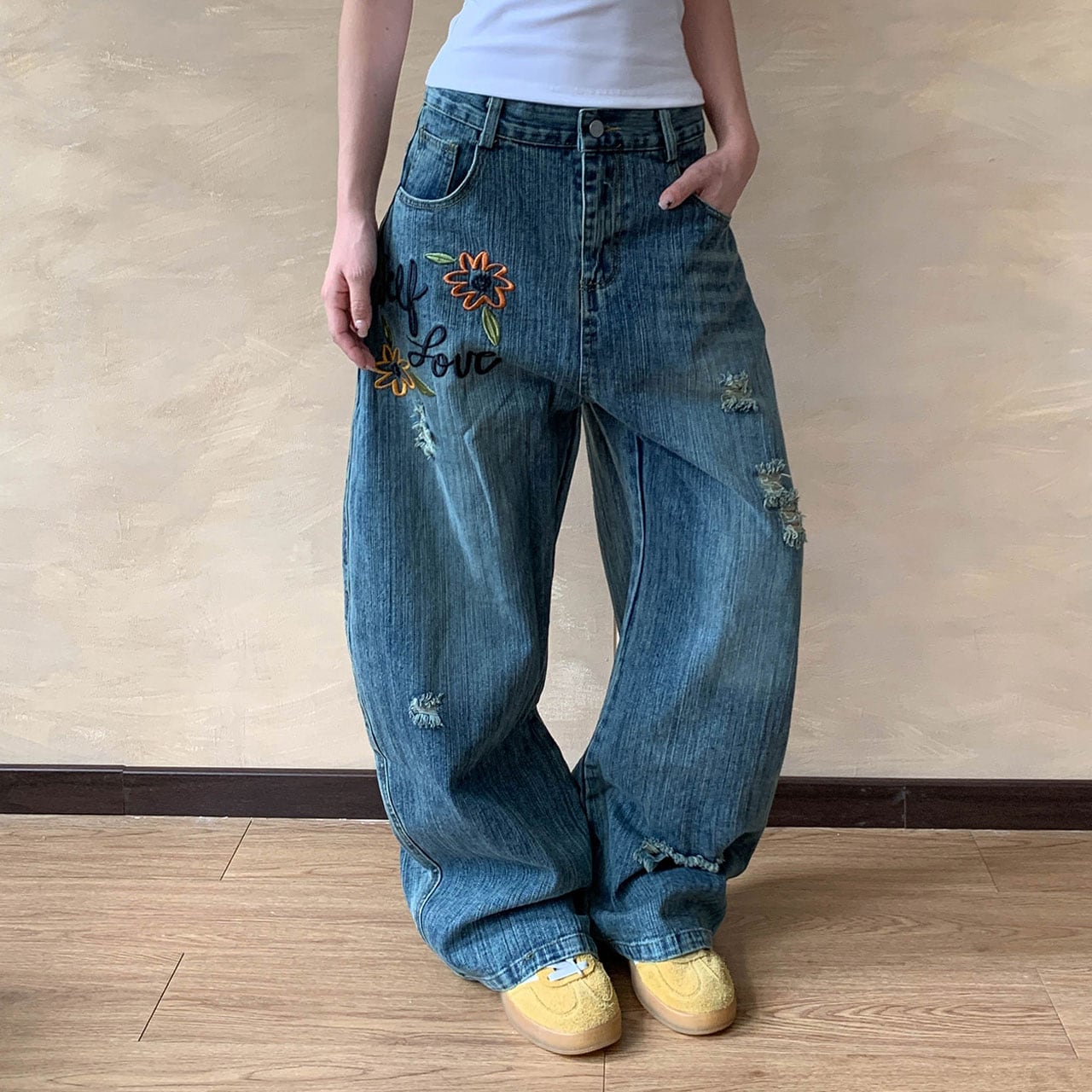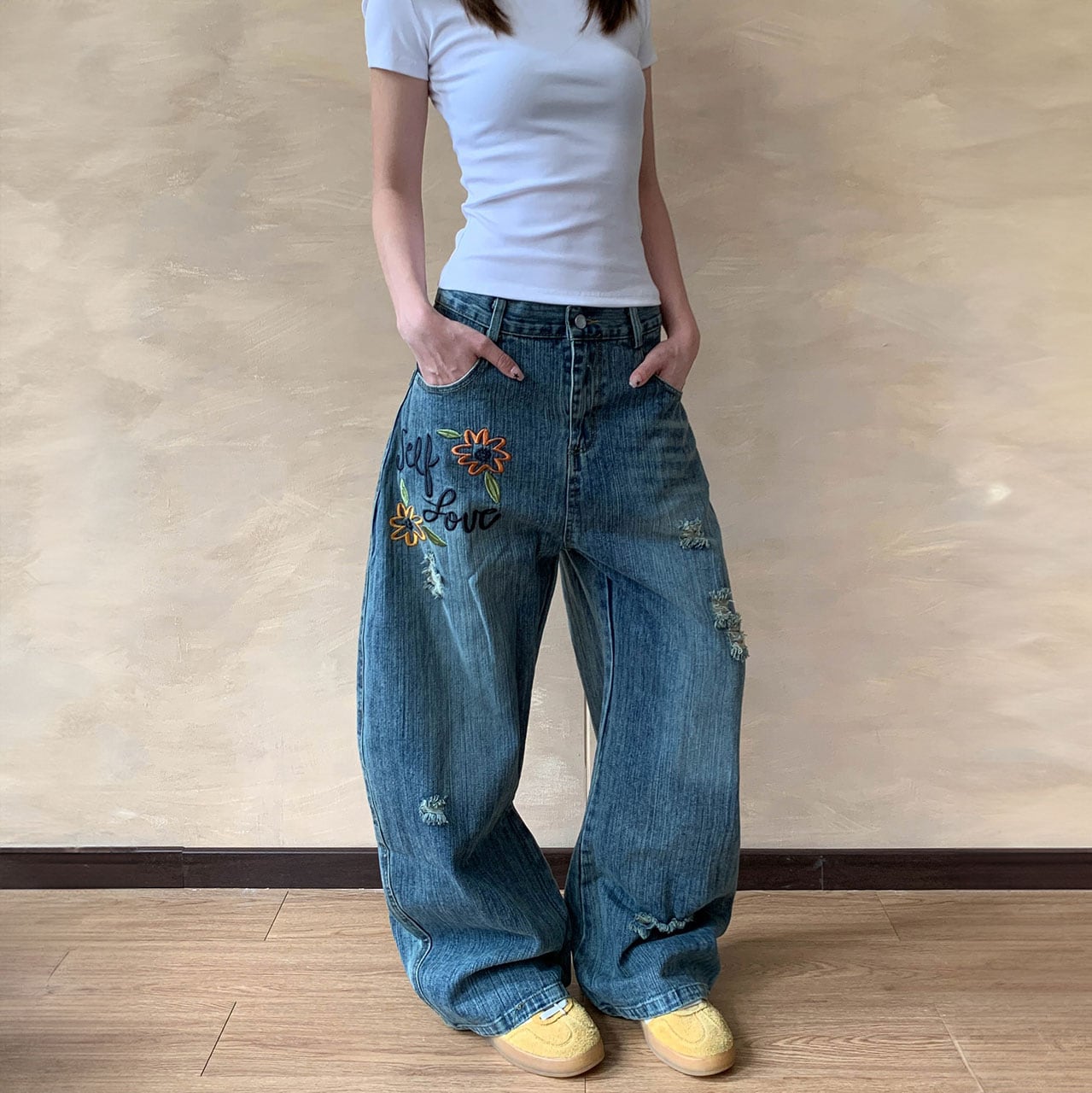 フラワーエンブロイダリーワイドデニムパンツ R00755
