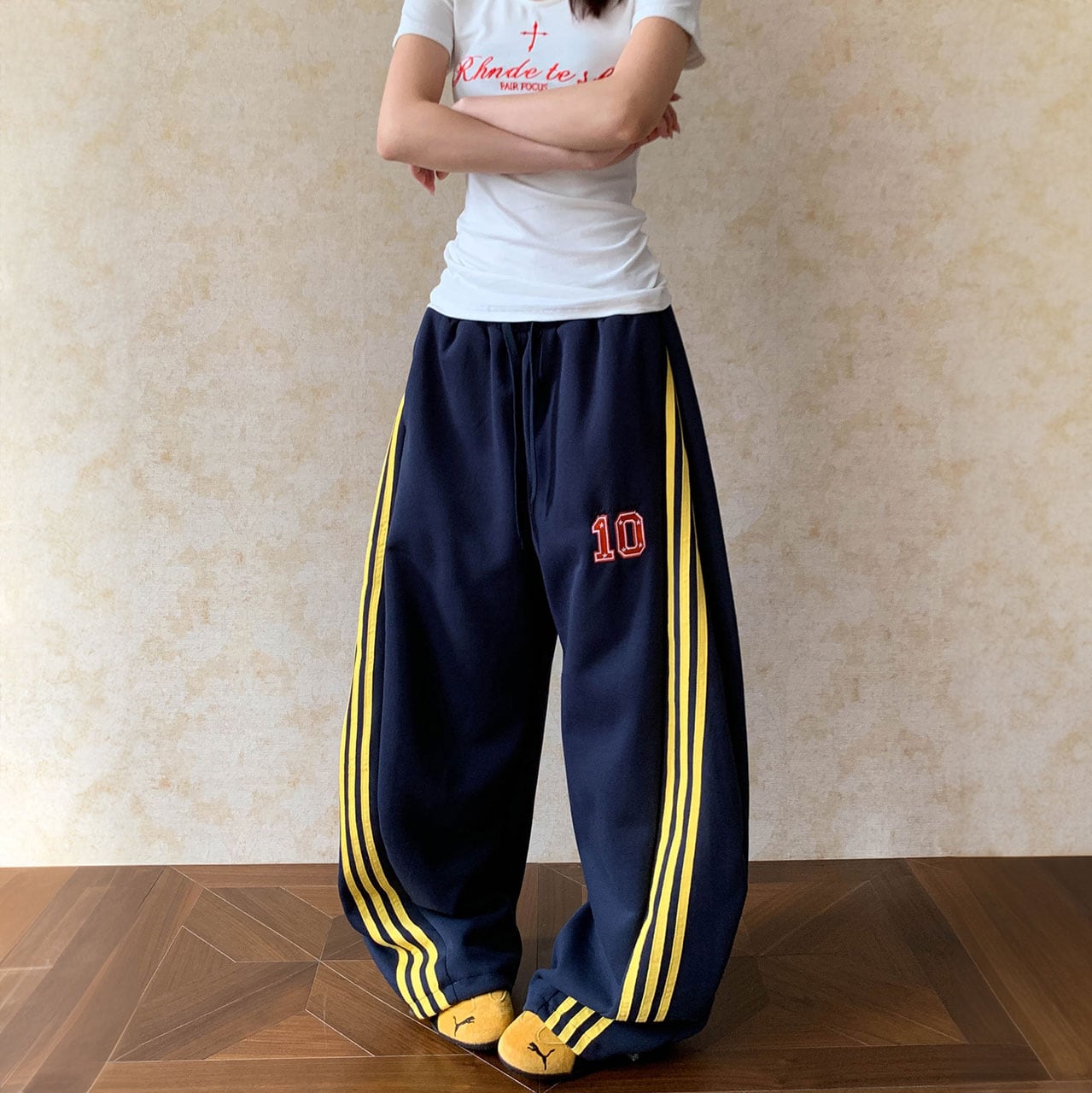 ナンバリングラインワイドスウェットパンツ 2col R00756