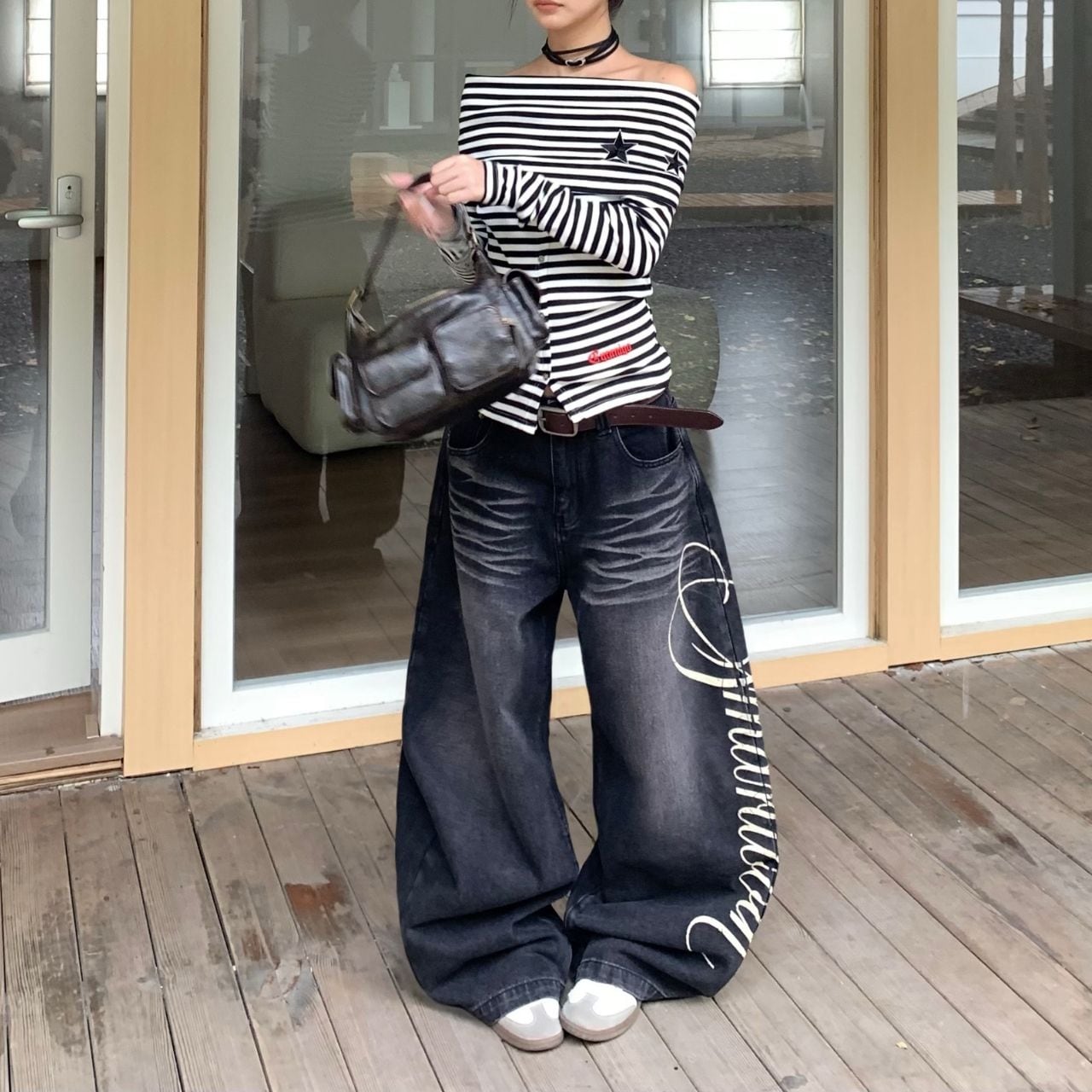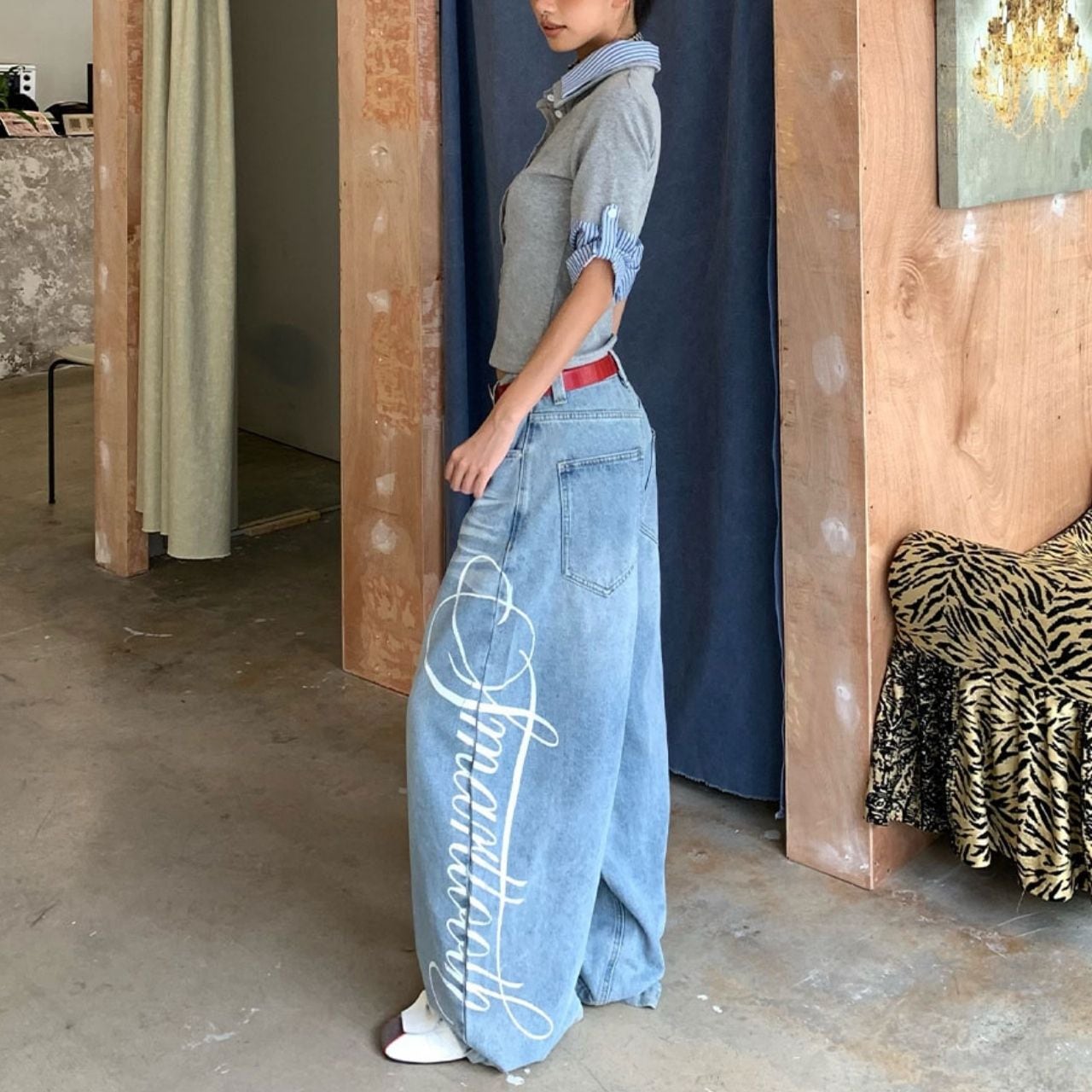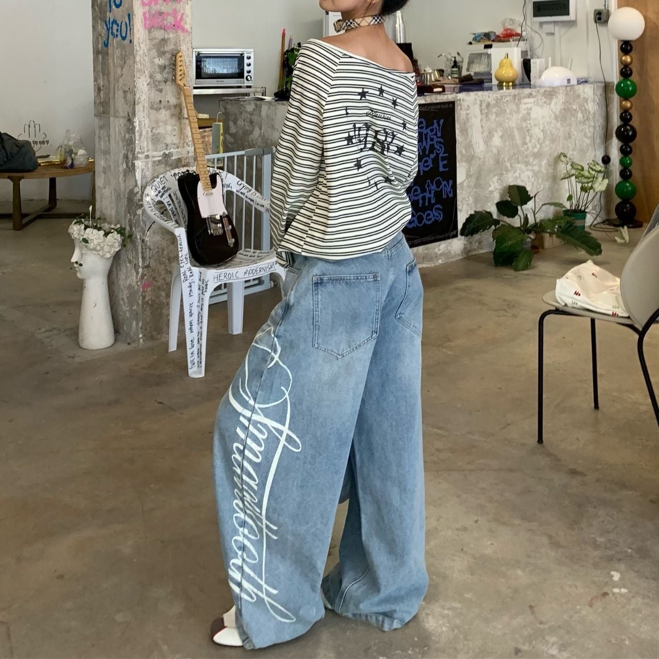 ロゴプリントルーズシルエットデニムパンツ 2col R00799