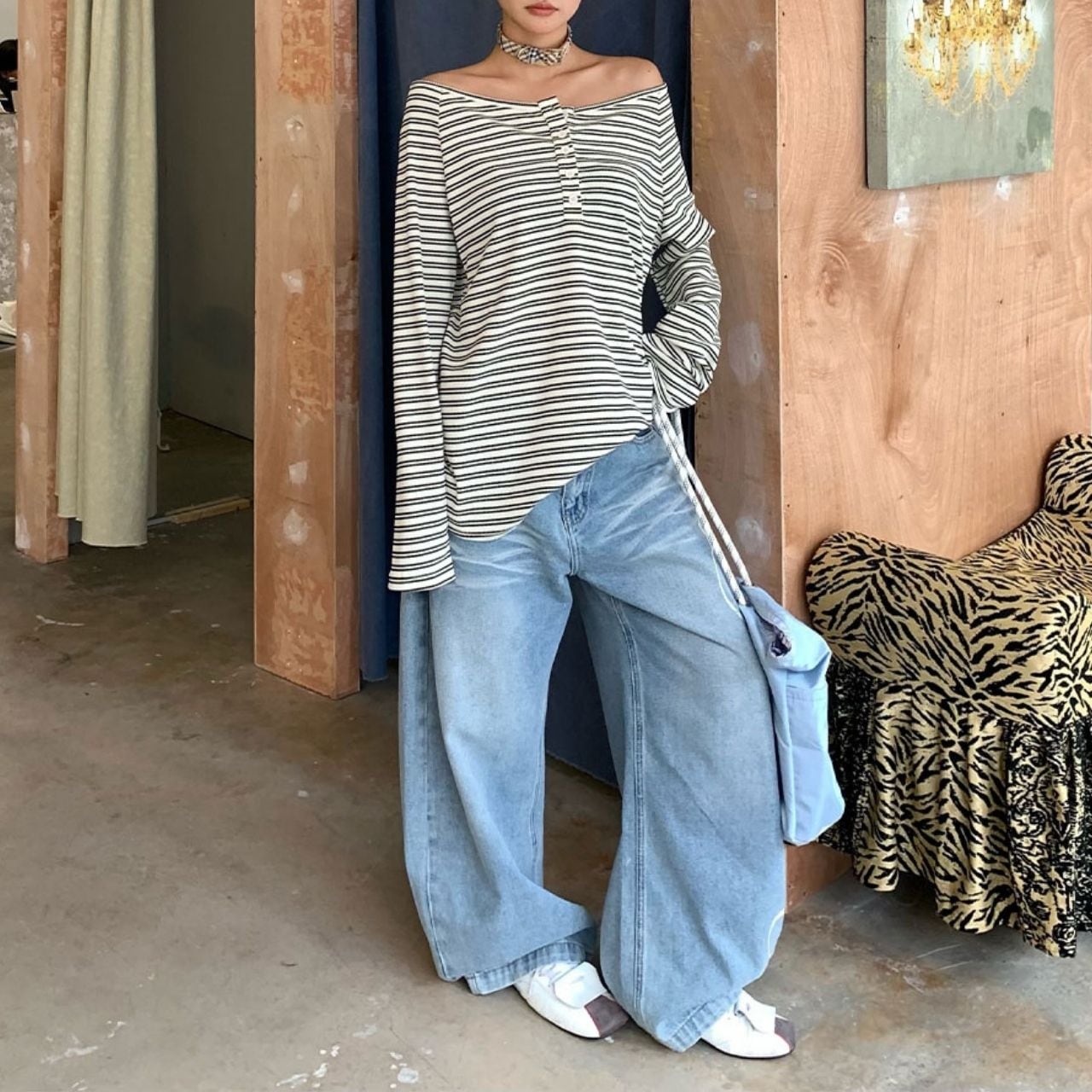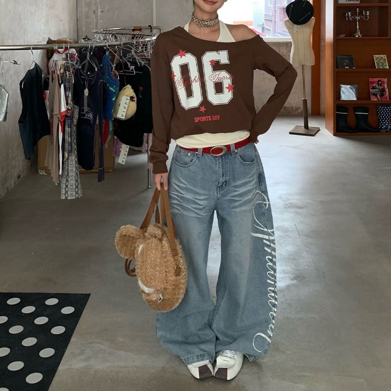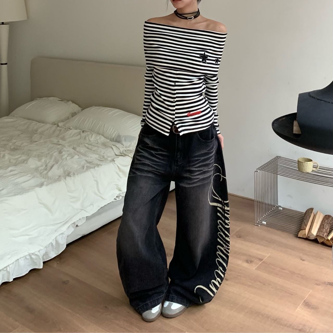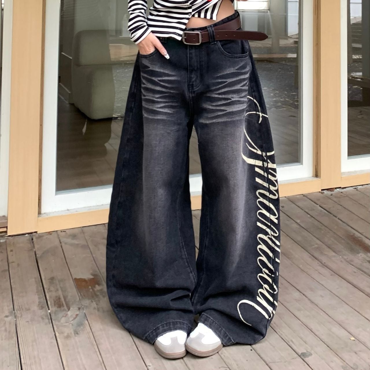 ロゴプリントルーズシルエットデニムパンツ 2col R00799