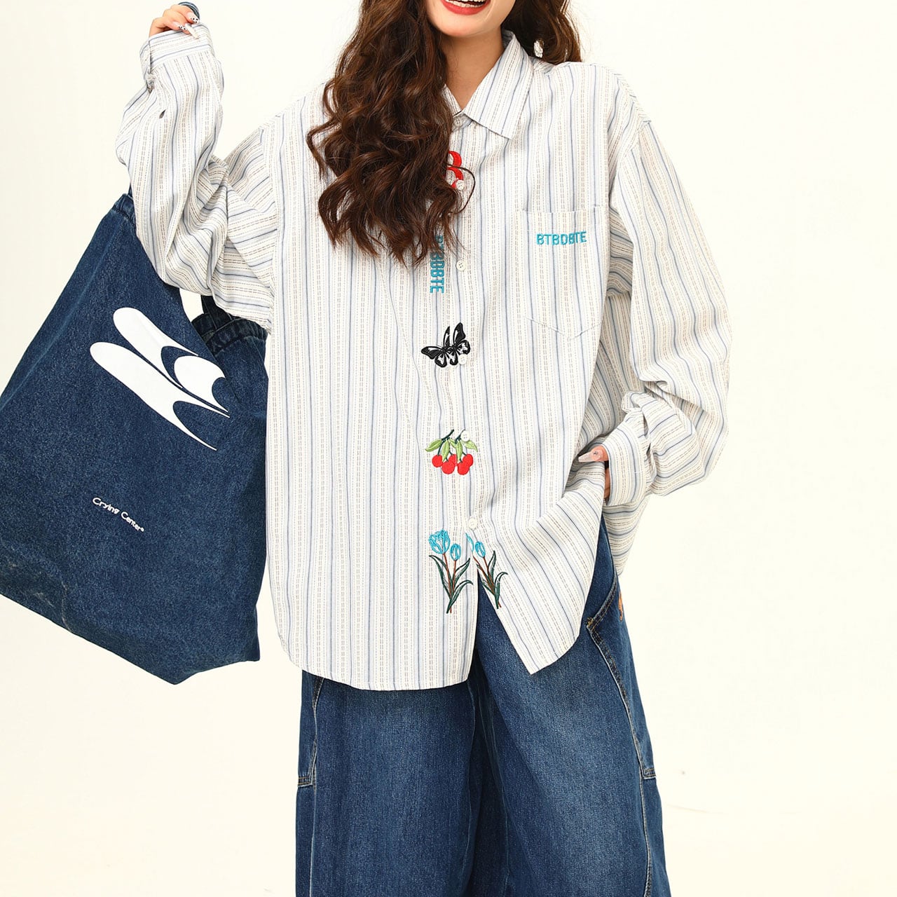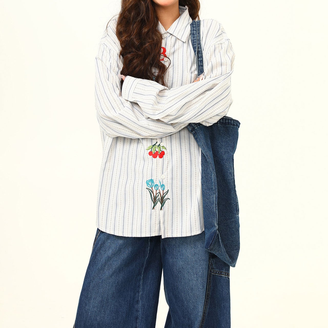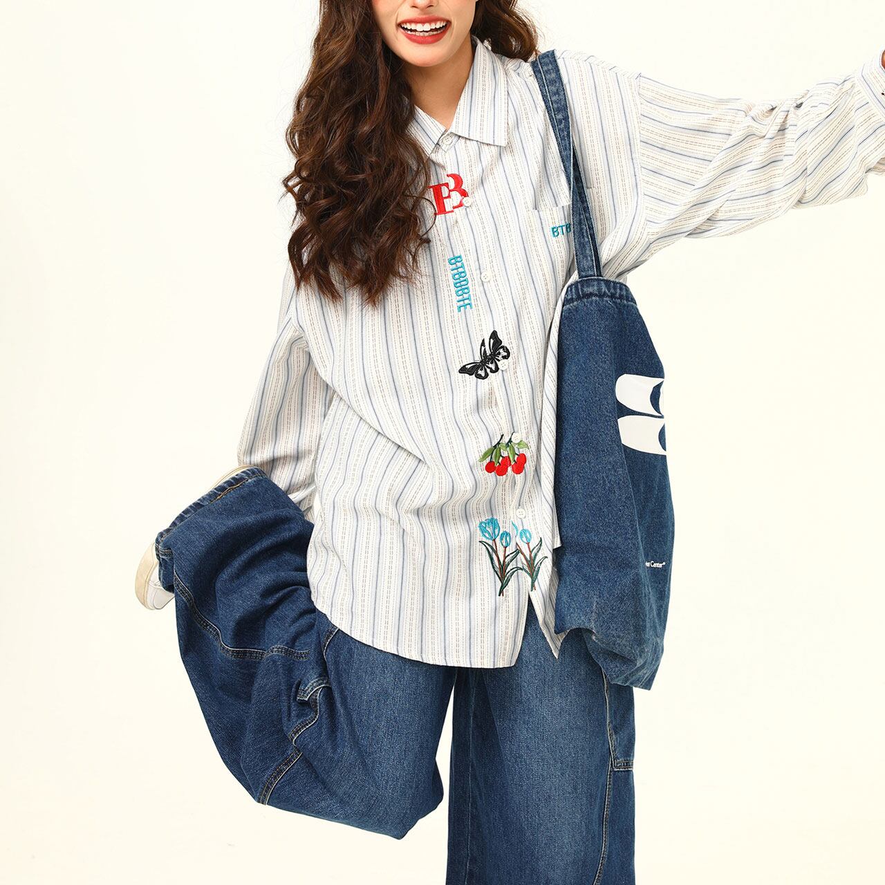ストライプフラワーエンブロイダリーシャツ R00751