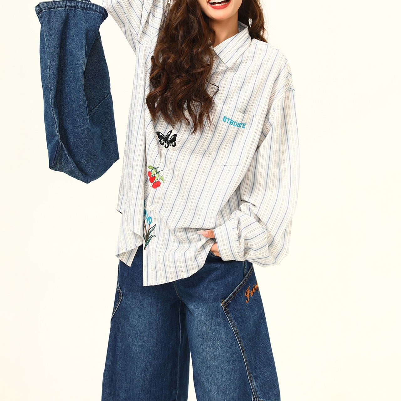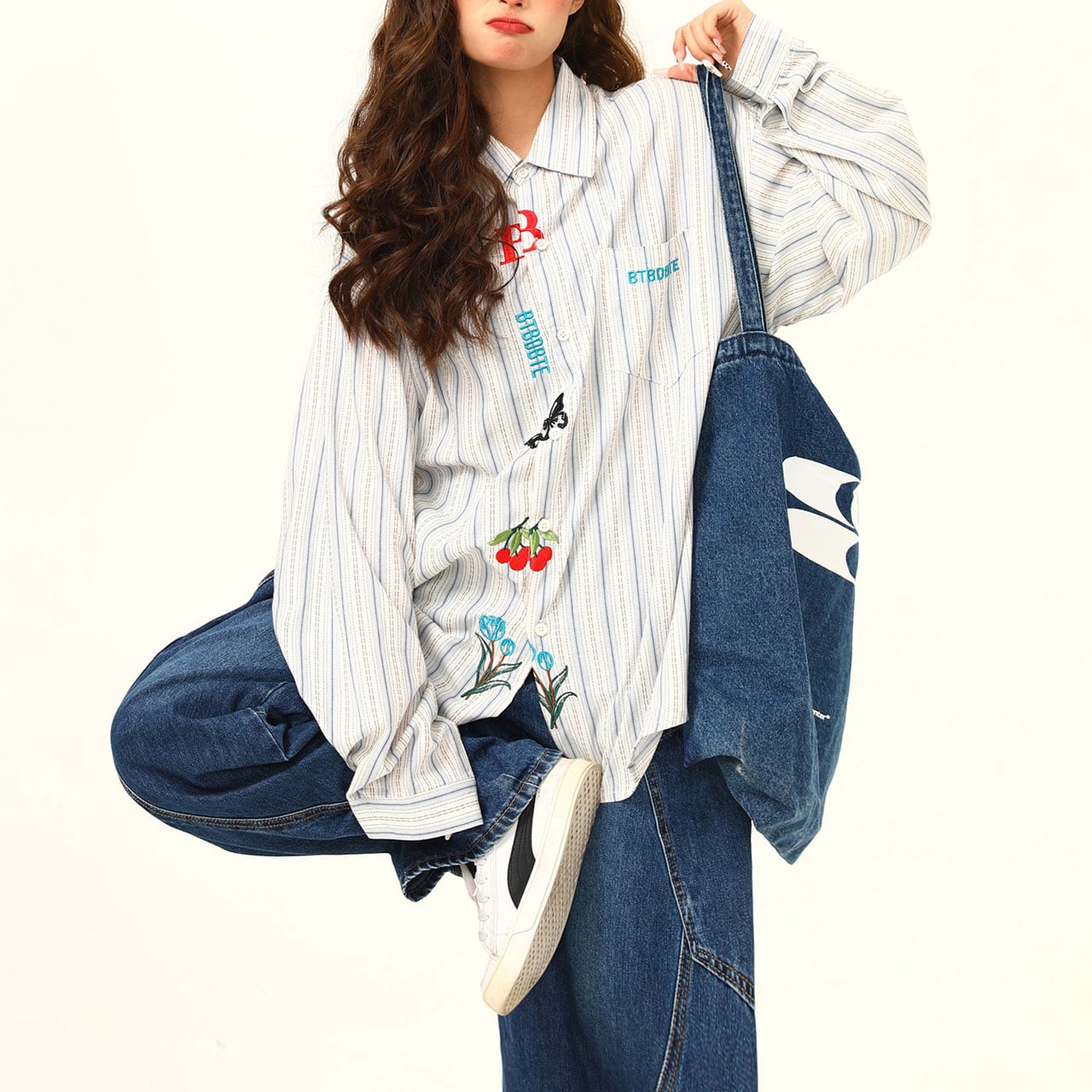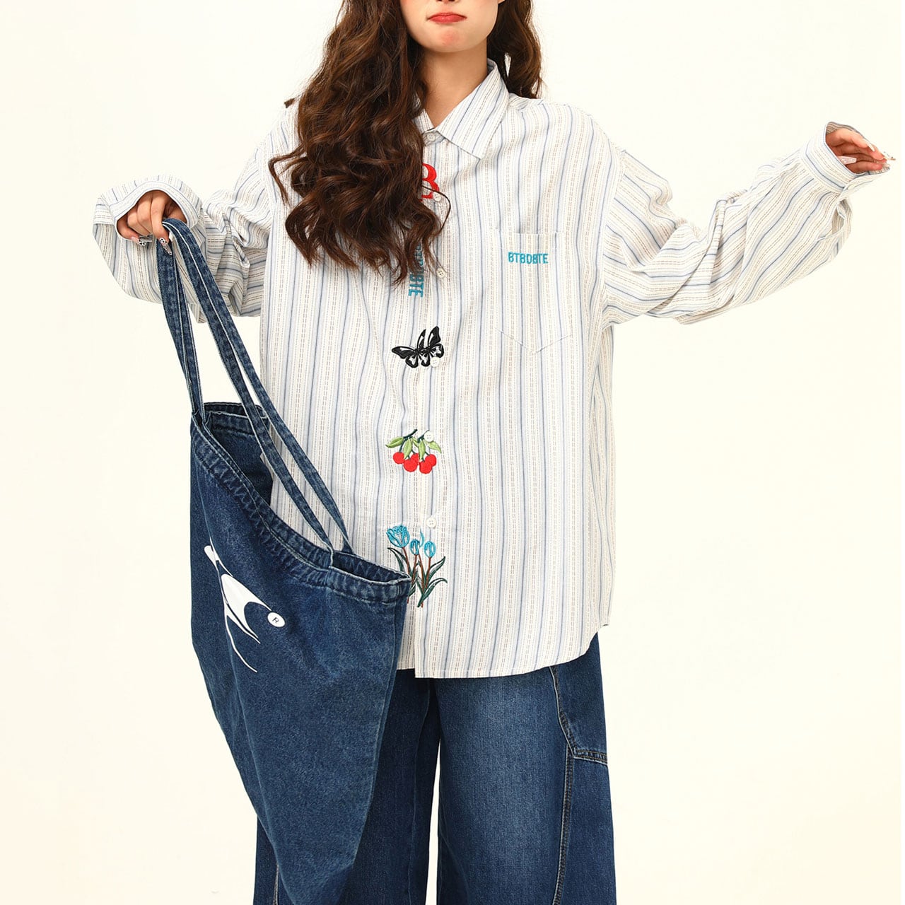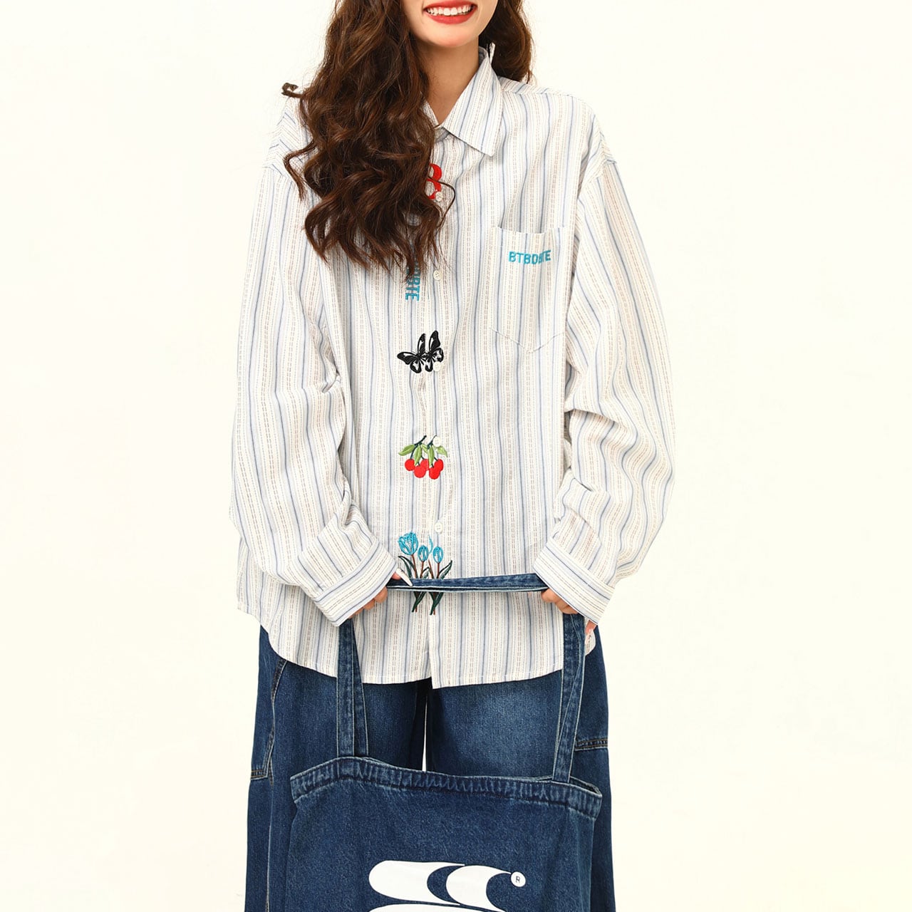 ストライプフラワーエンブロイダリーシャツ R00751