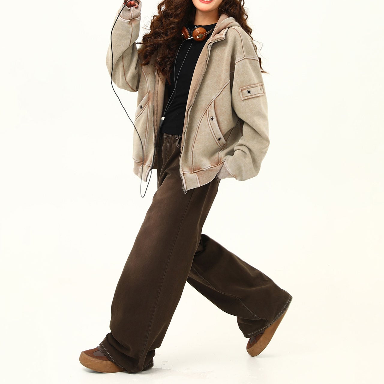 フロントと袖のディテールがさりげなく主張するジップパーカー。