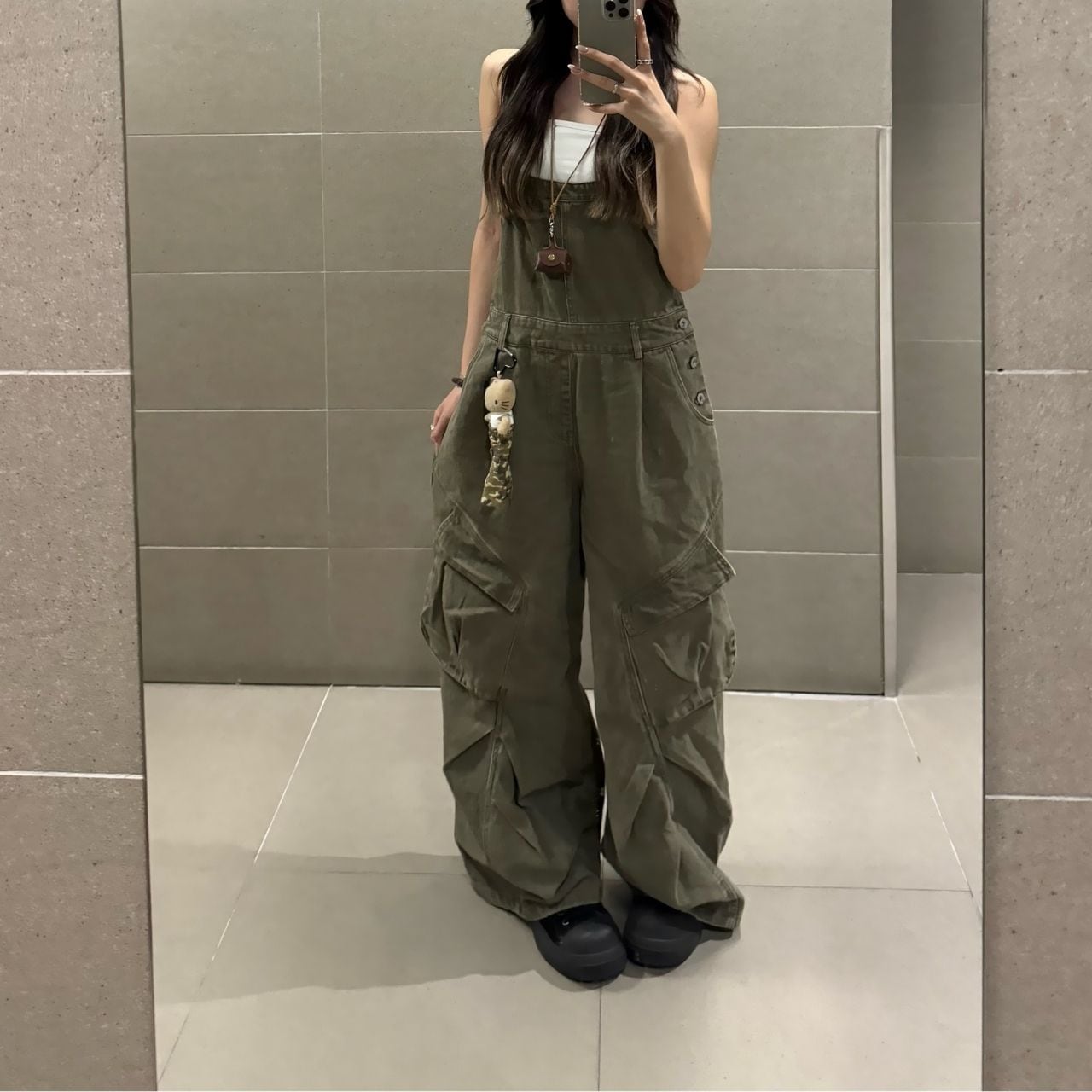 大きめポケットがポイントになったミリタリーテイストのオーバーオール。