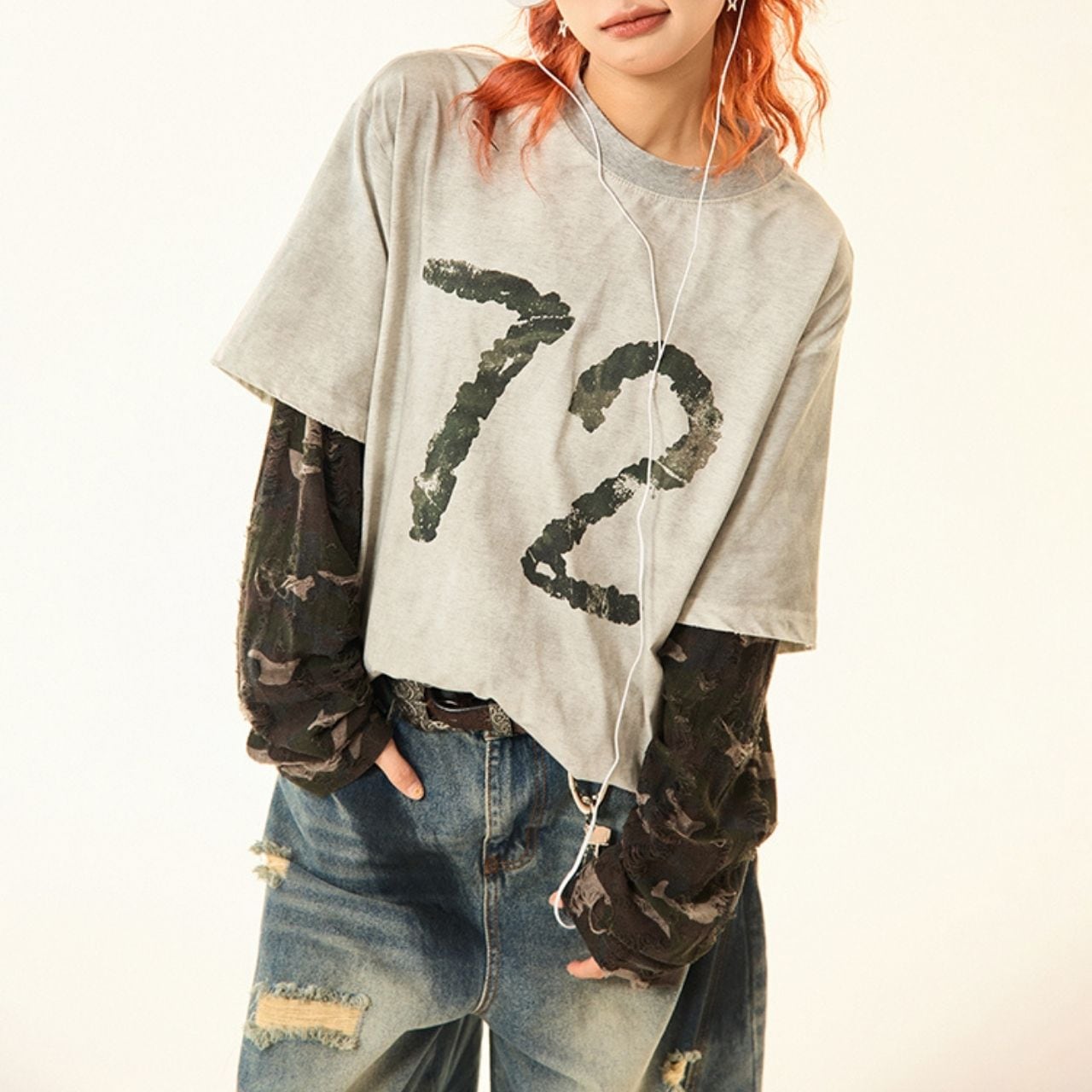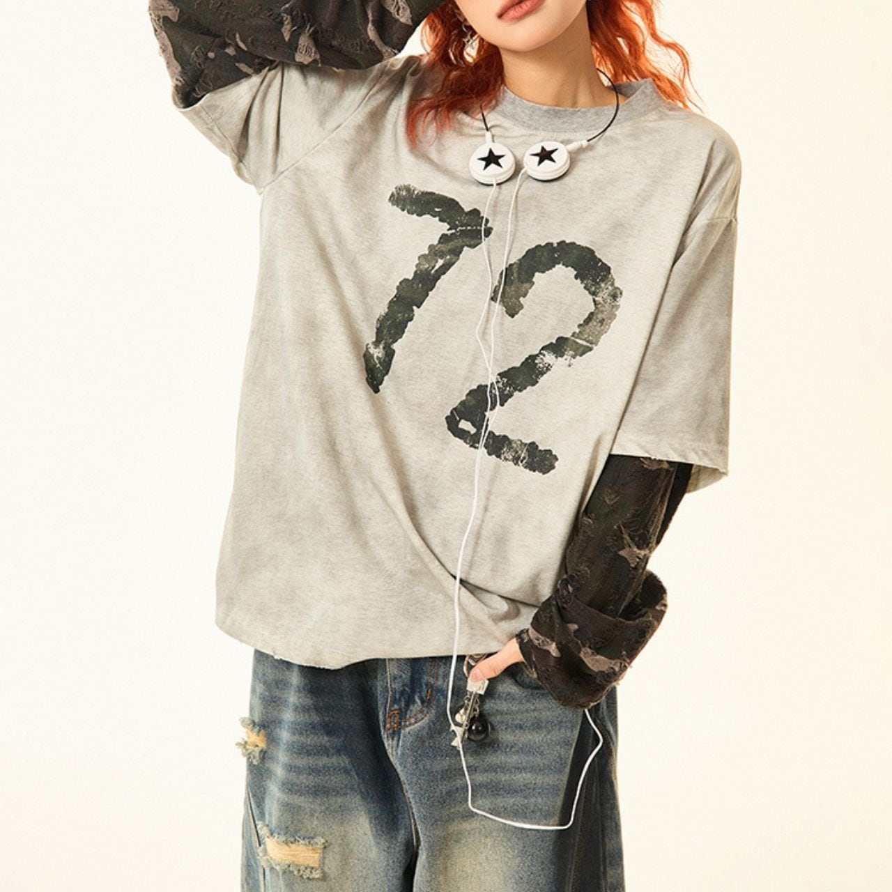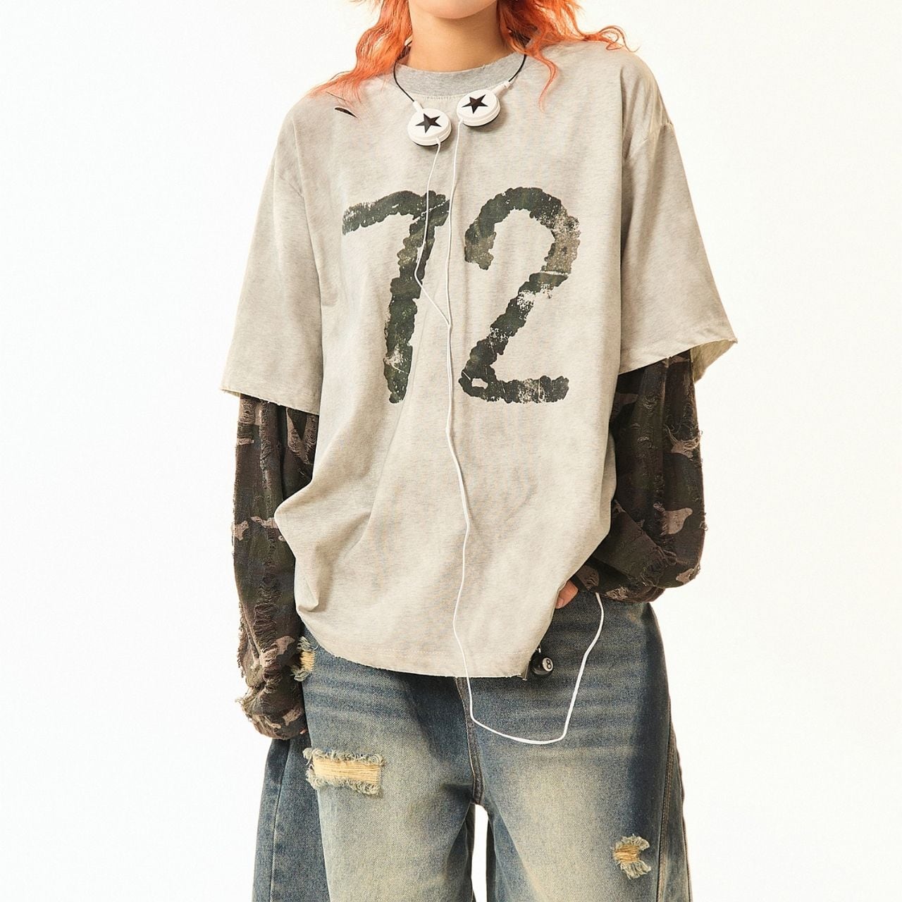 カモフラナンバープリントカジュアルTシャツ R00843