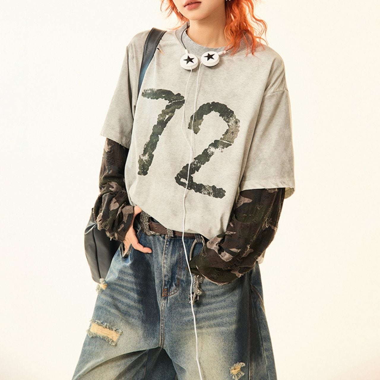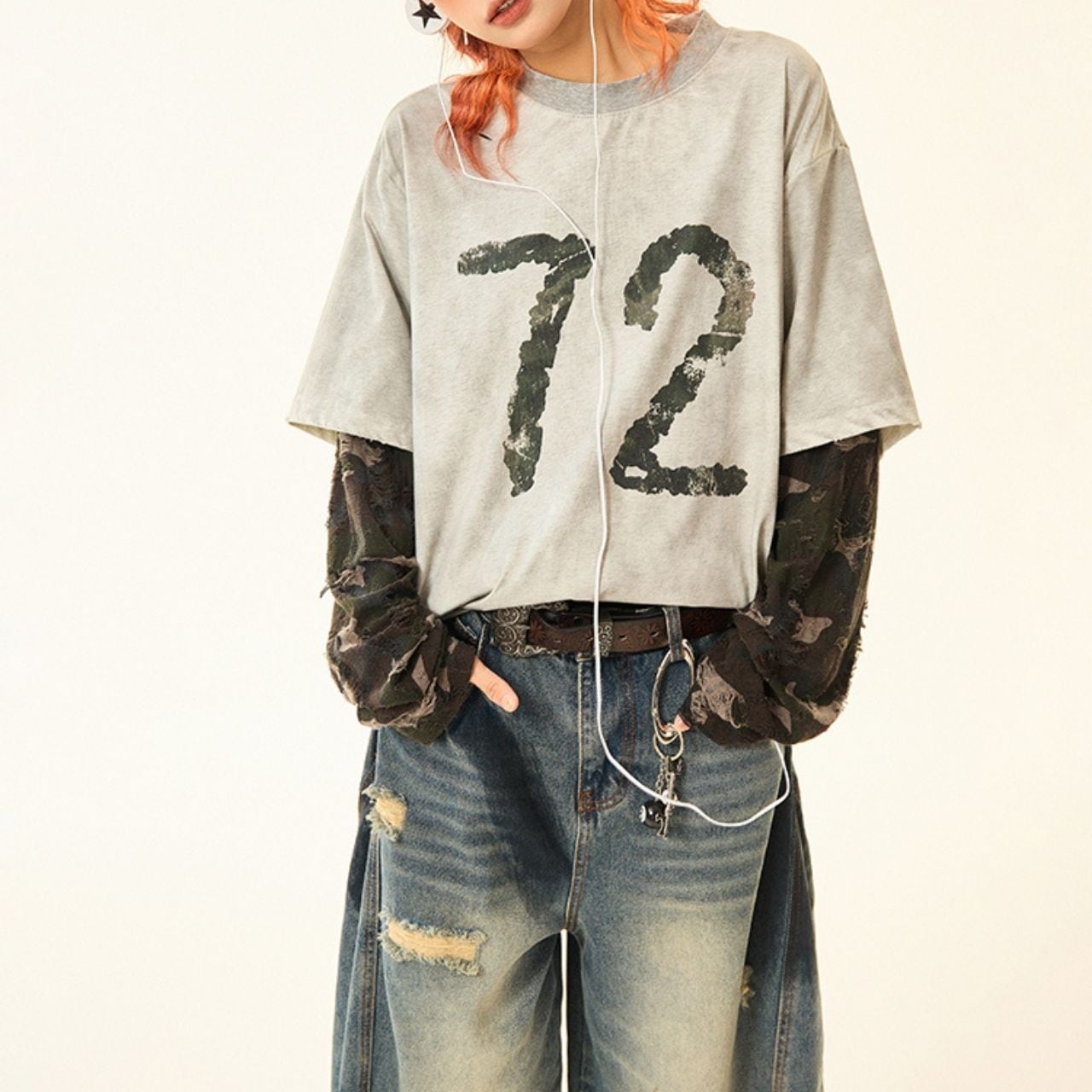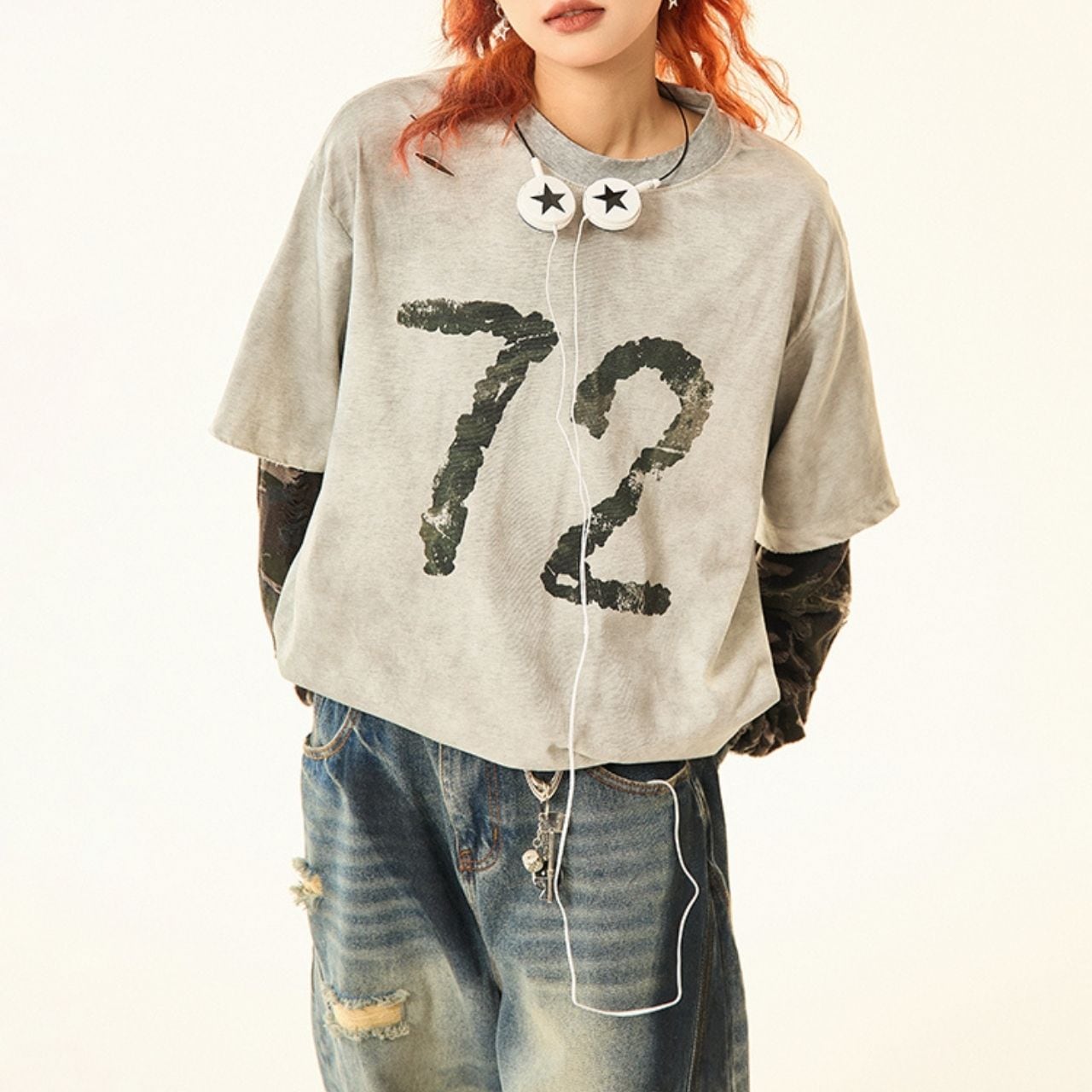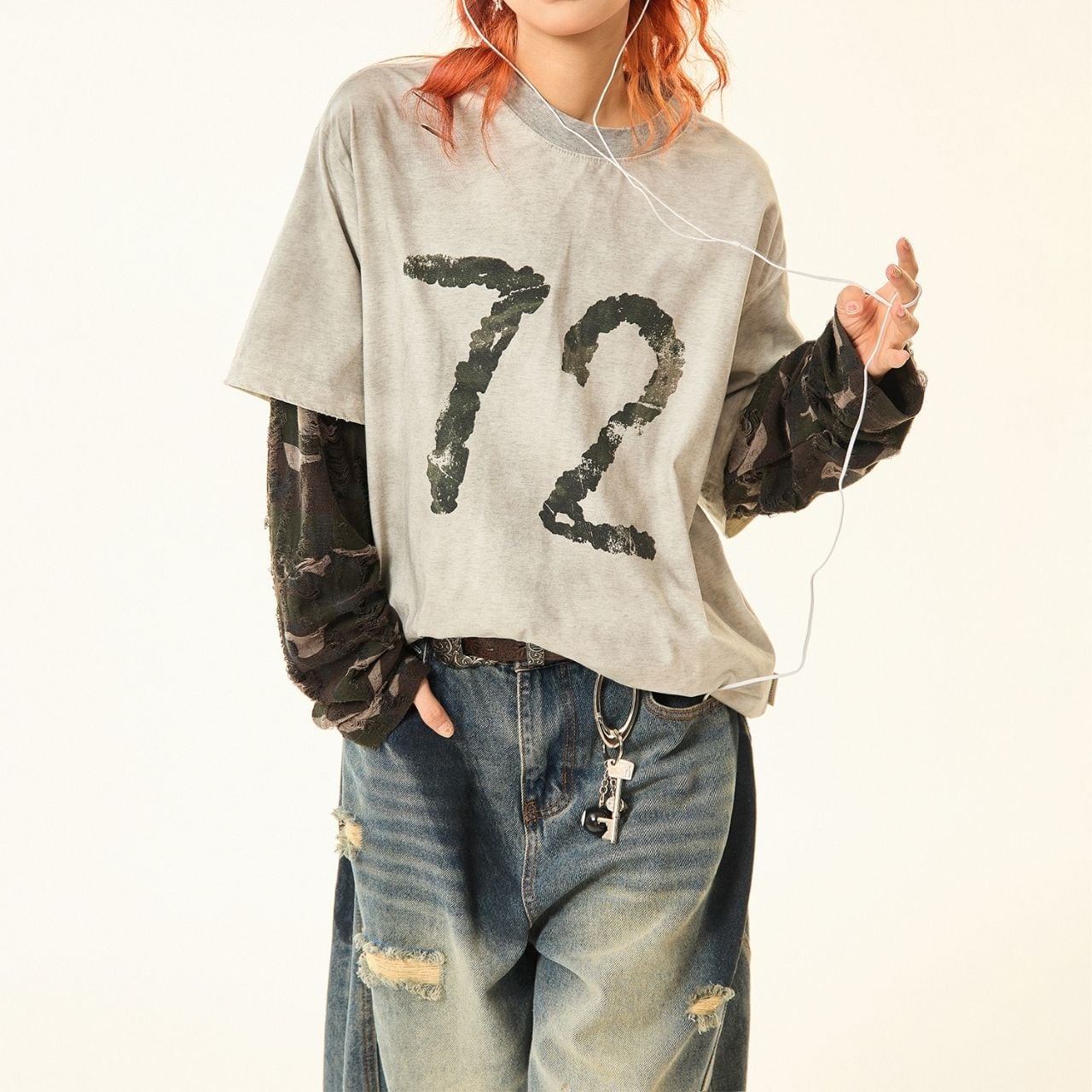 カモフラナンバープリントカジュアルTシャツ R00843