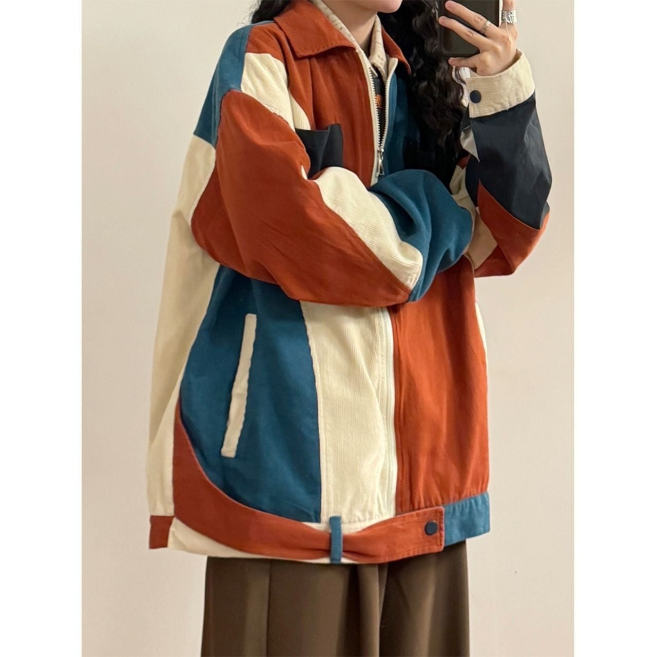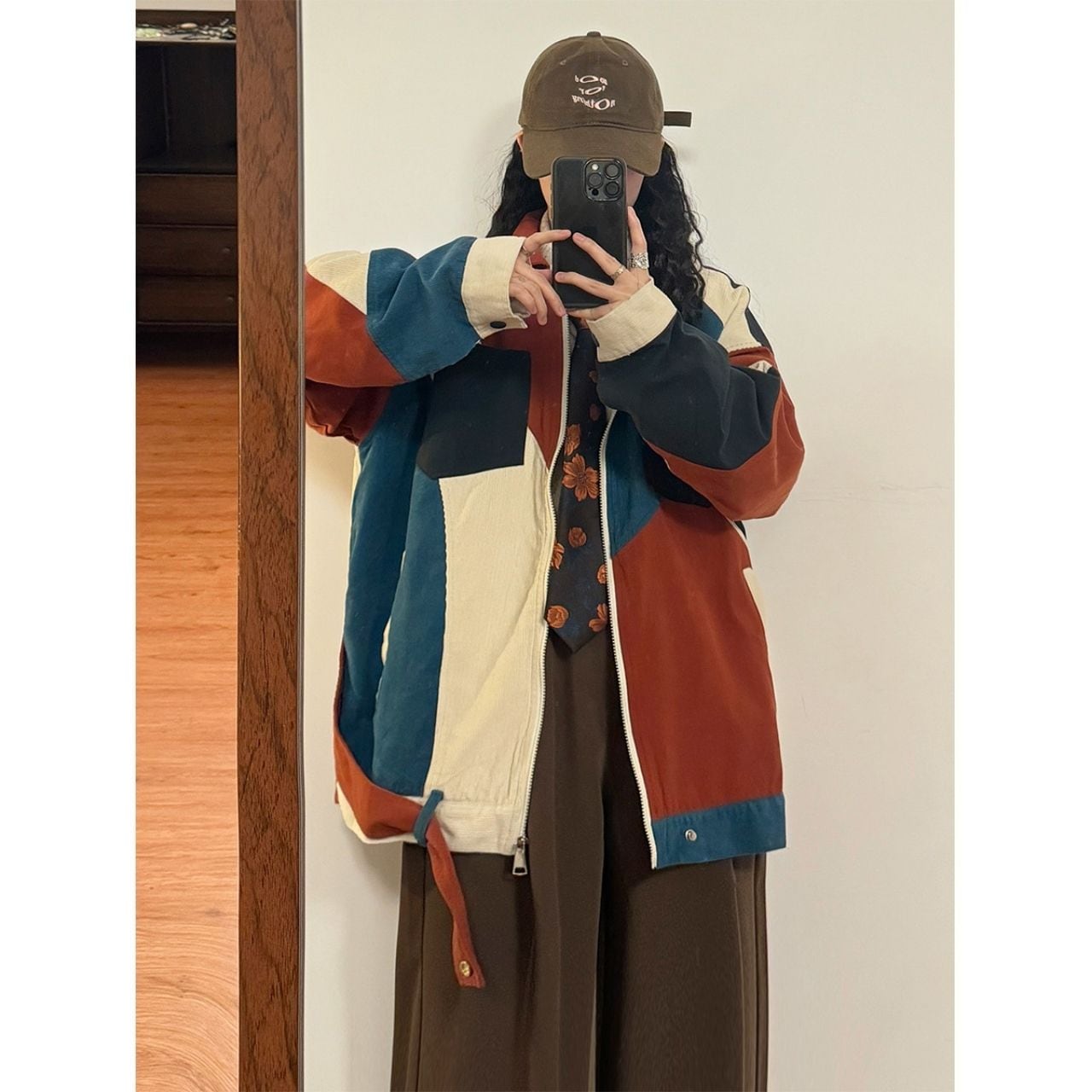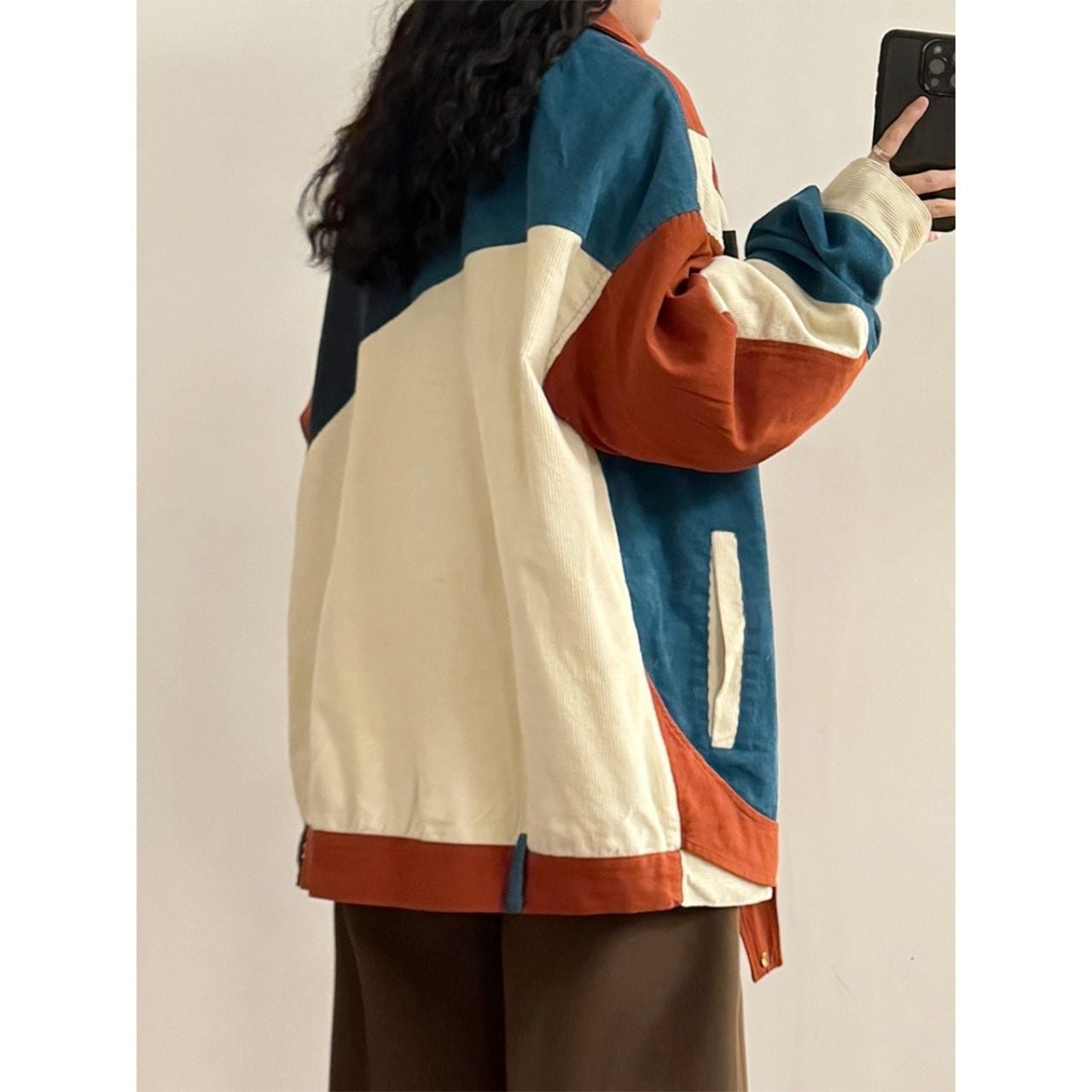 ジオメトリックブロッキングオーバージャケット 2col R00864