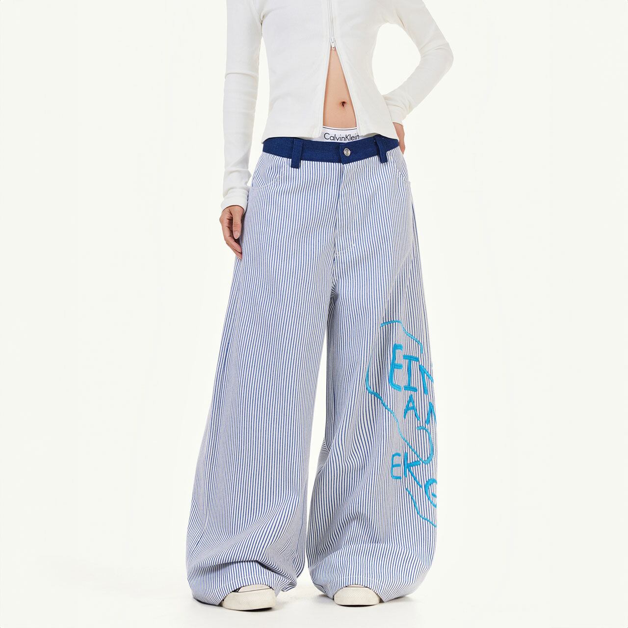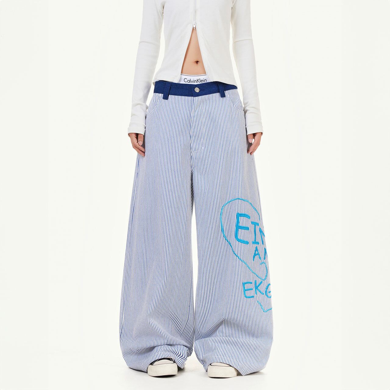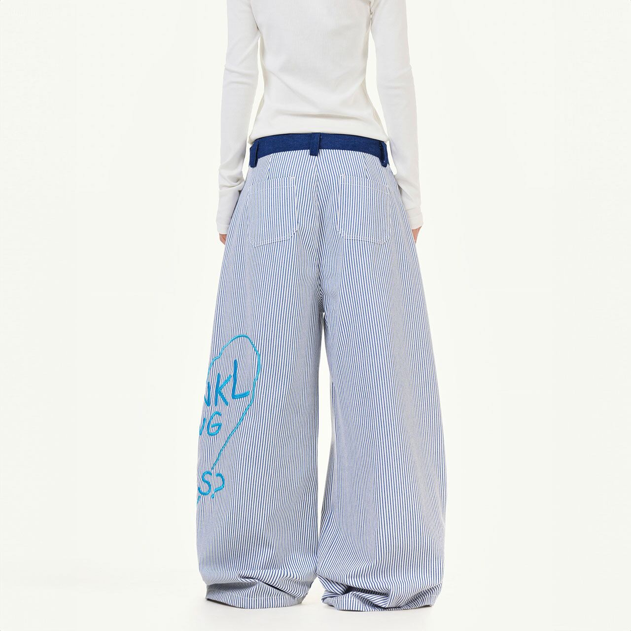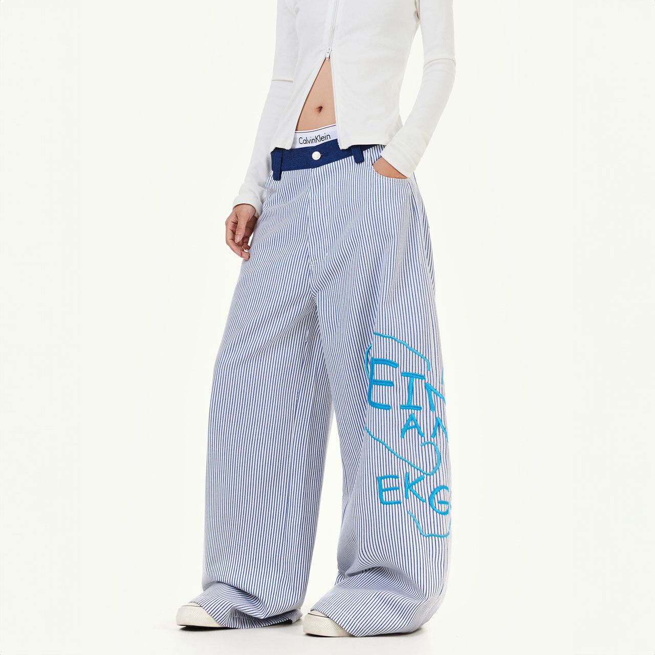 ストライプグラフィック刺繍ワイドパンツ R00867