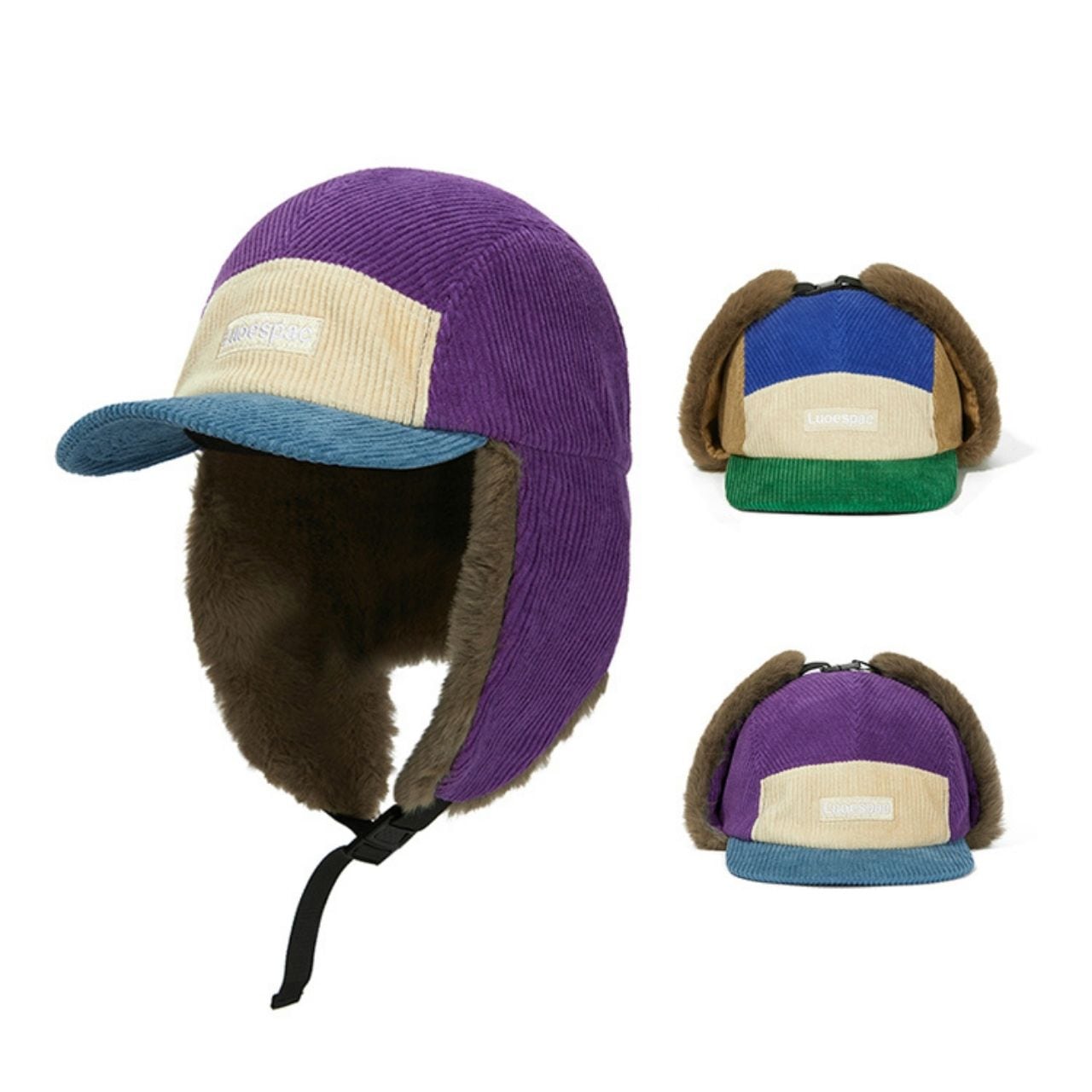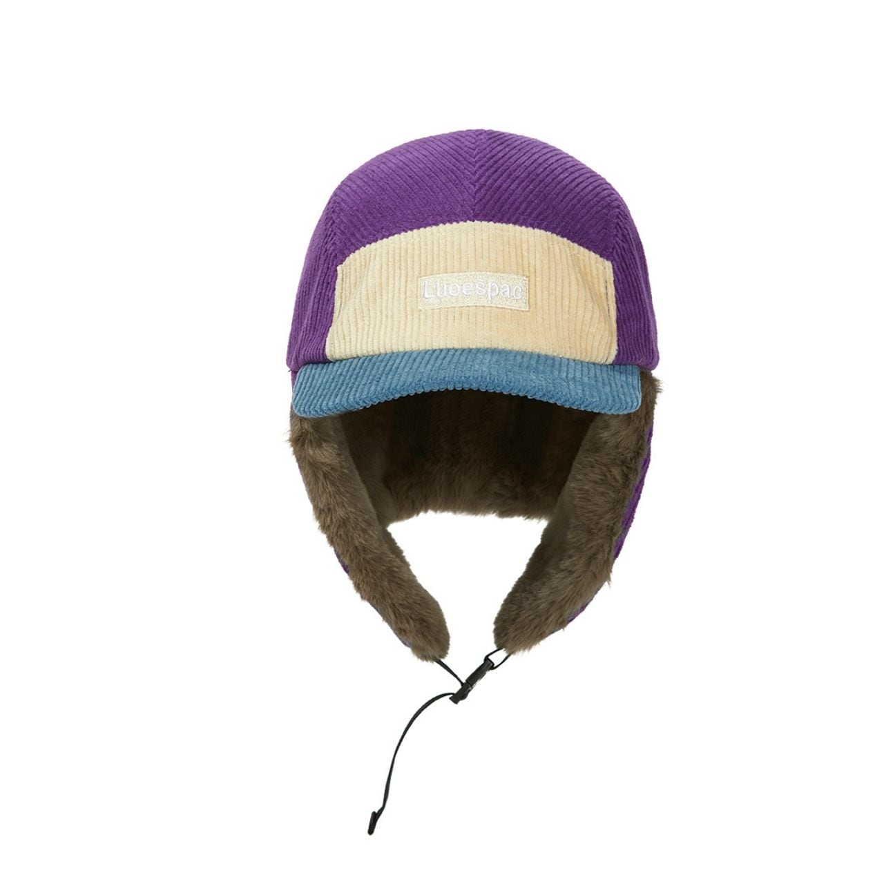 (クラウン:パープル、つば:ブルー、フロント&サイド:ベージュ、耳あて:ブラウンファー)