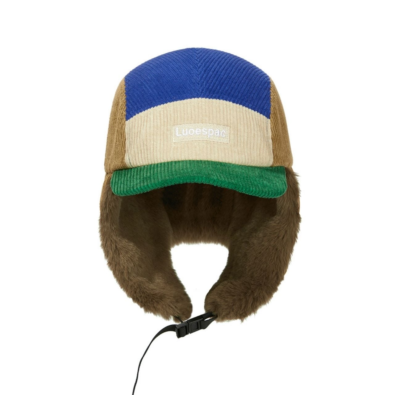 (クラウン:ブルー、つば:グリーン、フロント&サイド:ベージュ、耳あて:ブラウンファー)