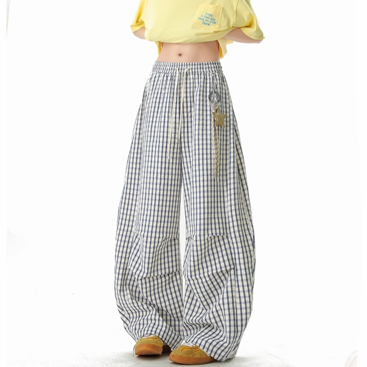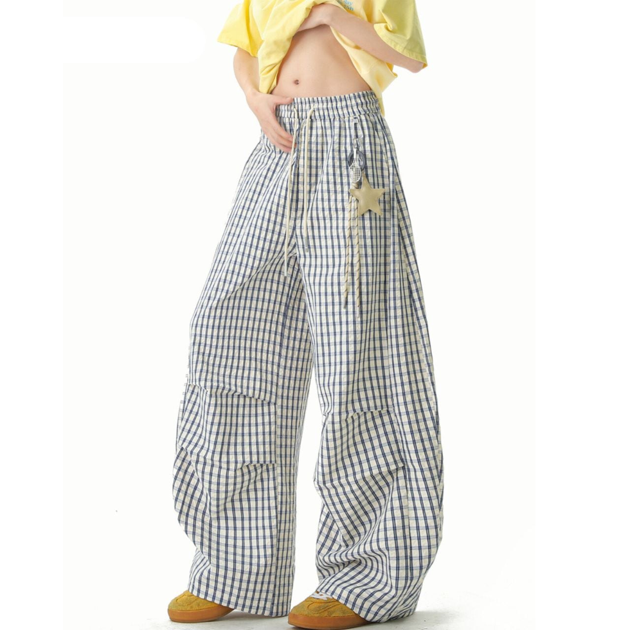 グリッドチェックギャザーリラックスパンツ R00956