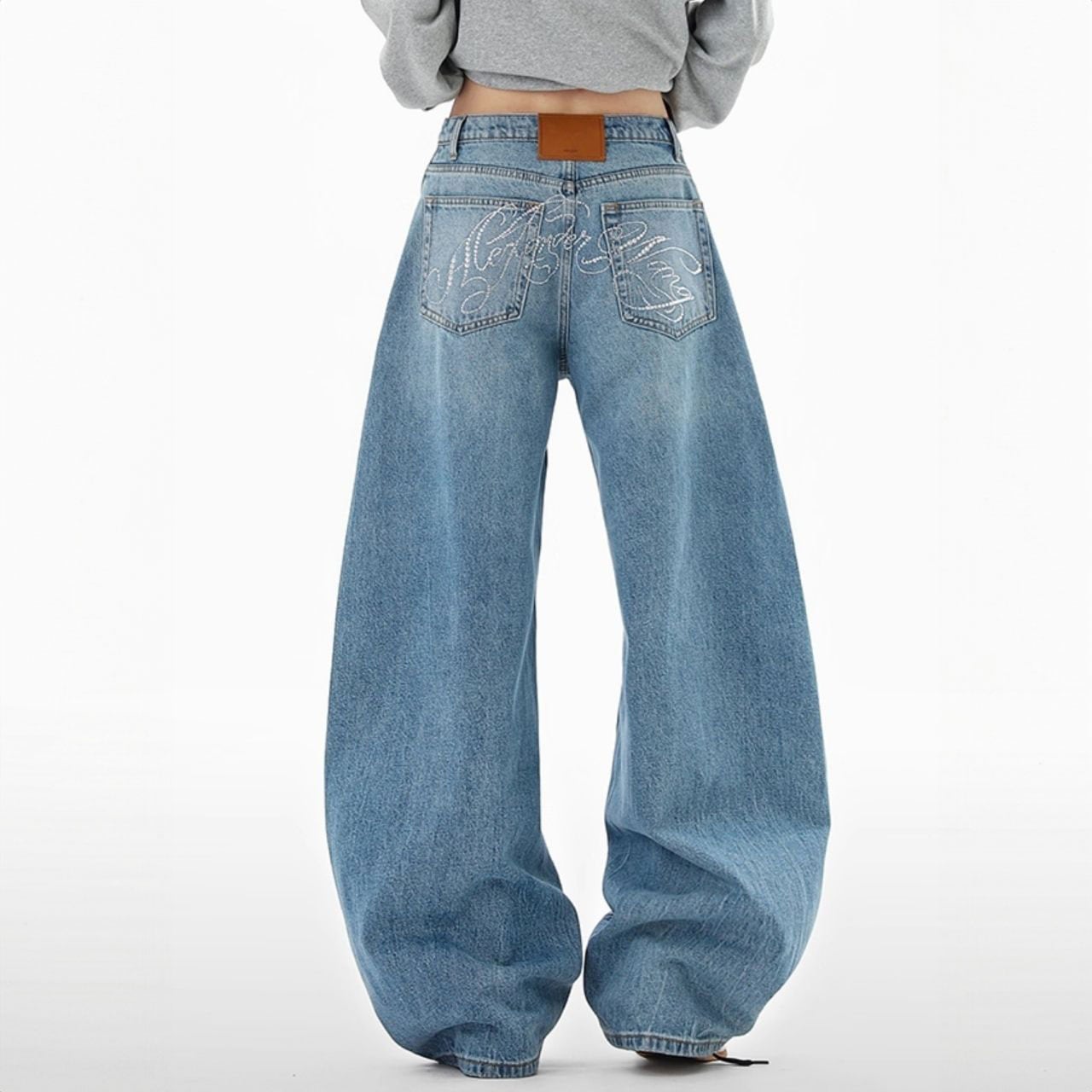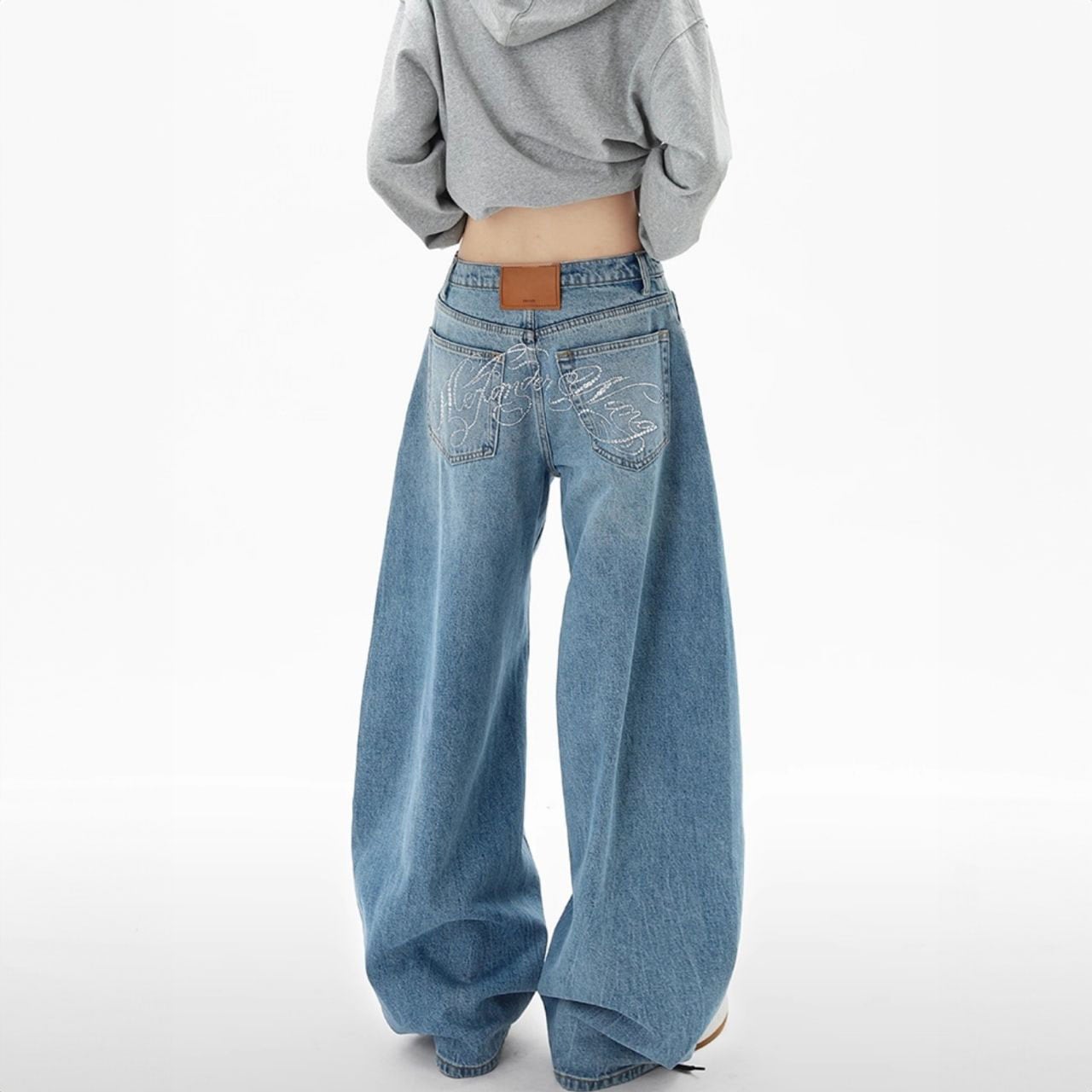 ヒップポケットに大胆なロゴを施したワイドデニム。