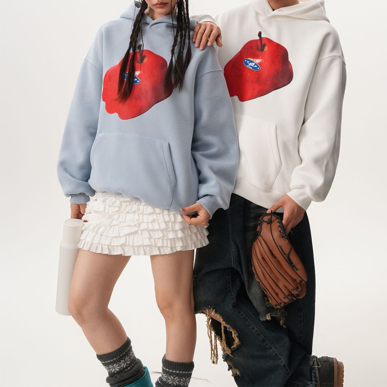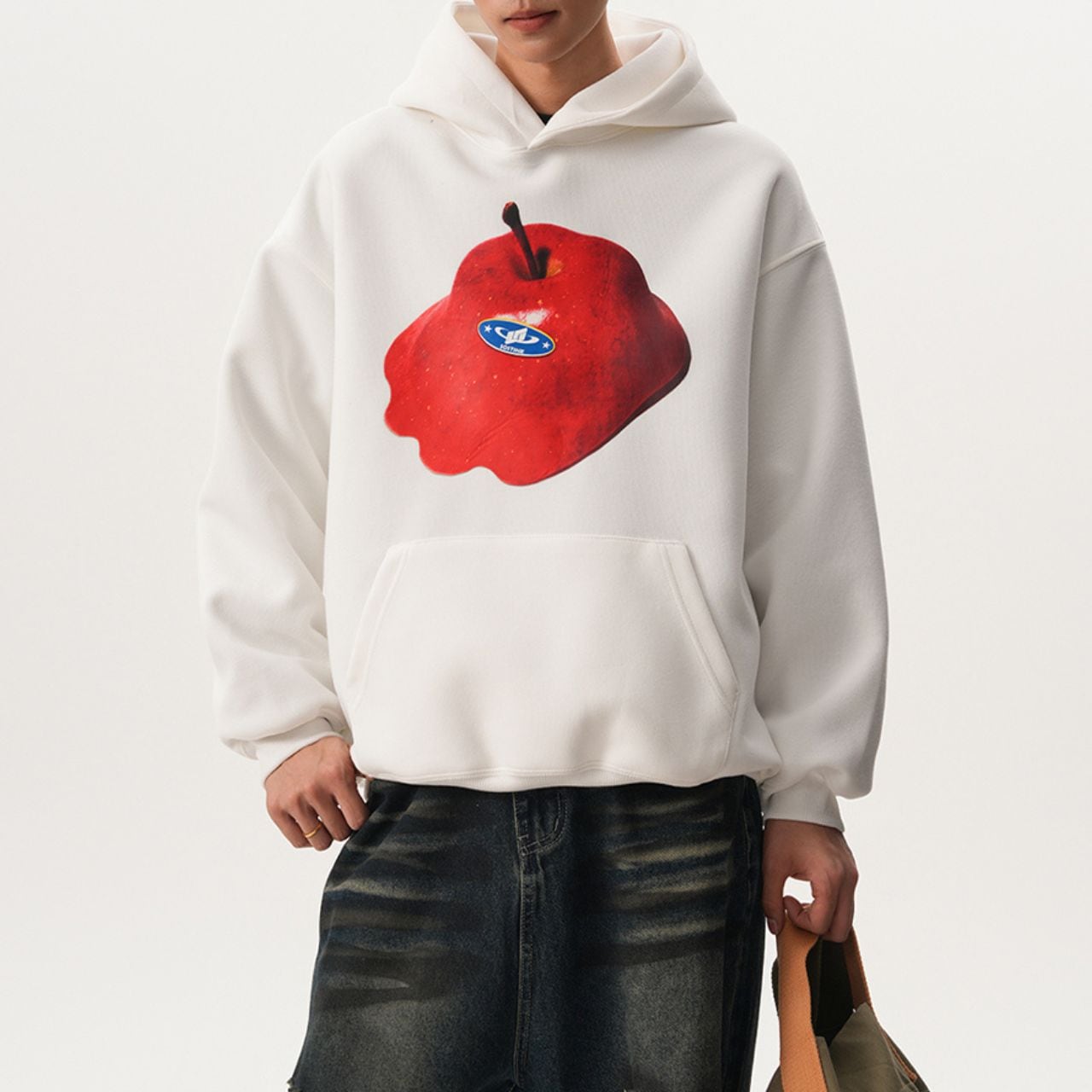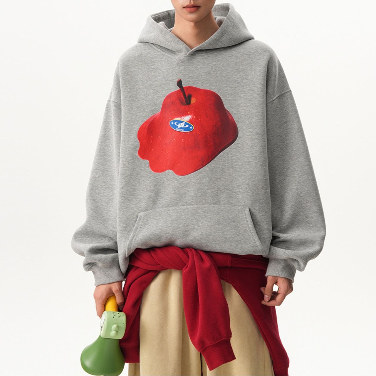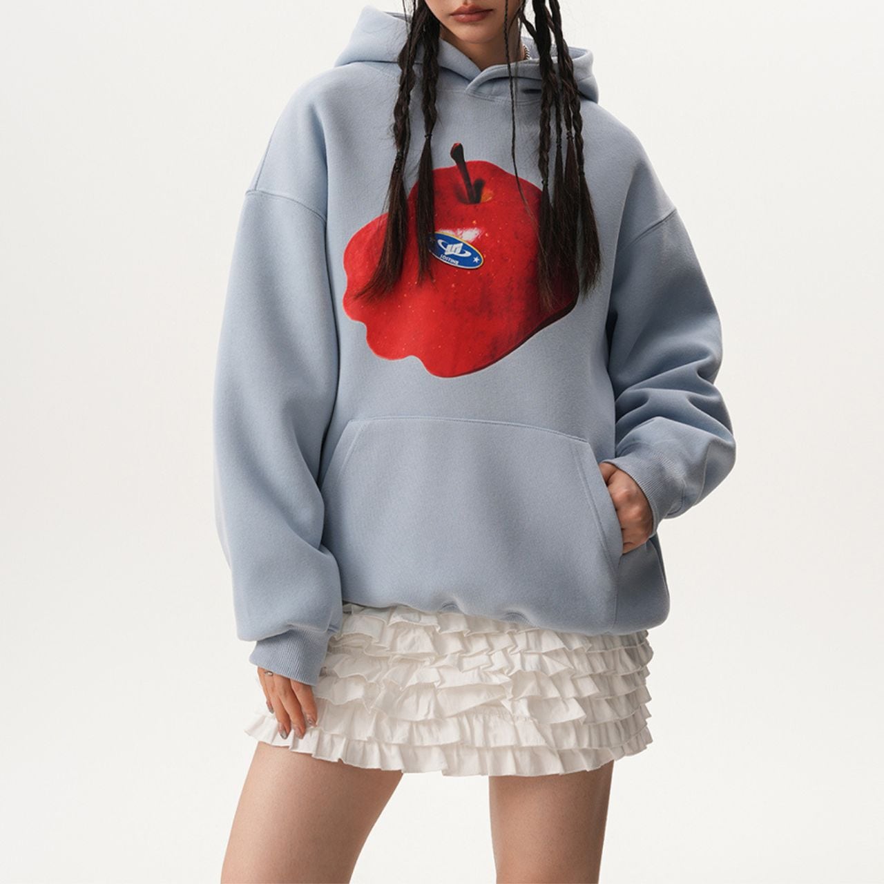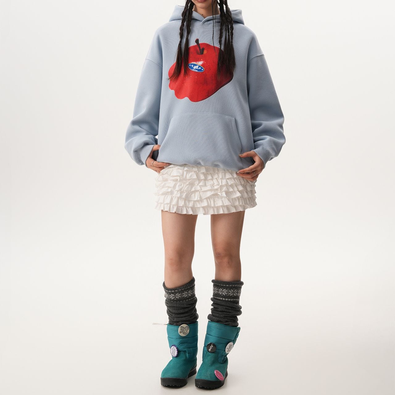 大きなアップルプリントが視線を奪うユニークなデザイン。