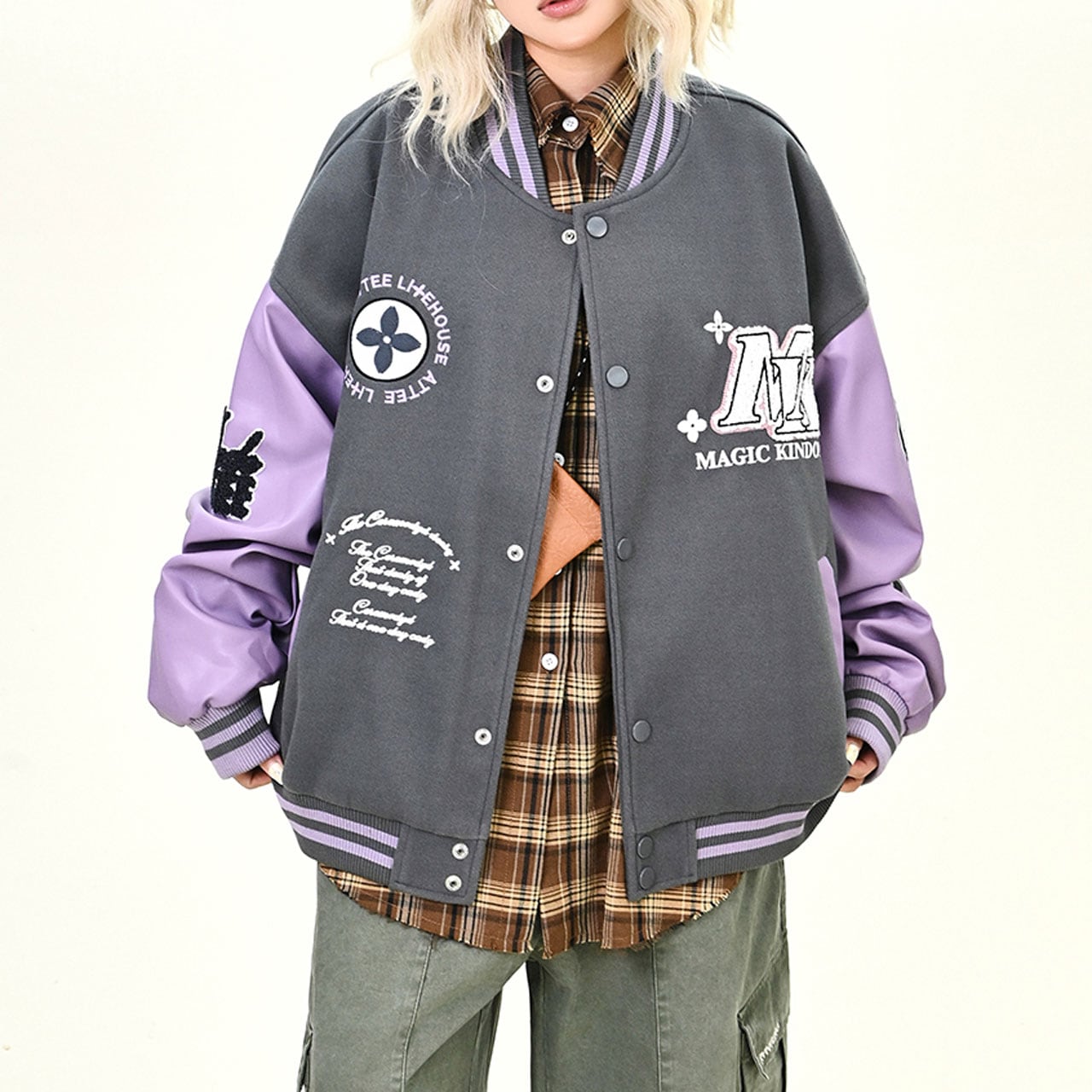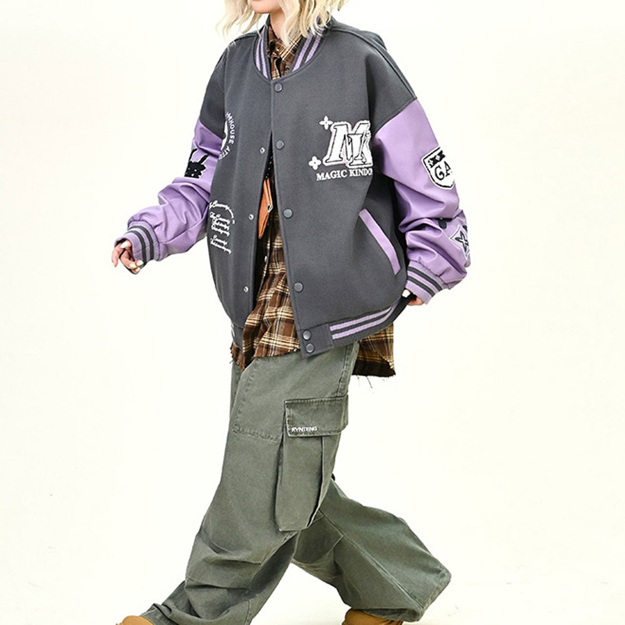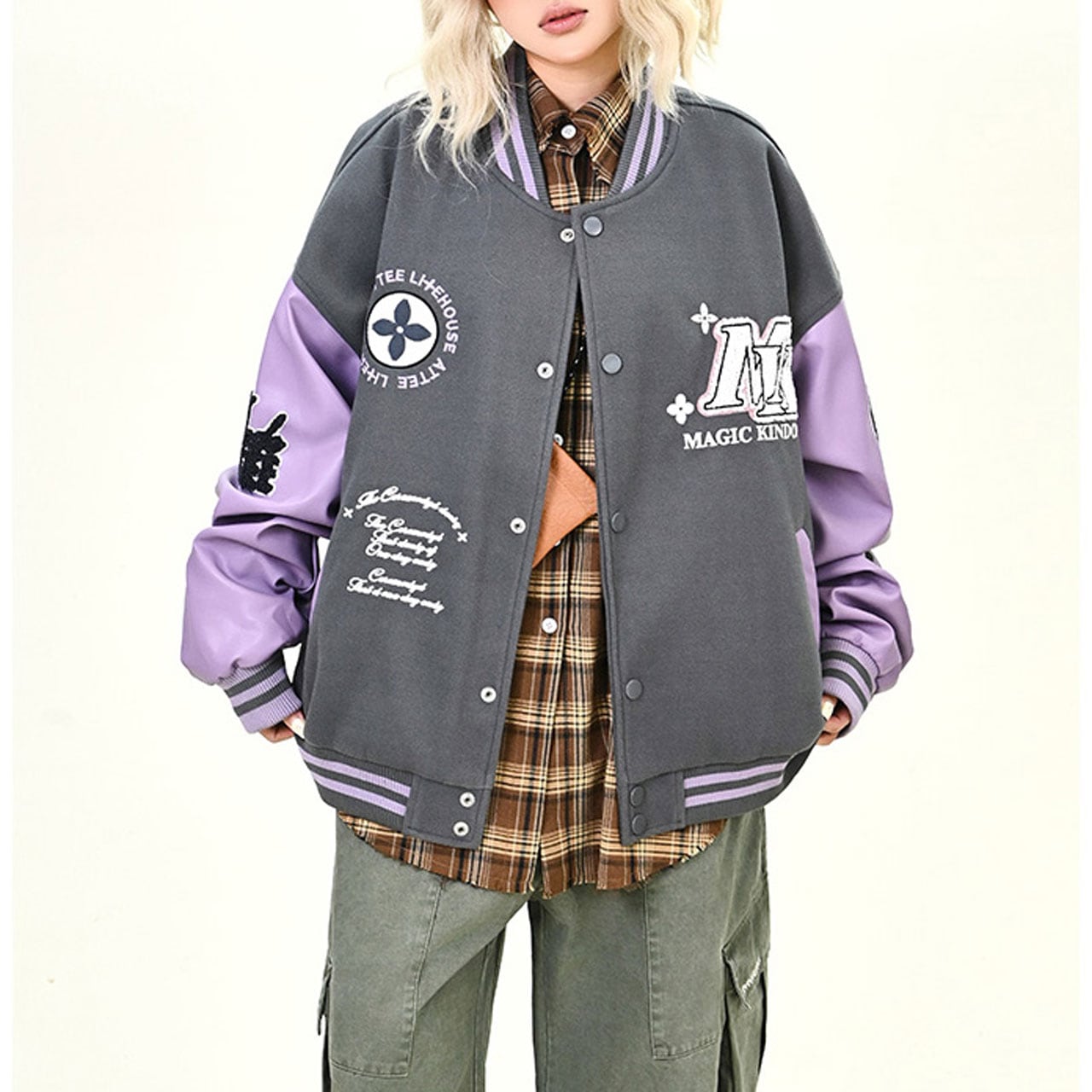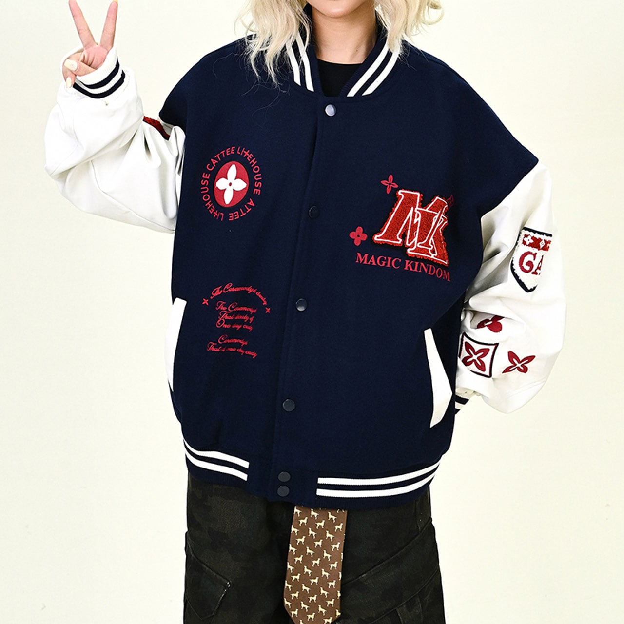 バイカラーの切り替えが映えるスタジャン風ブルゾン。
