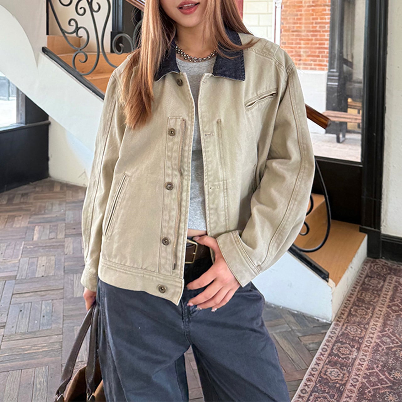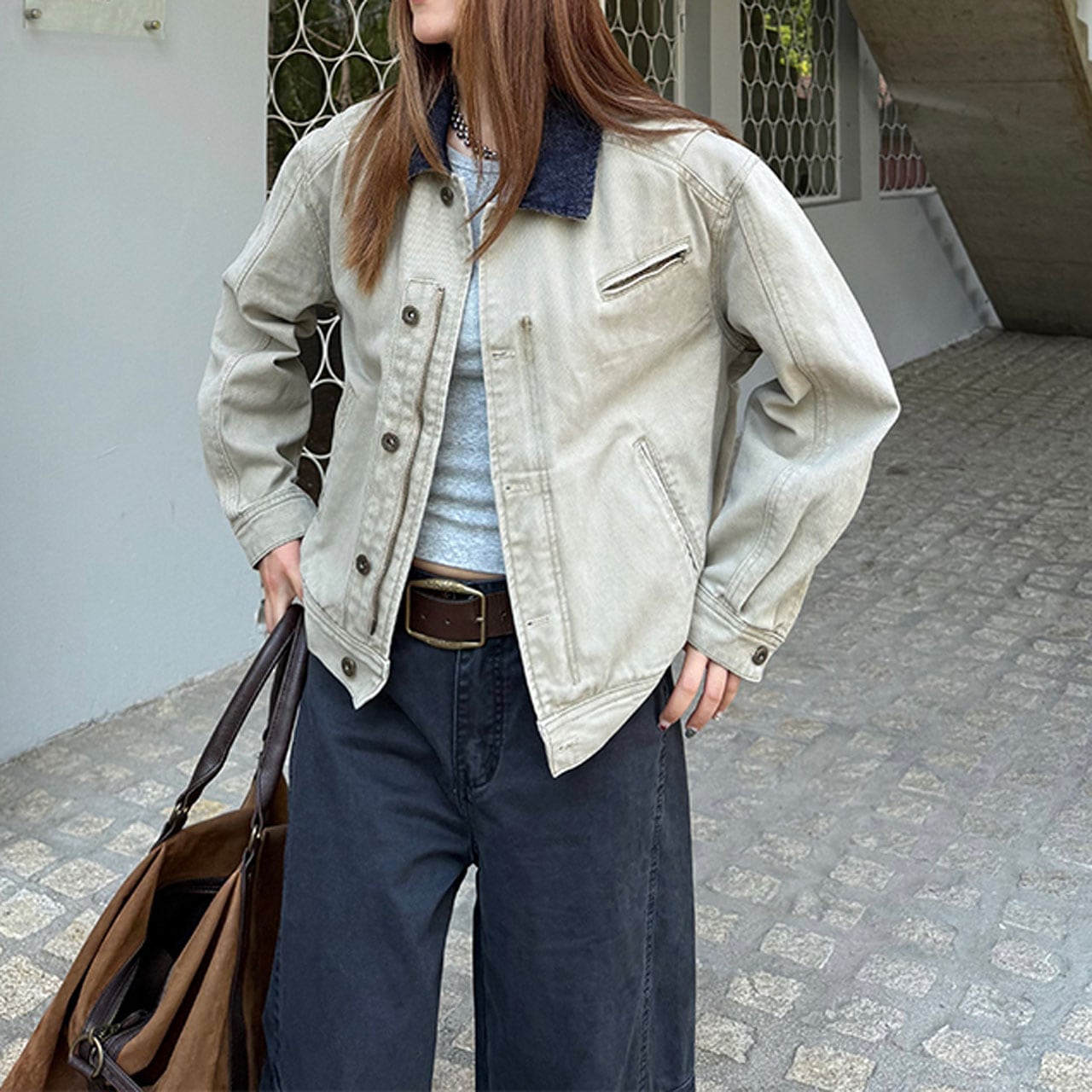 程よいゆるさで羽織るだけでスタイリングに抜け感を与えます。