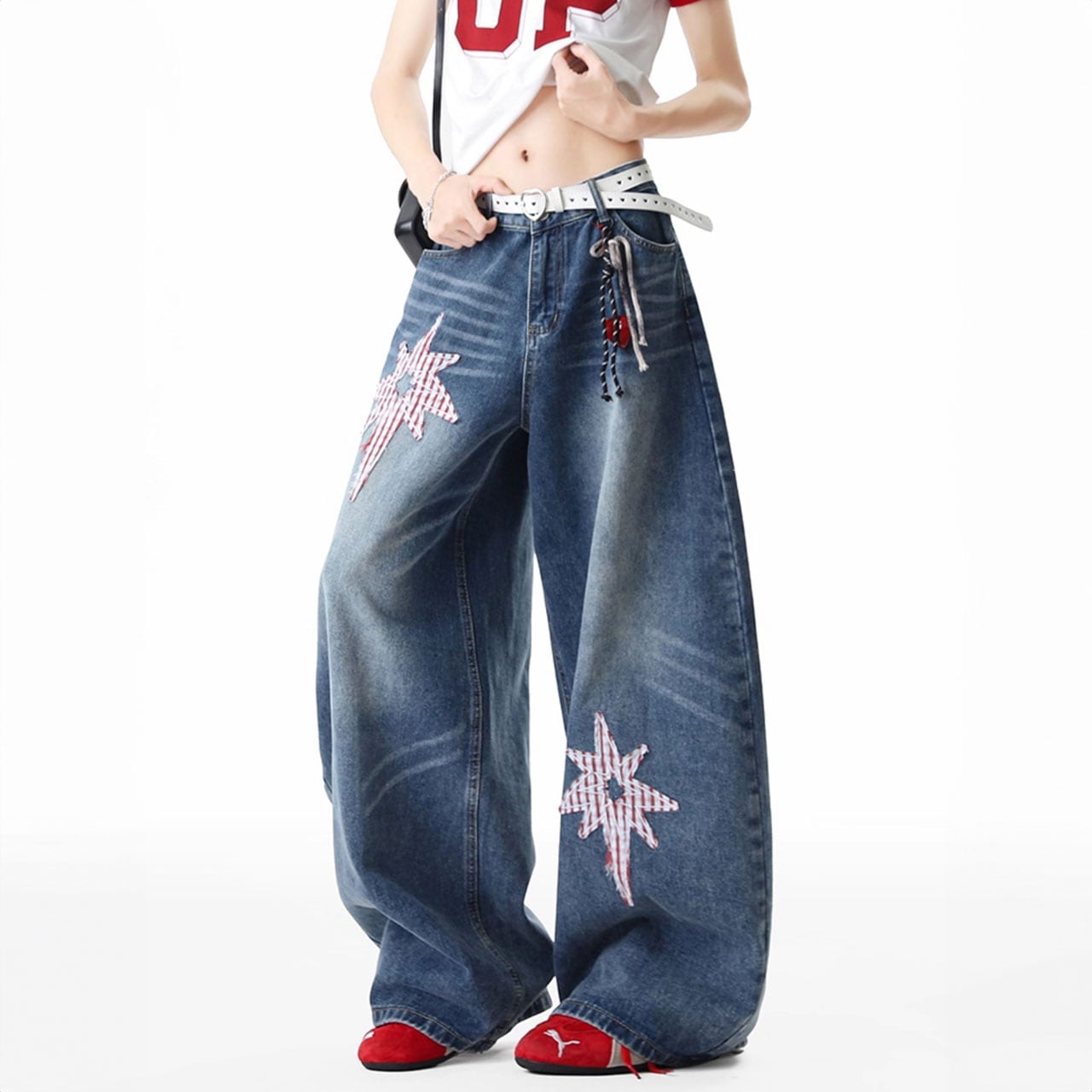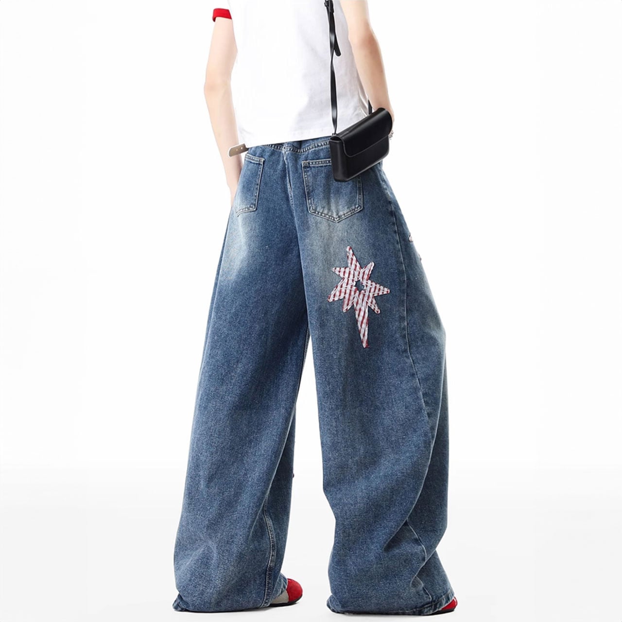 レッドチェックのスターアップリケが遊び心あるアクセント。