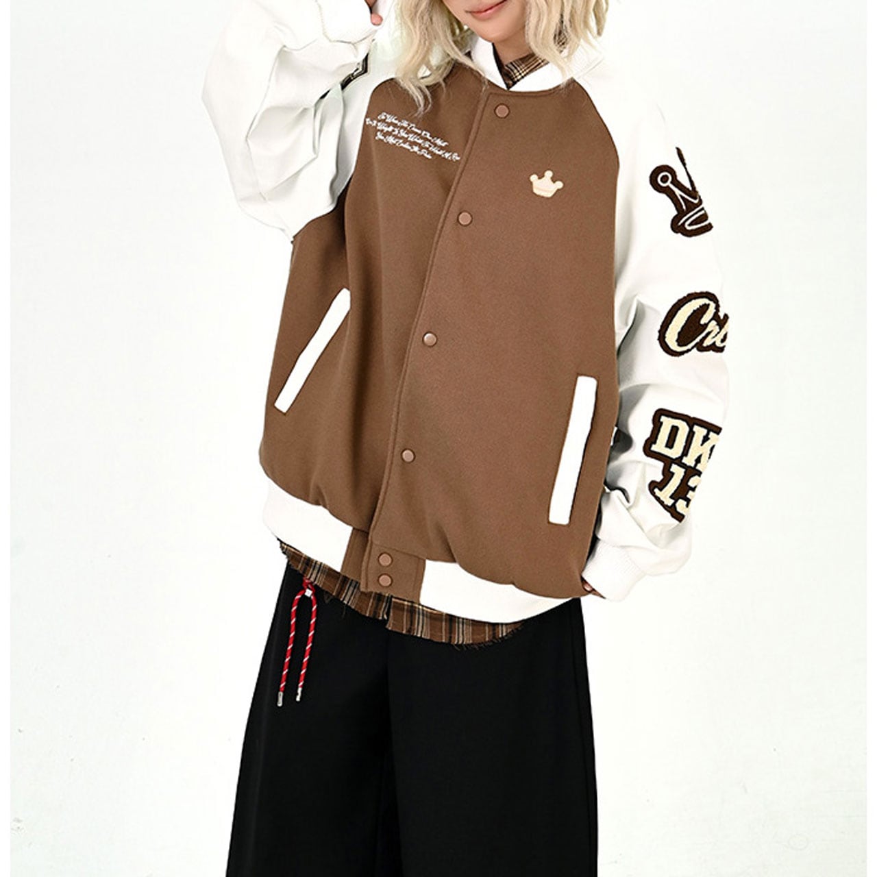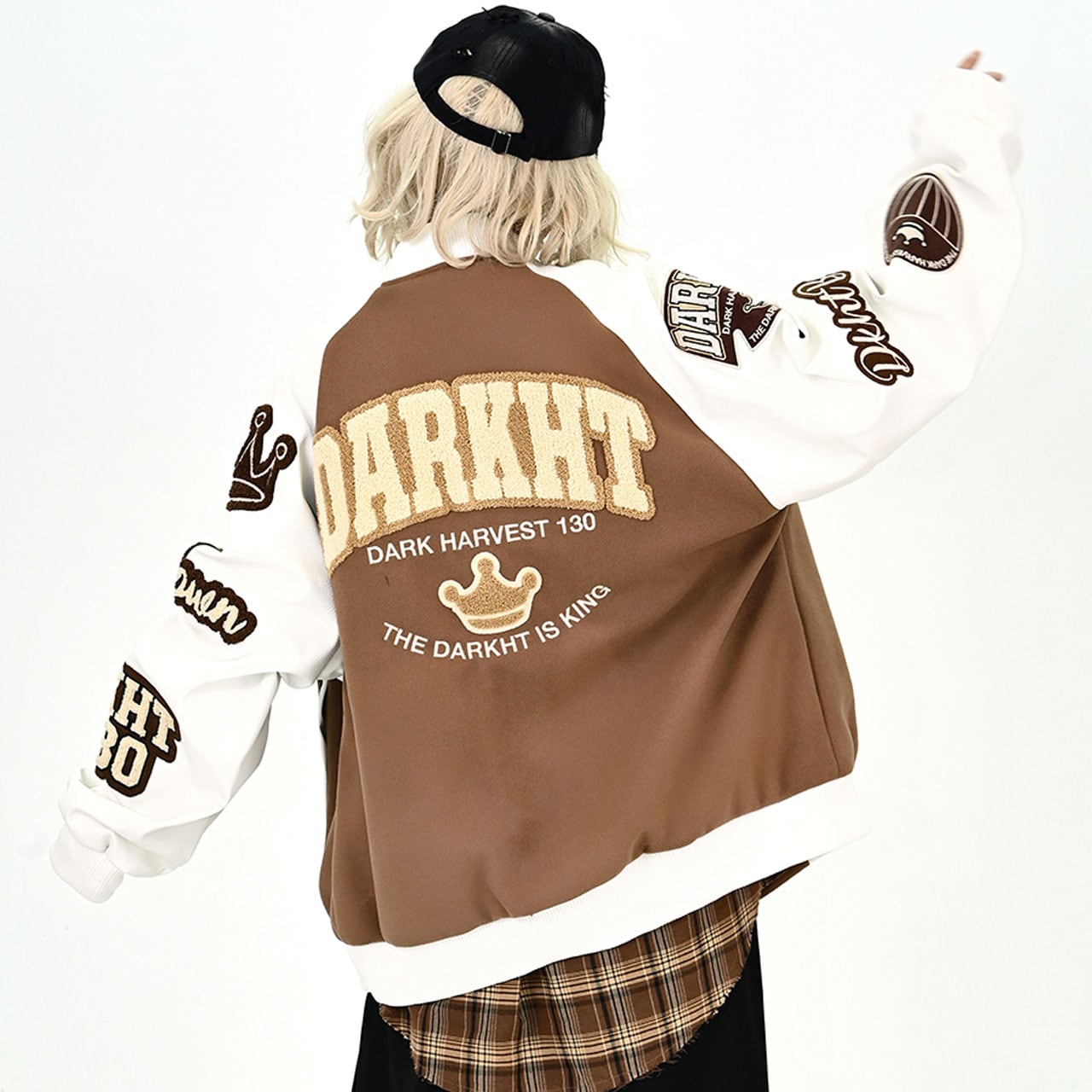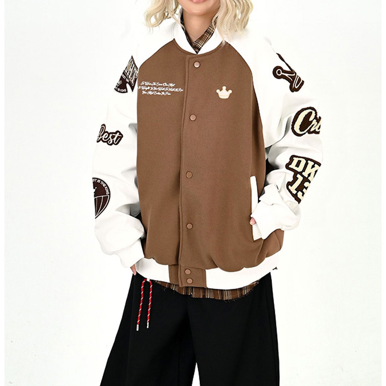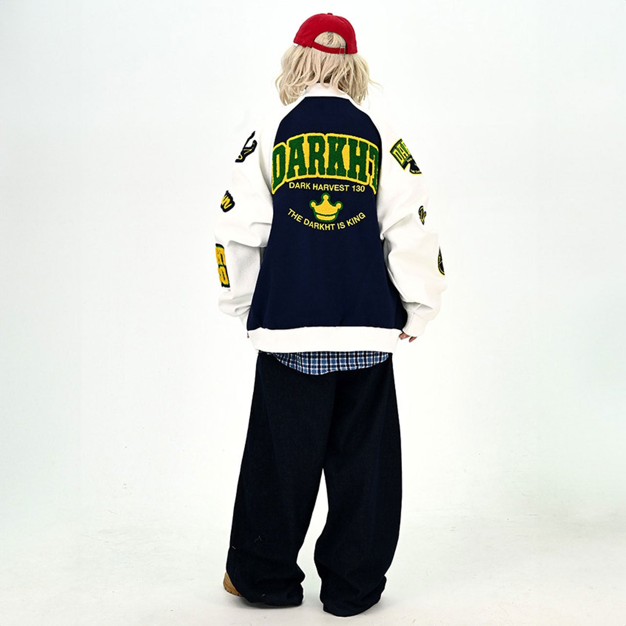 バックに大きく入ったロゴとクラウンデザインが目を引くスタジャン。