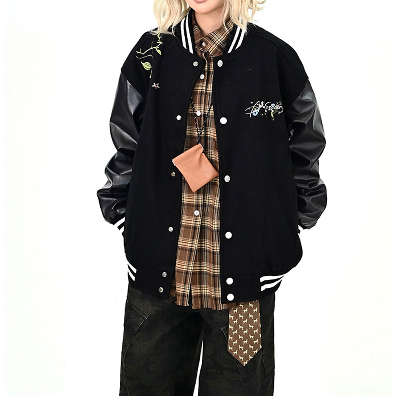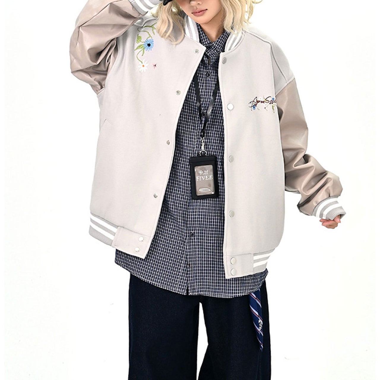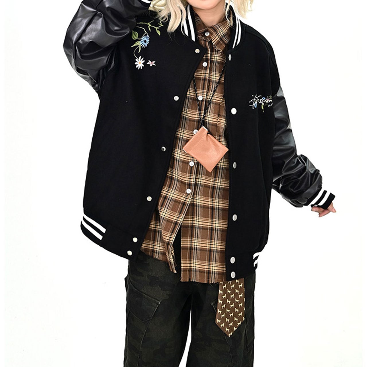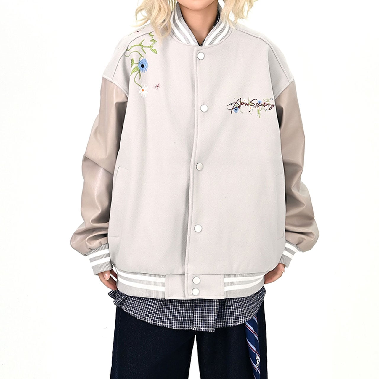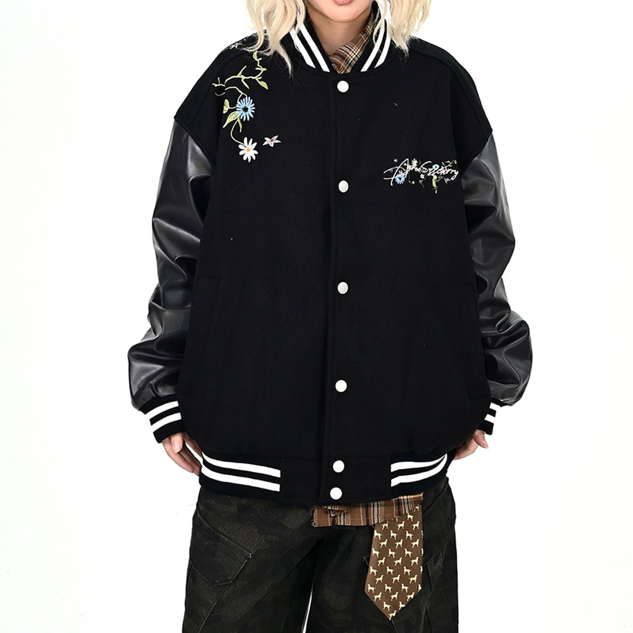 背中の花刺繍と筆記体ロゴが印象的なデザイン。