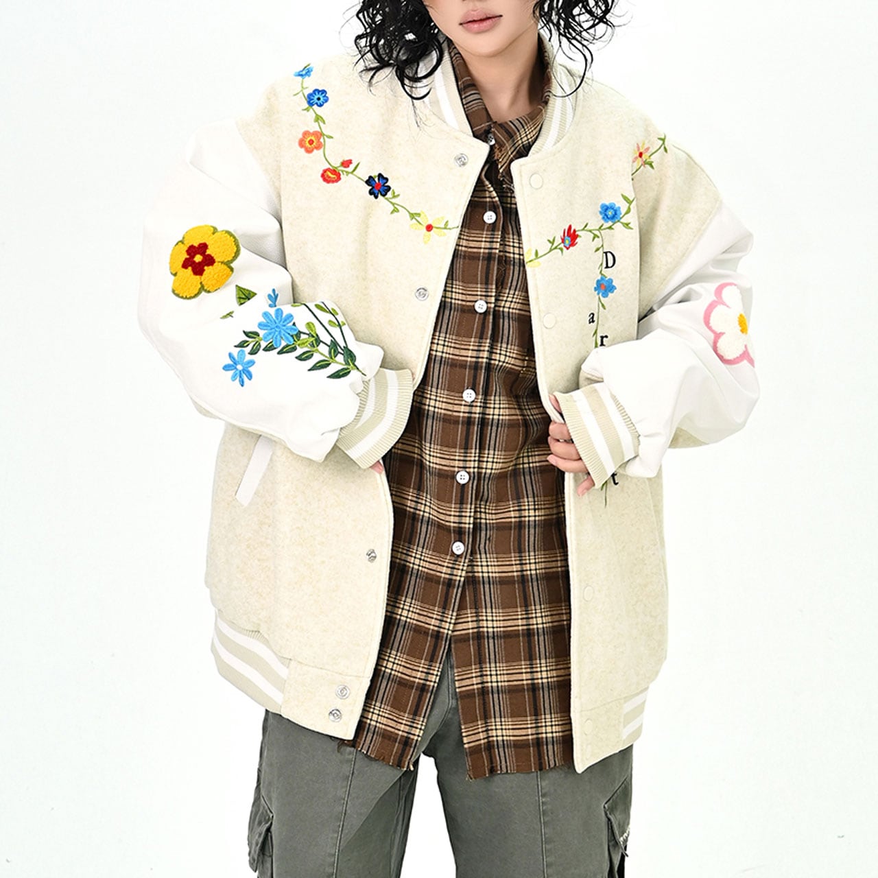 華やかな花刺繍が目を惹くナチュラルスタジャン。