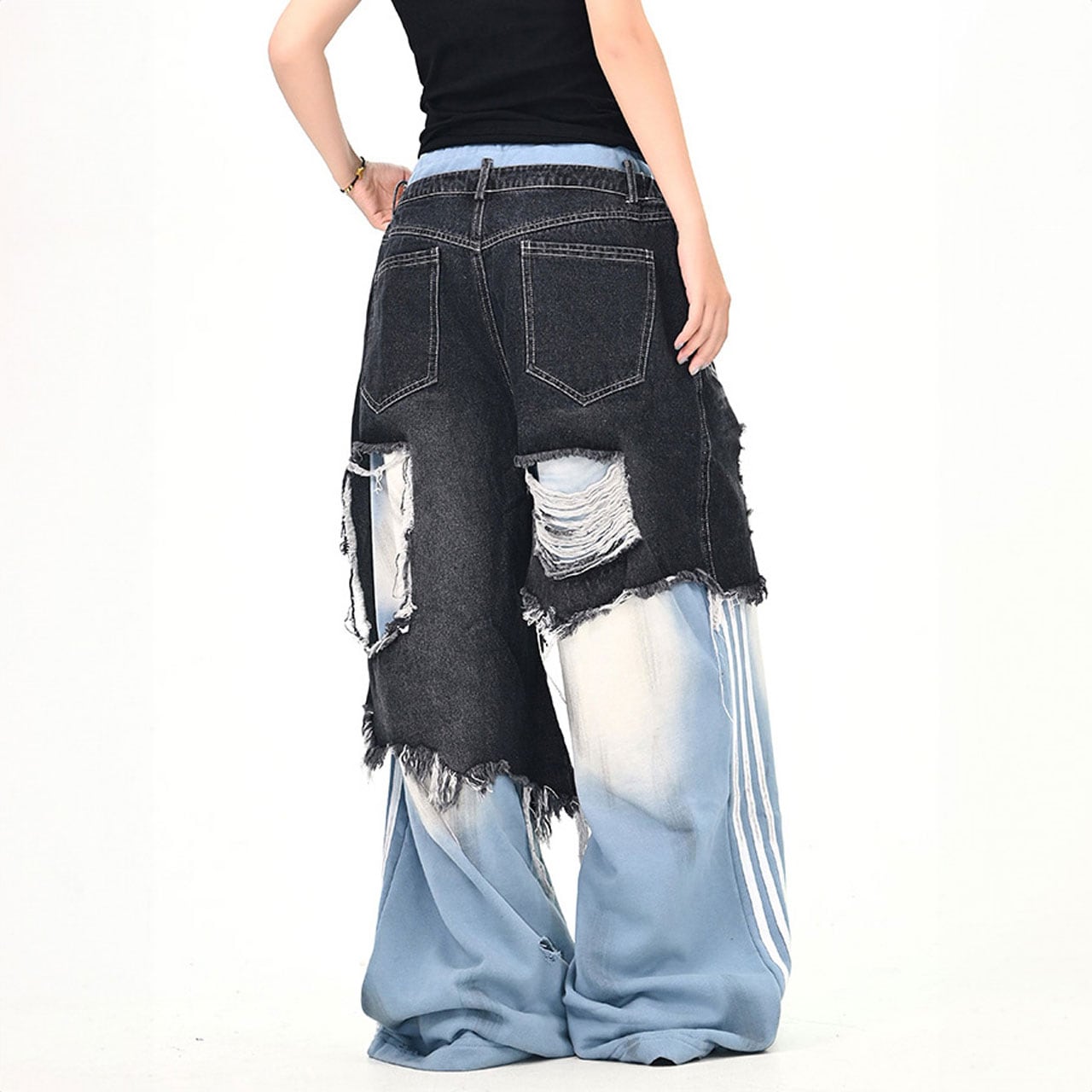 ダメージレイヤードデニムパンツ R01049