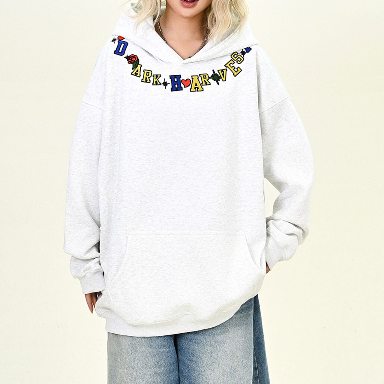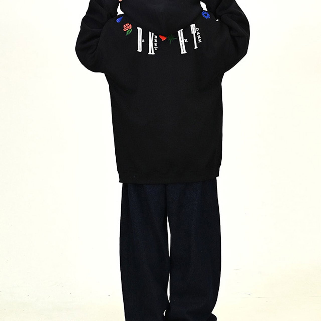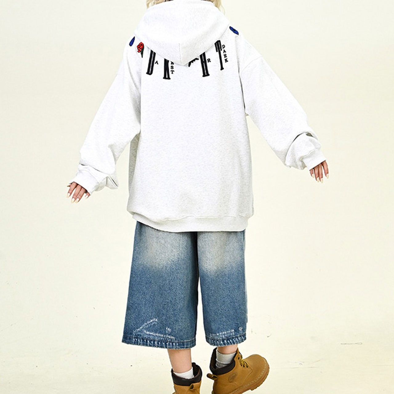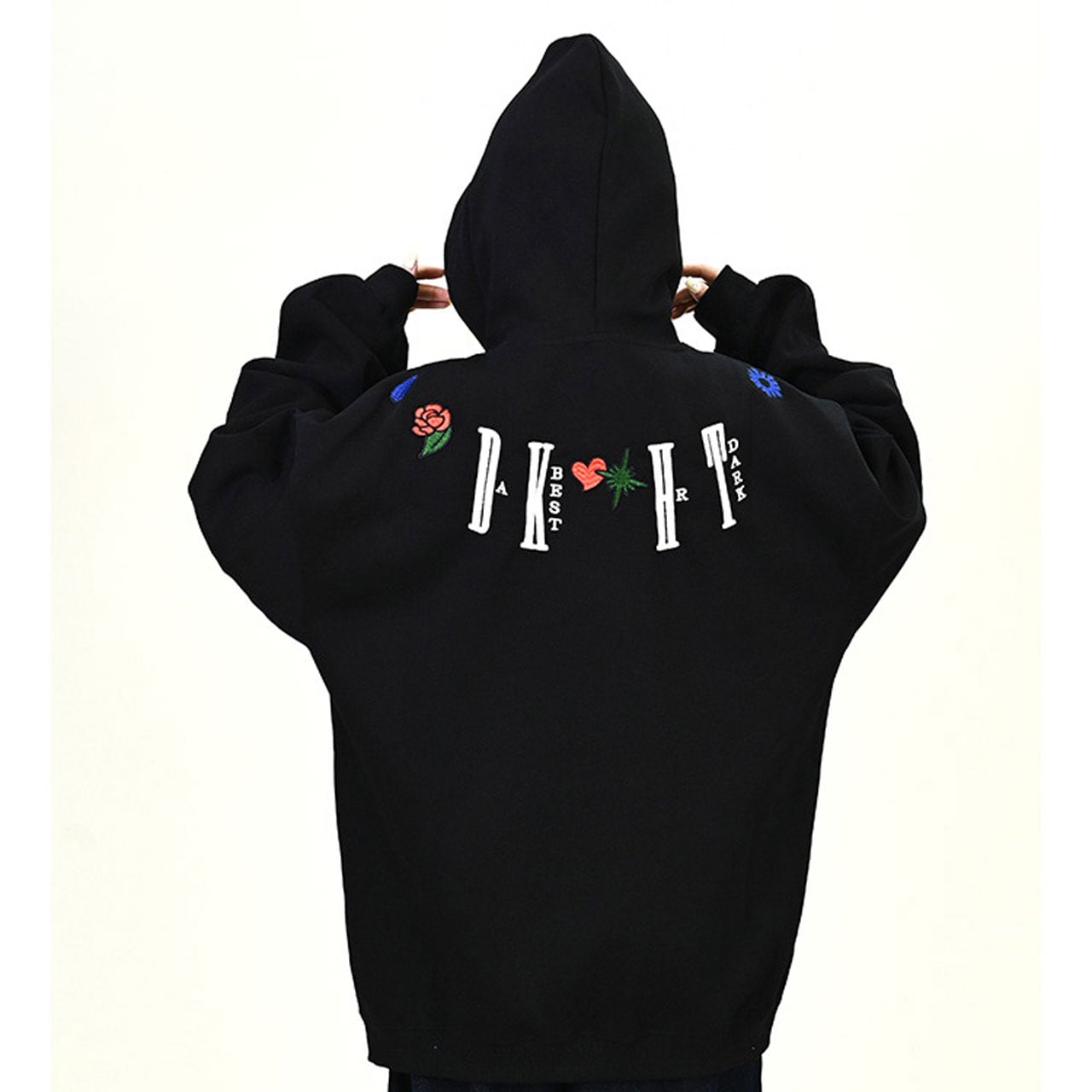 カラフルな刺繍ロゴが目を引くストリートフーディ。