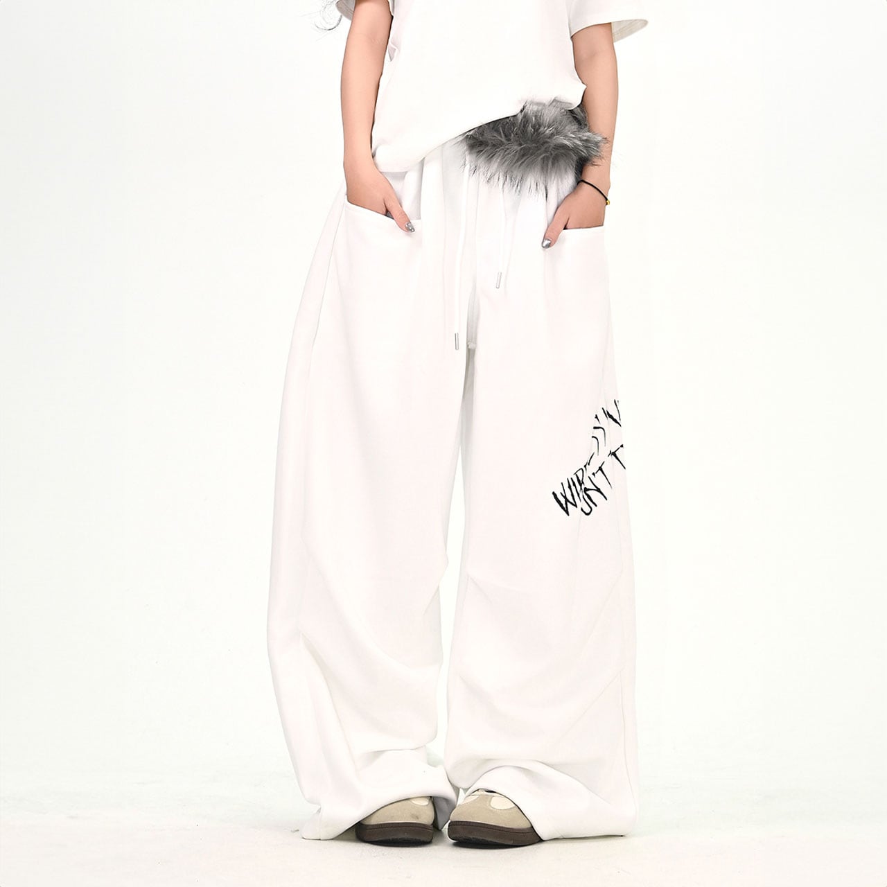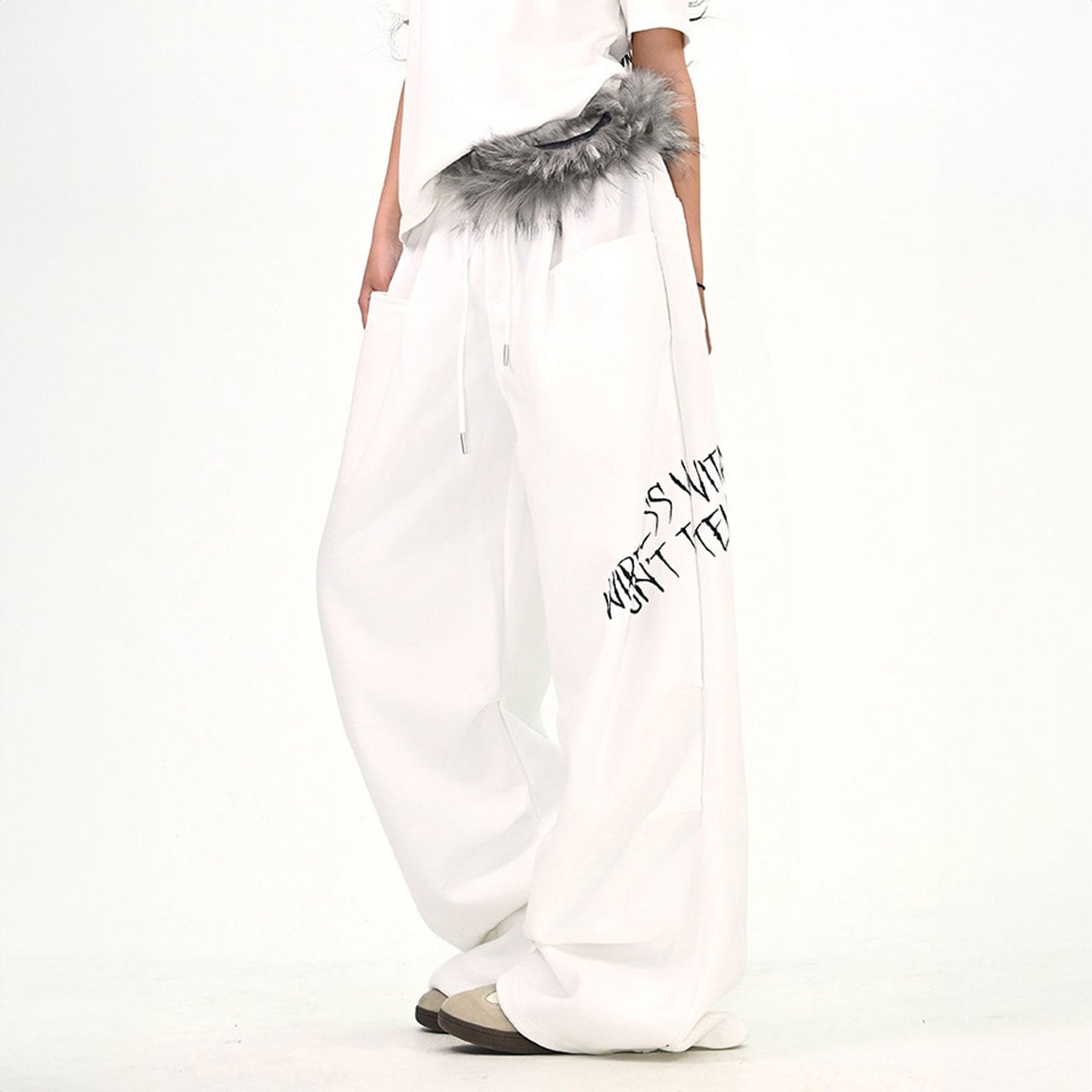 ファーウエストロゴワイドスウェットパンツ 2col R01061