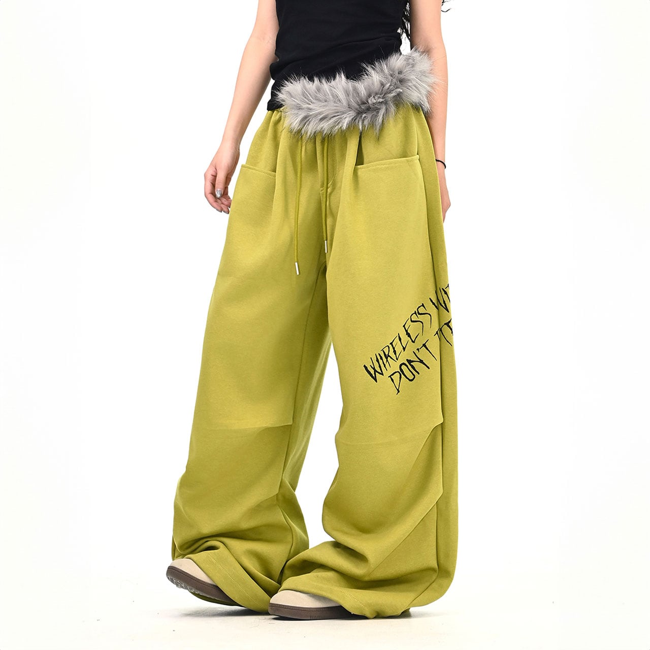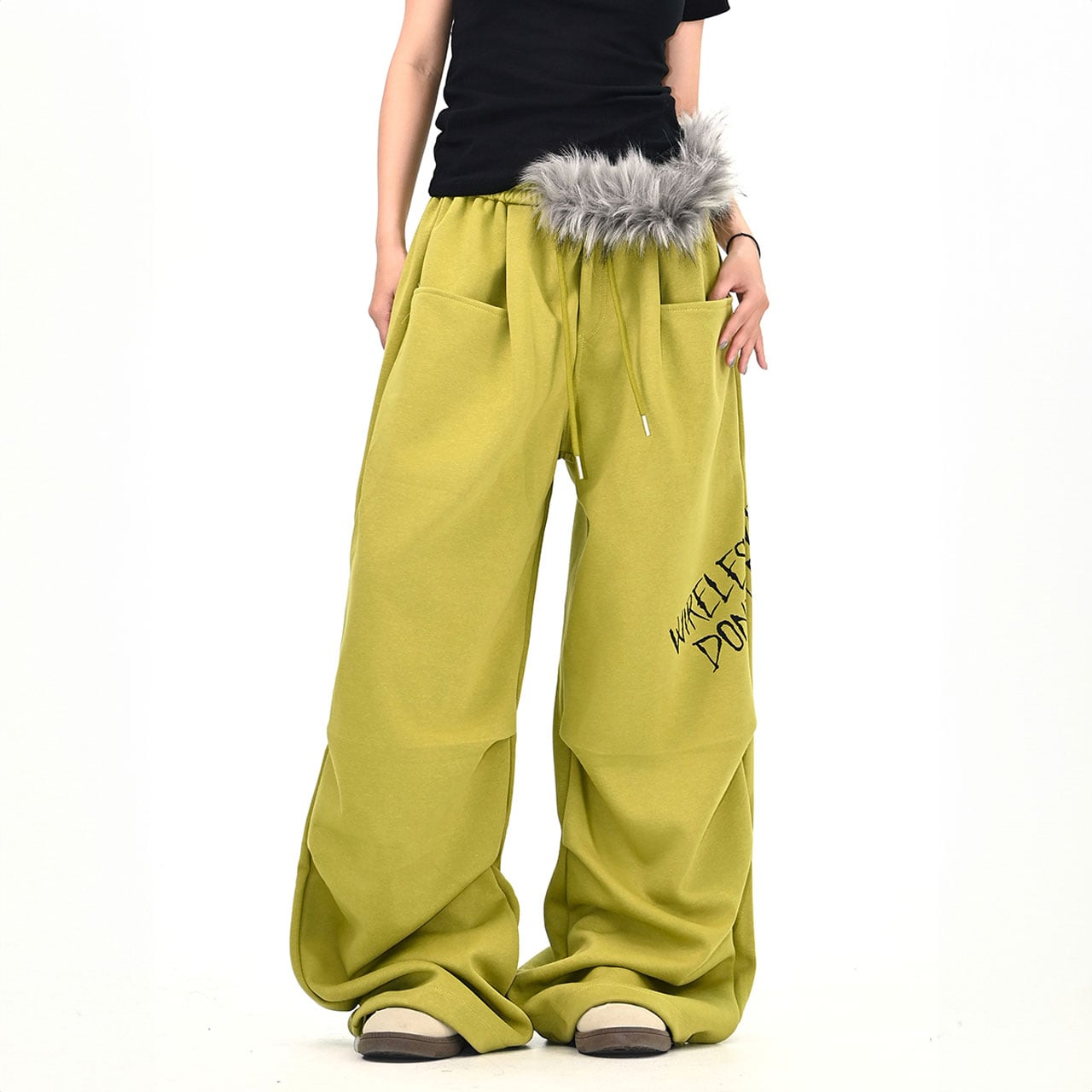 フェイクファーがアクセントのワイドスウェットパンツ。