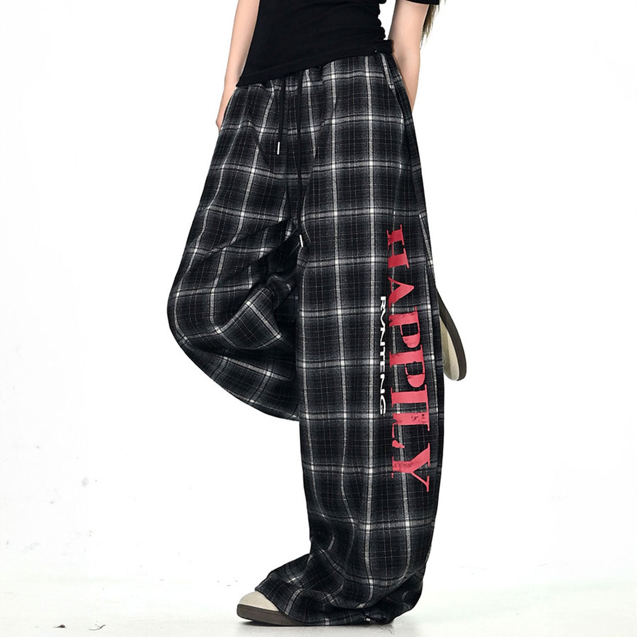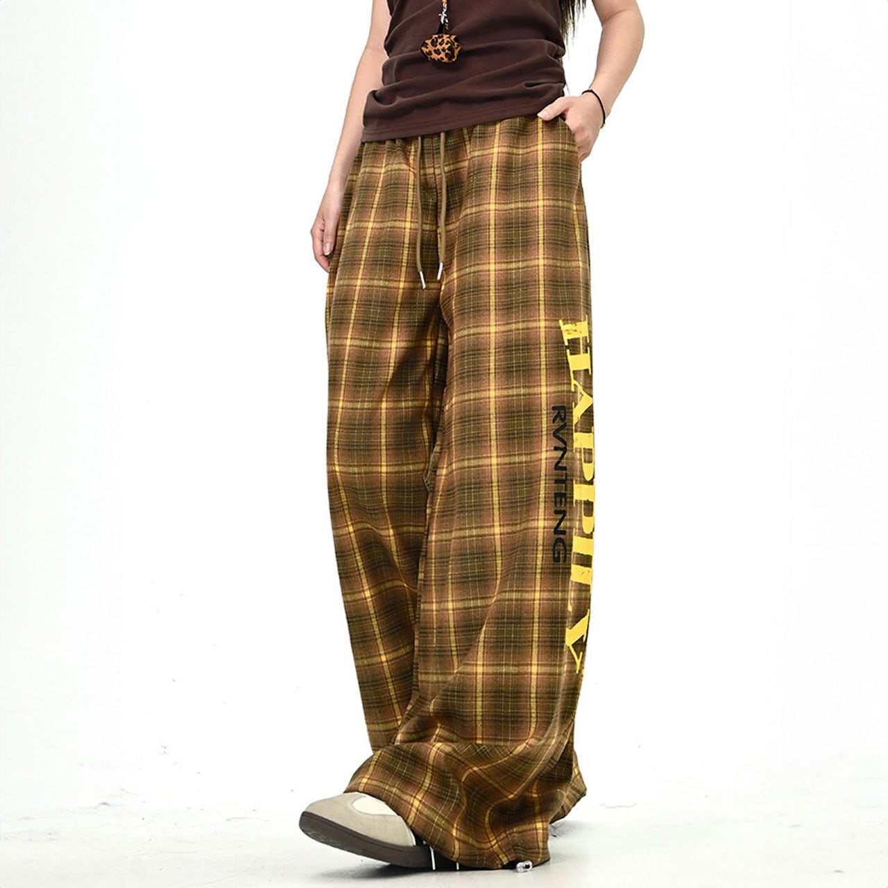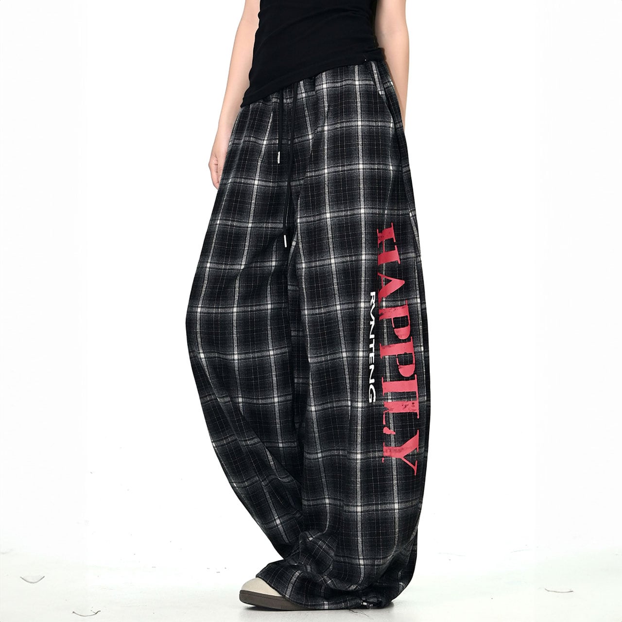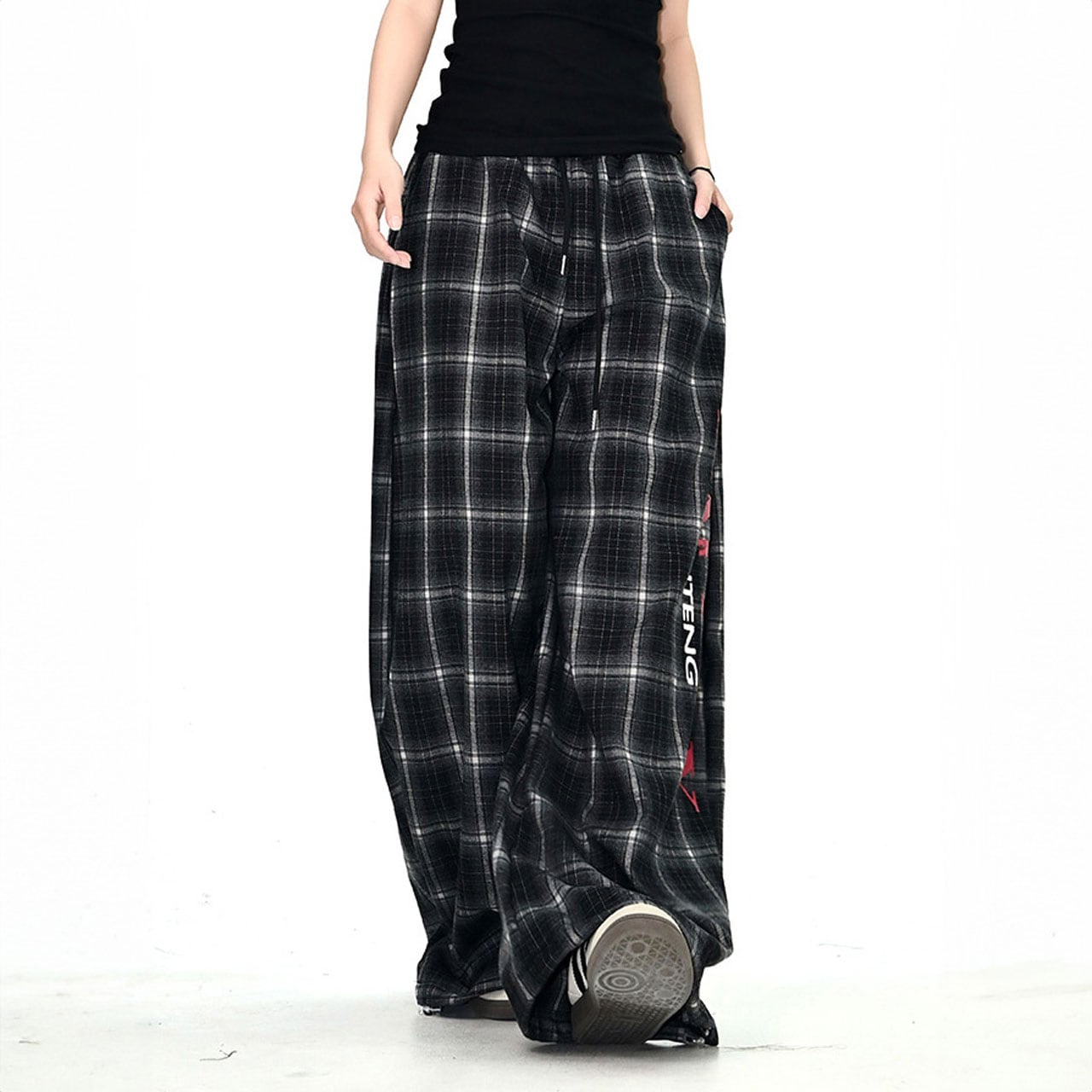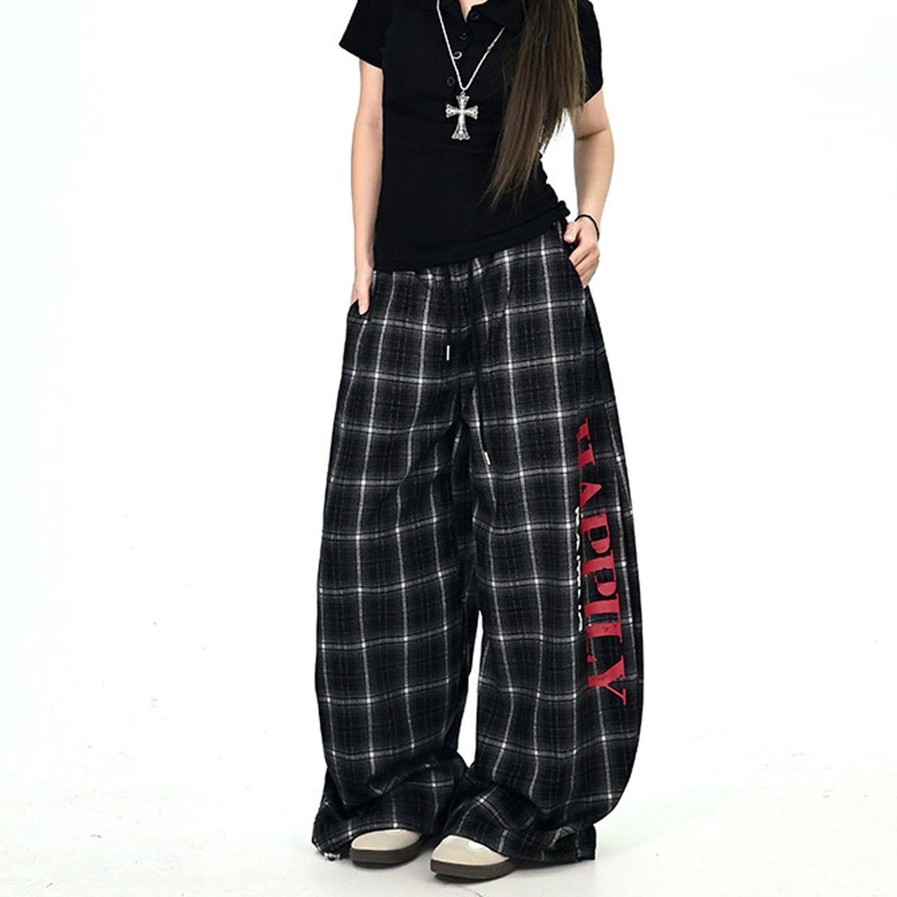 レトロチェックロゴルーズワイドパンツ 2col R01062