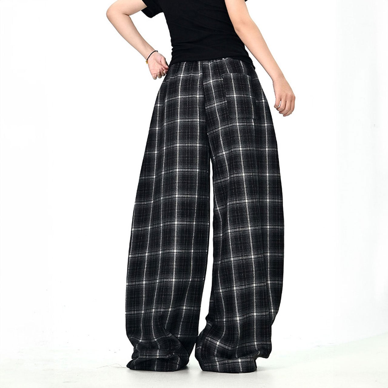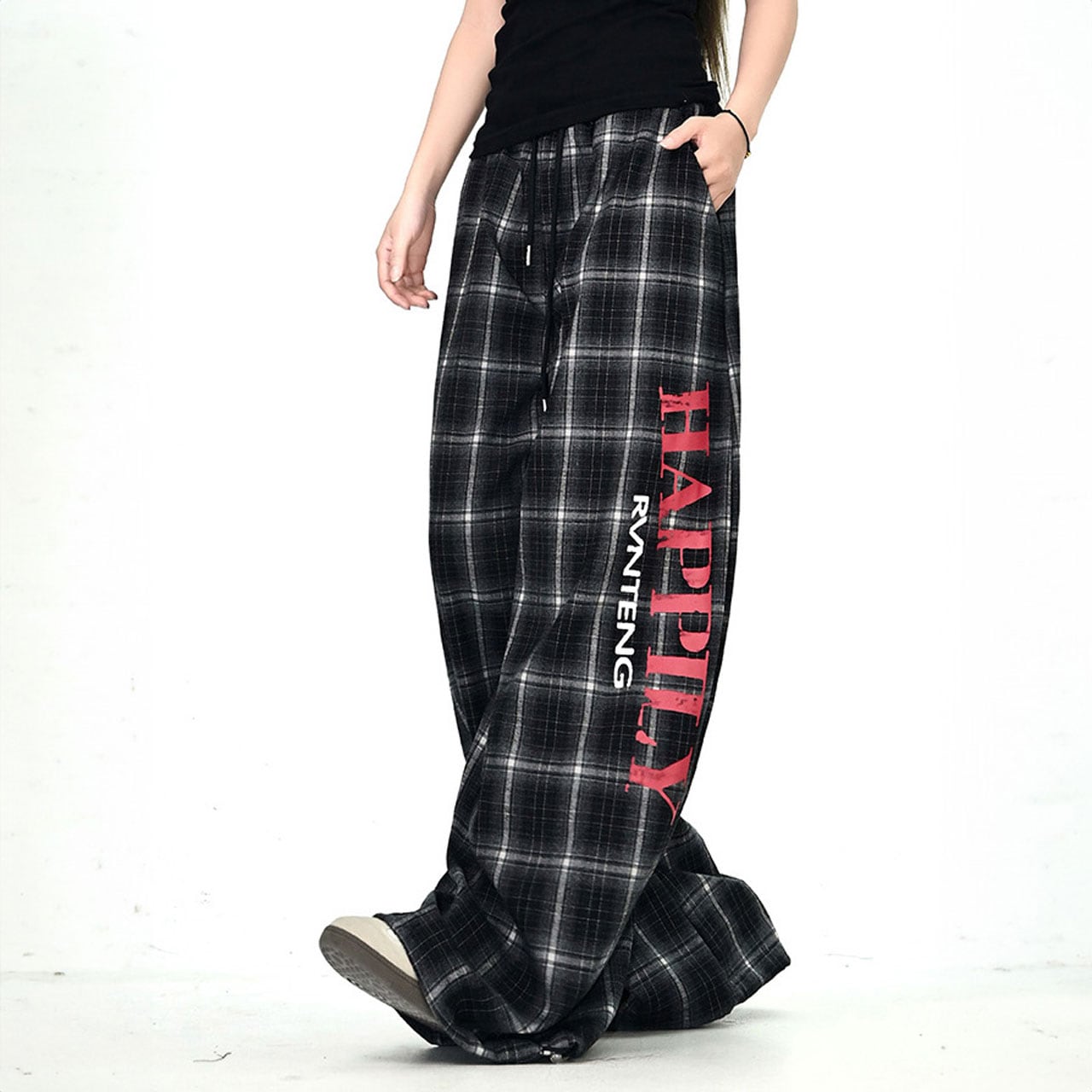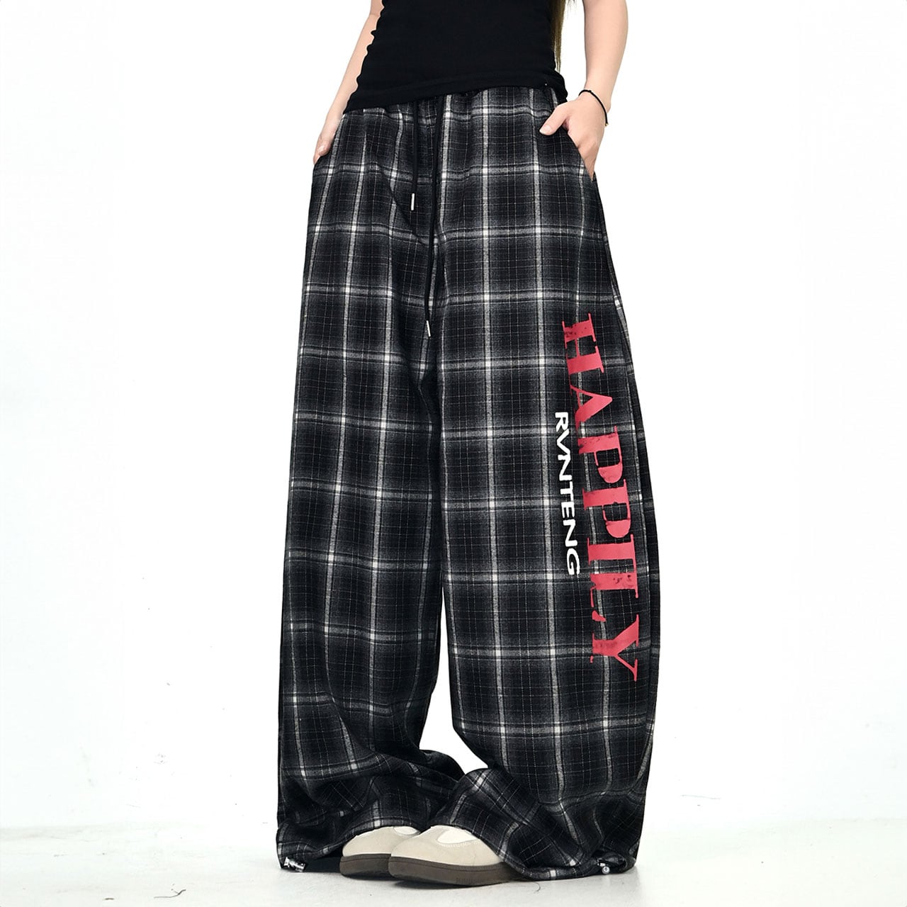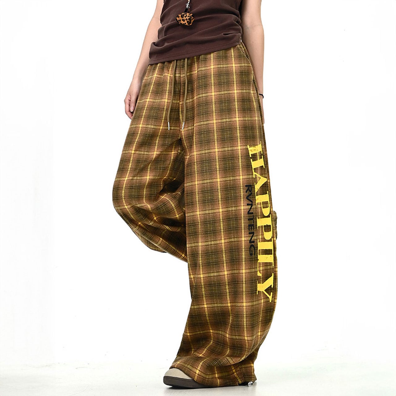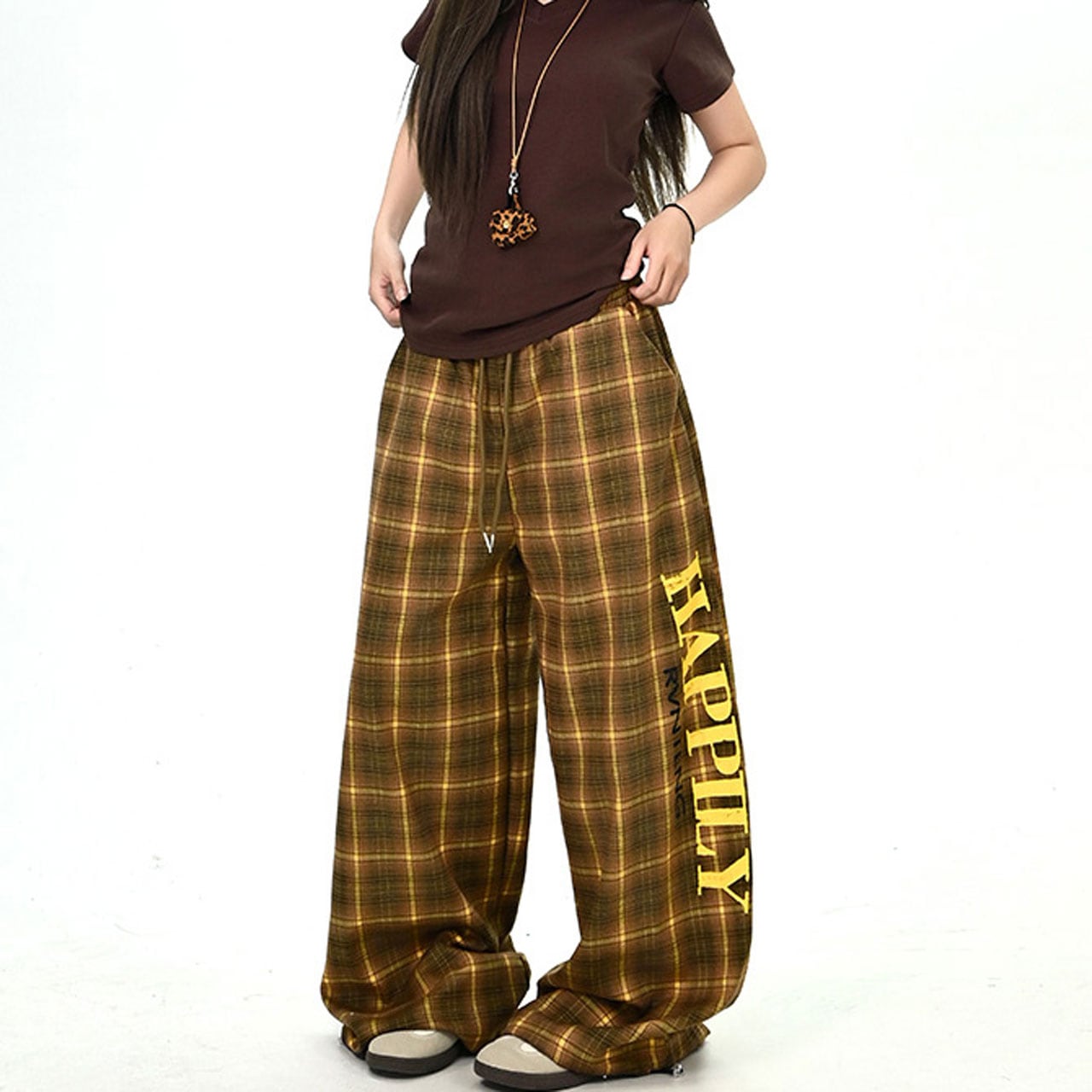 レトロチェックロゴルーズワイドパンツ 2col R01062