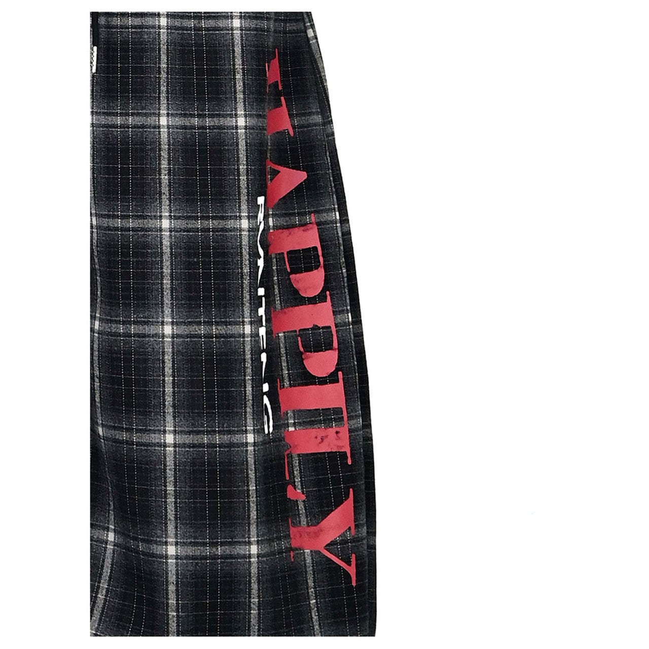 トラッドなチェックにロゴを効かせたワイドパンツ。