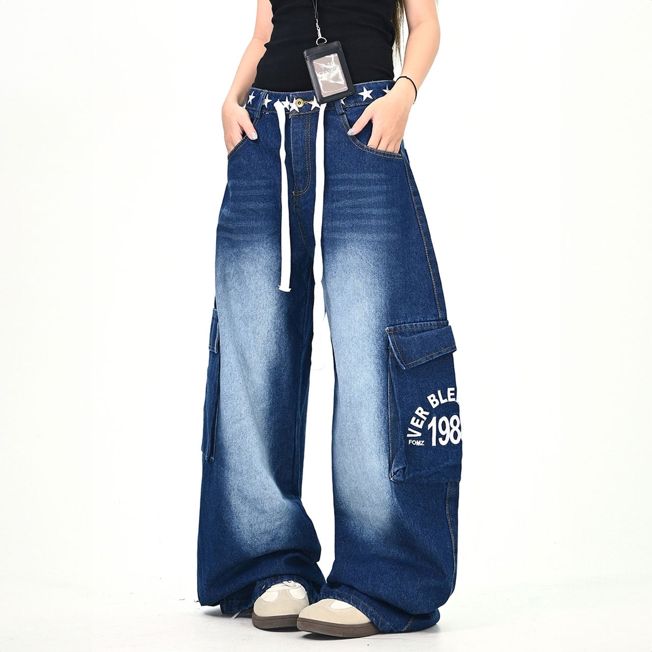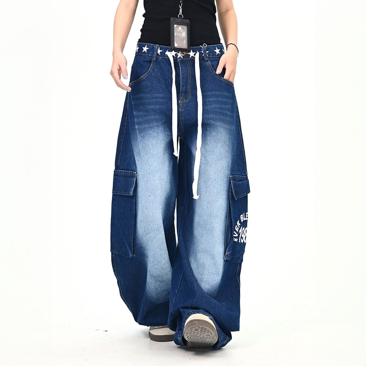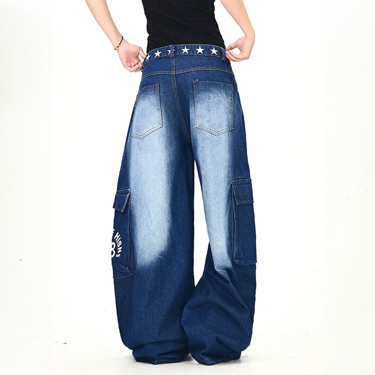ウエストのスターモチーフが目を引くデニムパンツ。