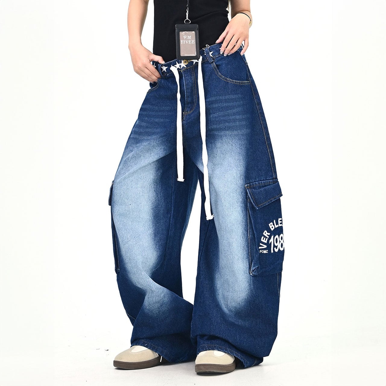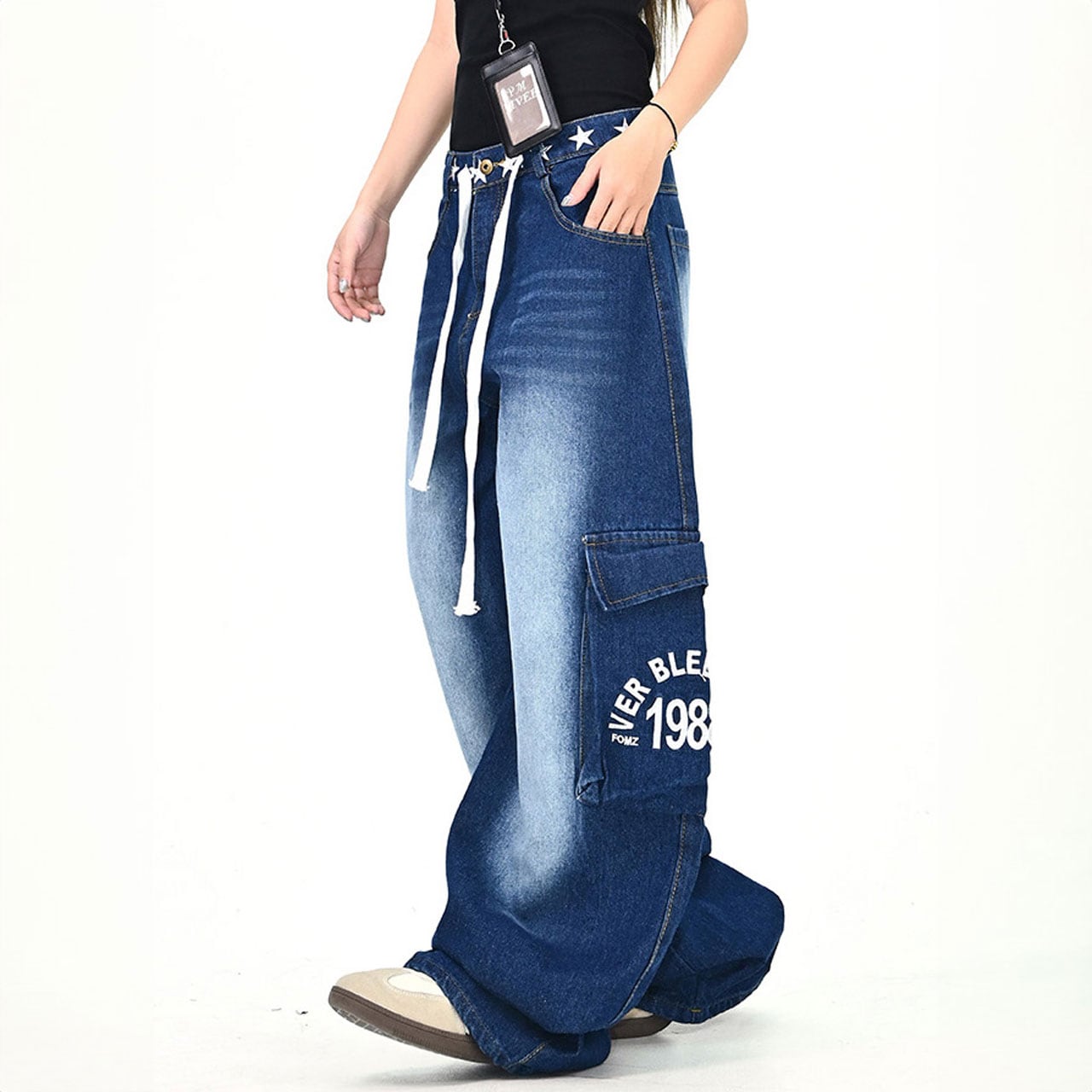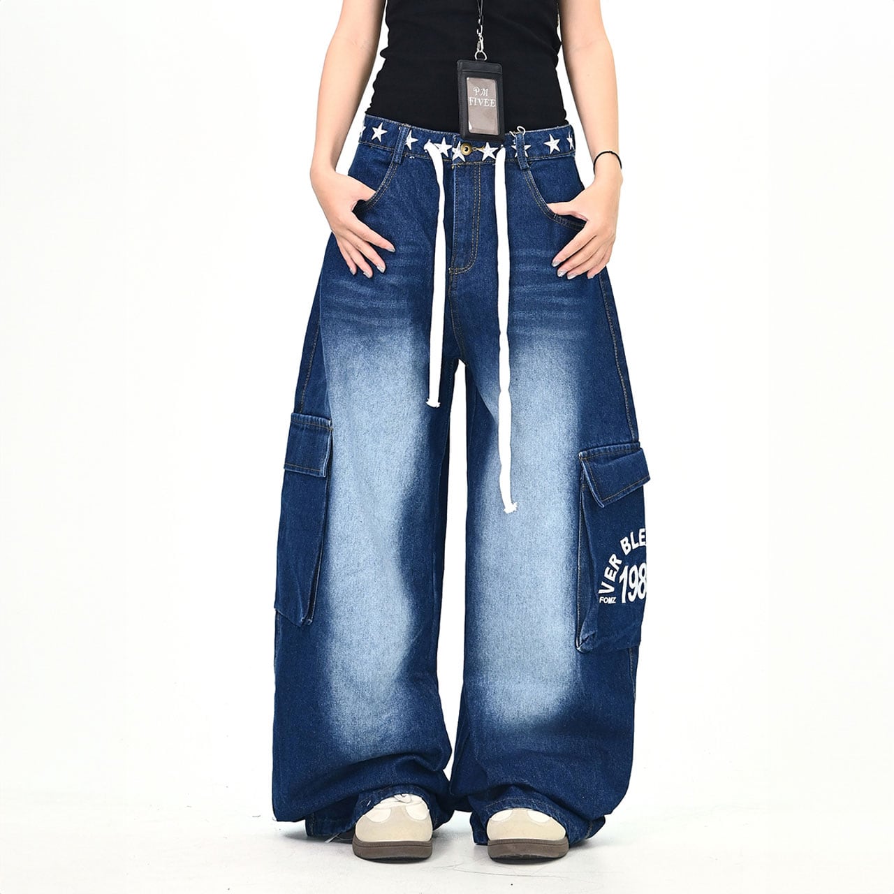 ウエストのスターモチーフが目を引くデニムパンツ。