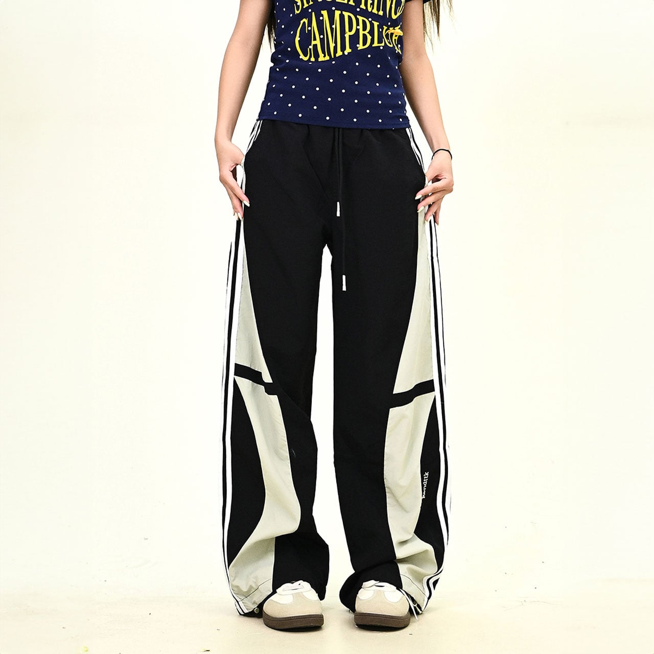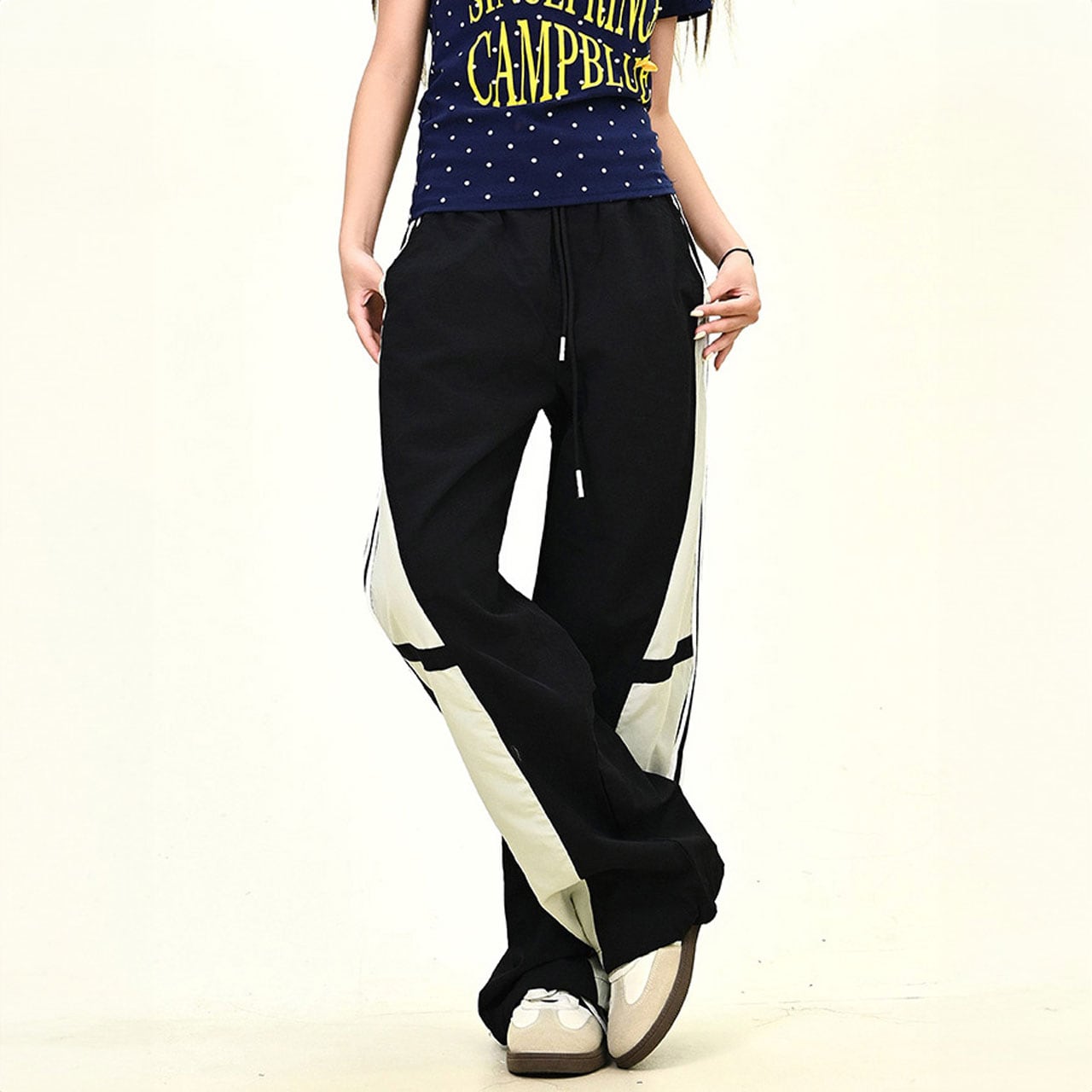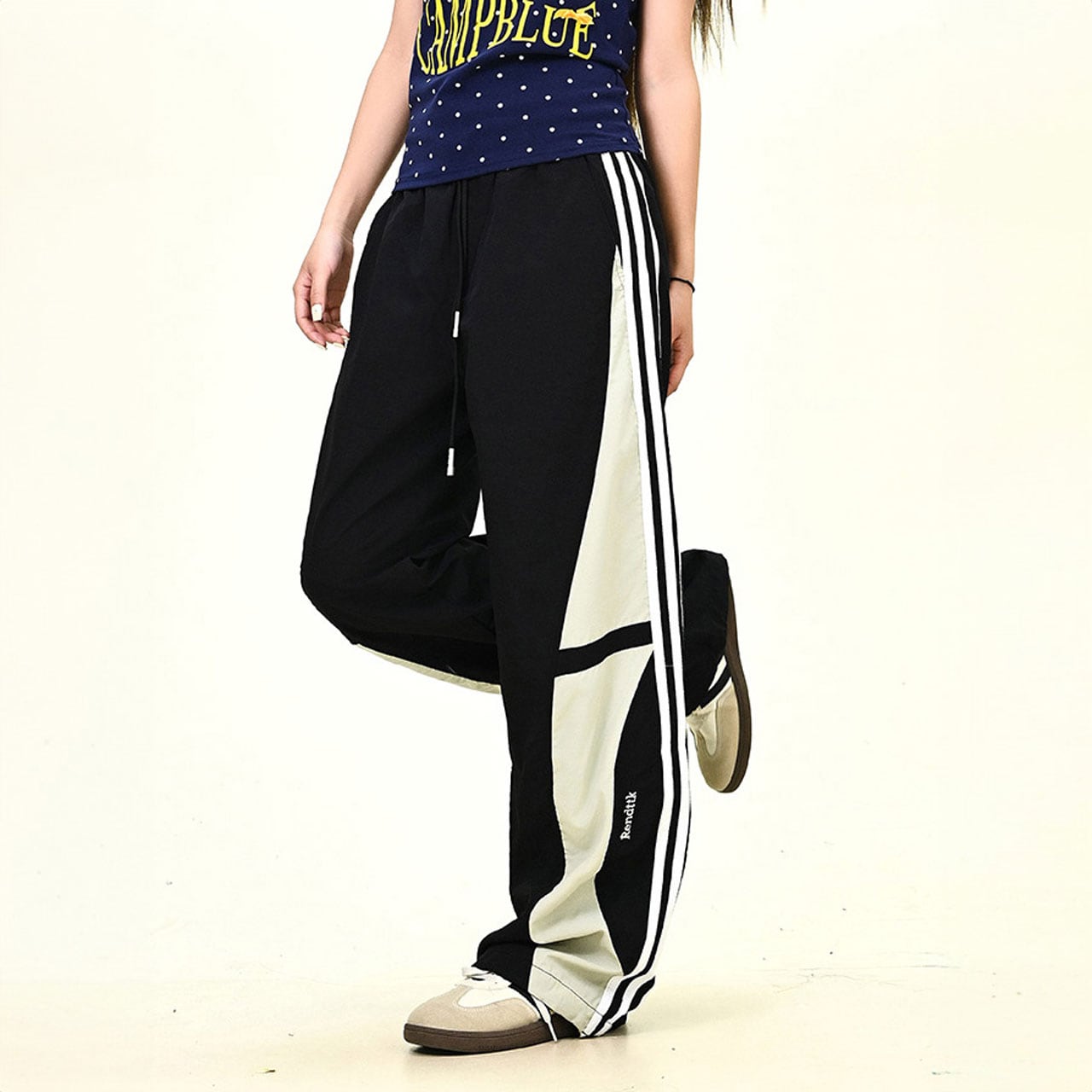 カラーブロックトラックワイドパンツ 2col R01068