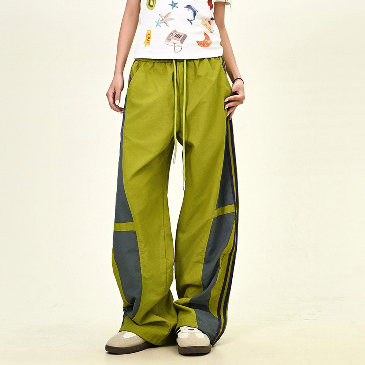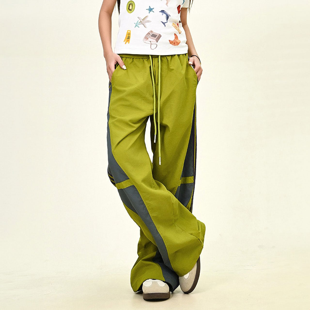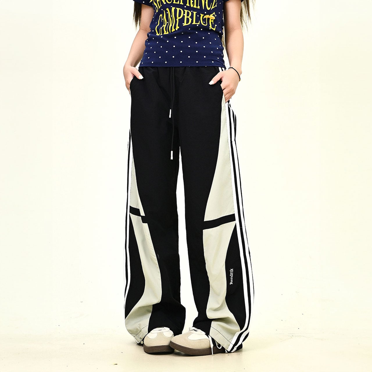 カラーブロックトラックワイドパンツ 2col R01068