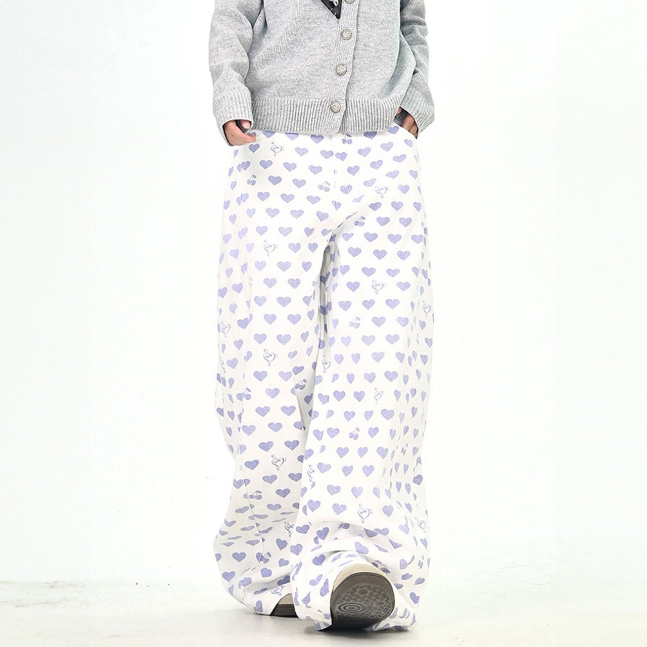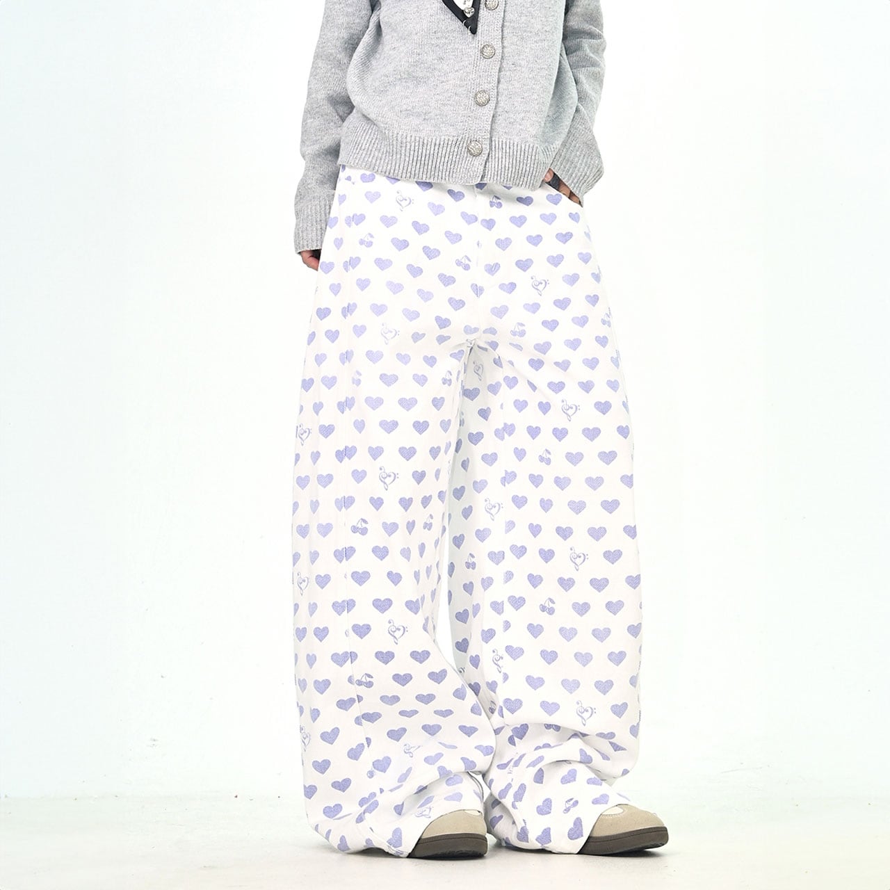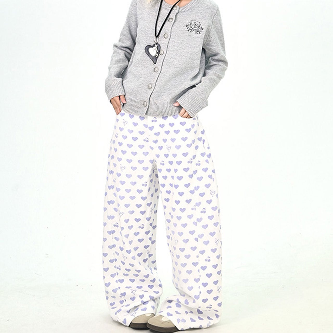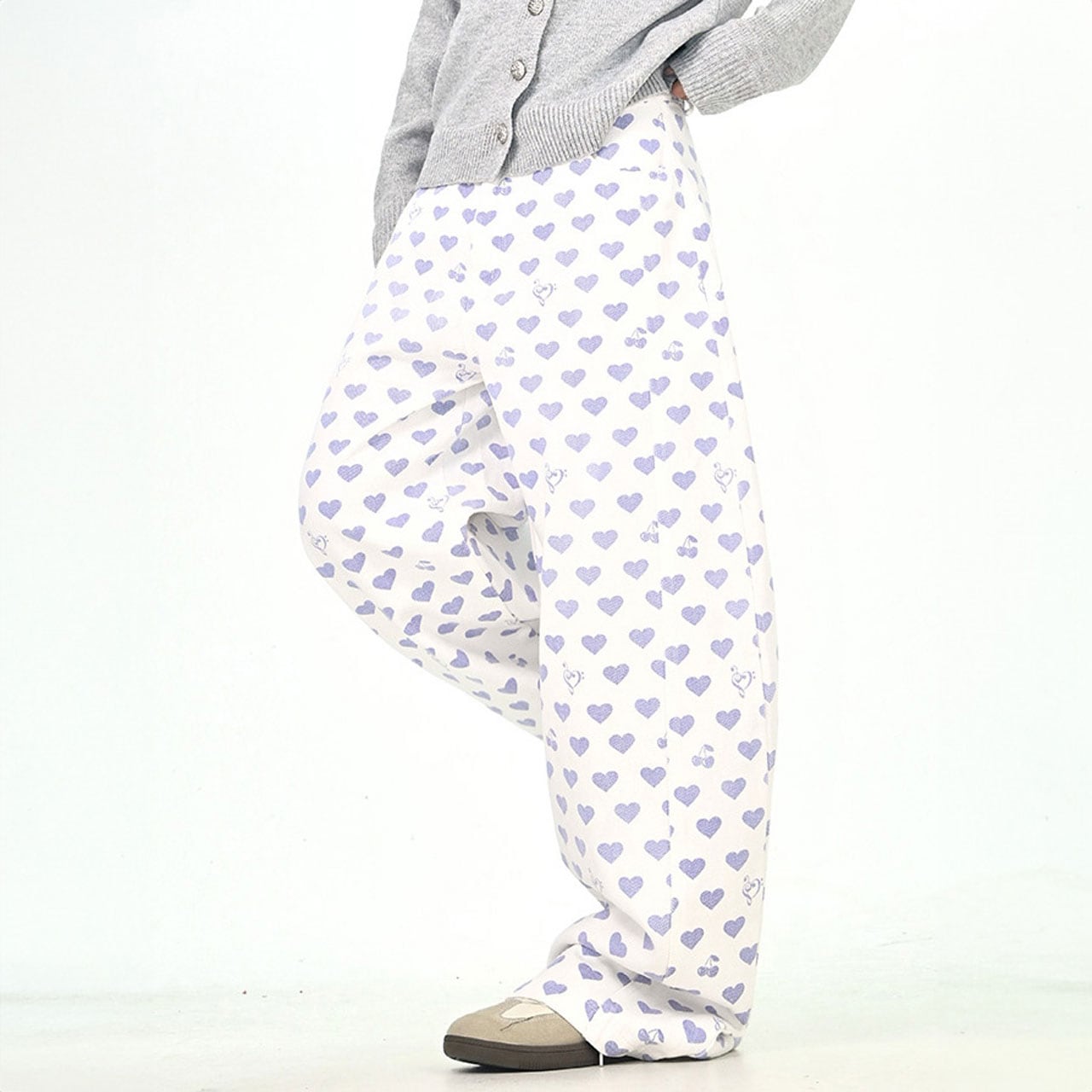ラベンダーハートが可愛いゆるワイドパンツ。